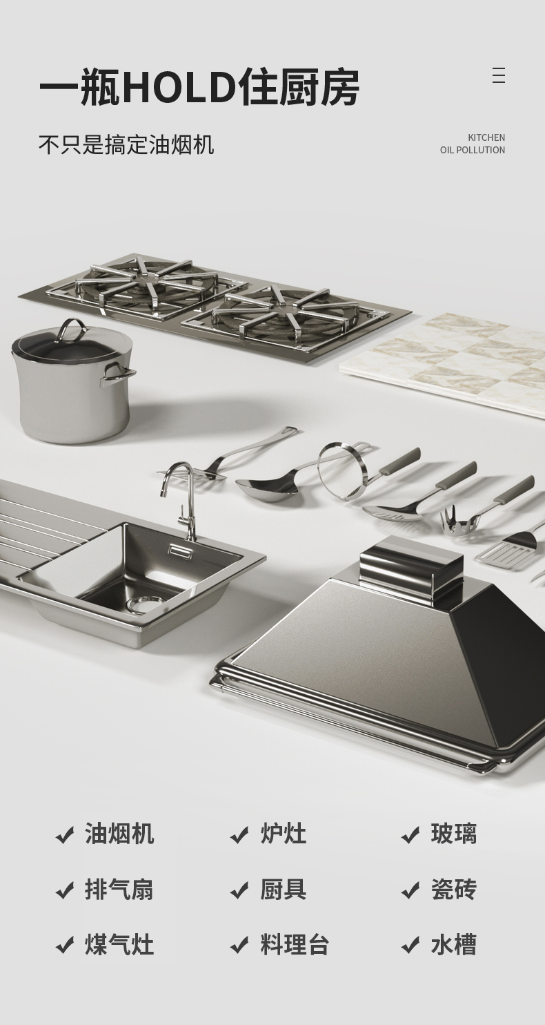 【和厨房油污说拜拜】DDOXOO厨房油垢净 温和油净 不伤表面 防污技术 减少油渍 易于清洁