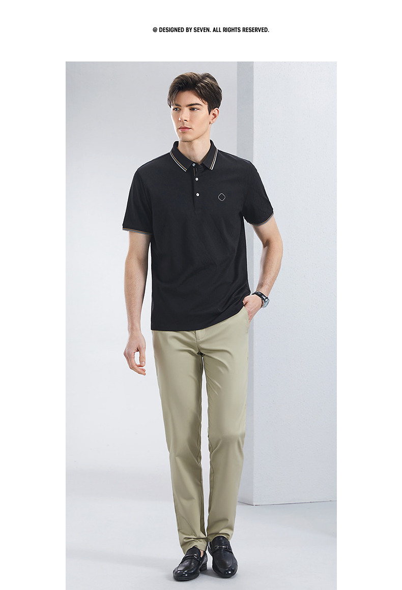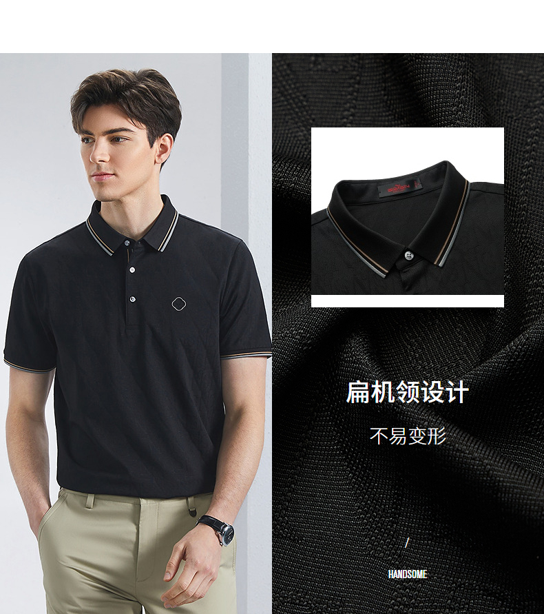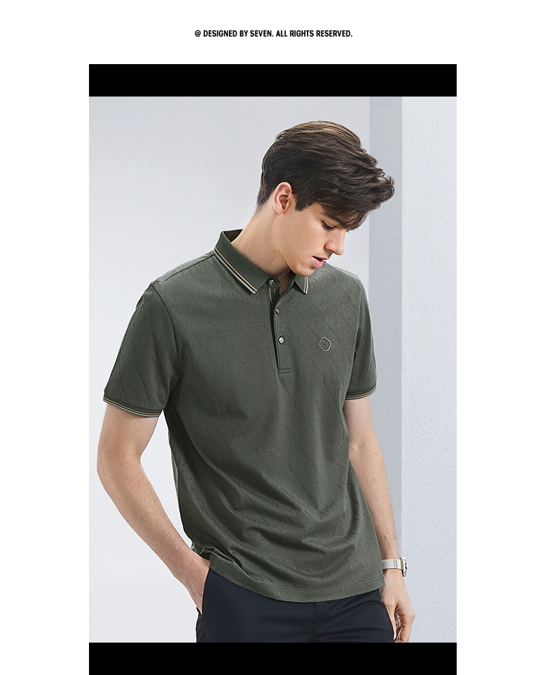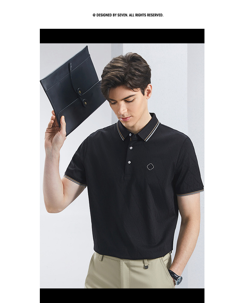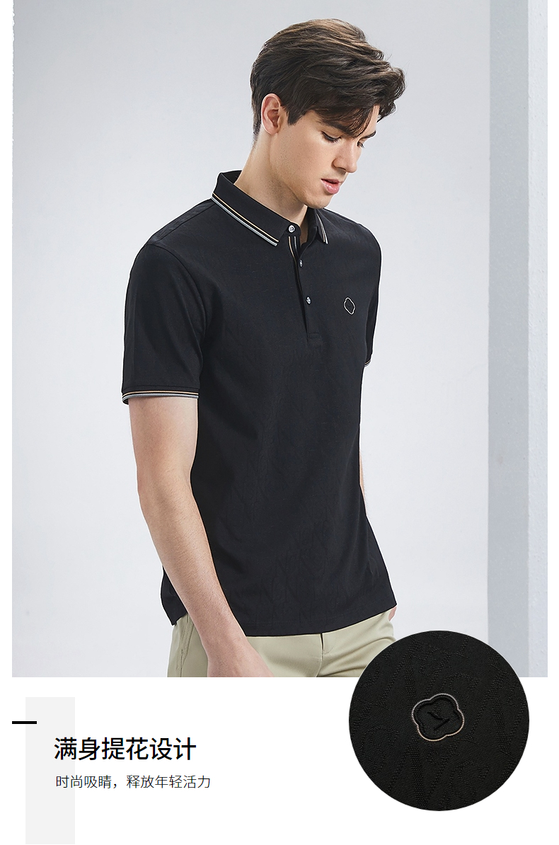 【不变形领】【含桑蚕丝】柒牌短袖polo衫男夏季新款商务休闲满身提花翻领T恤 126T70680