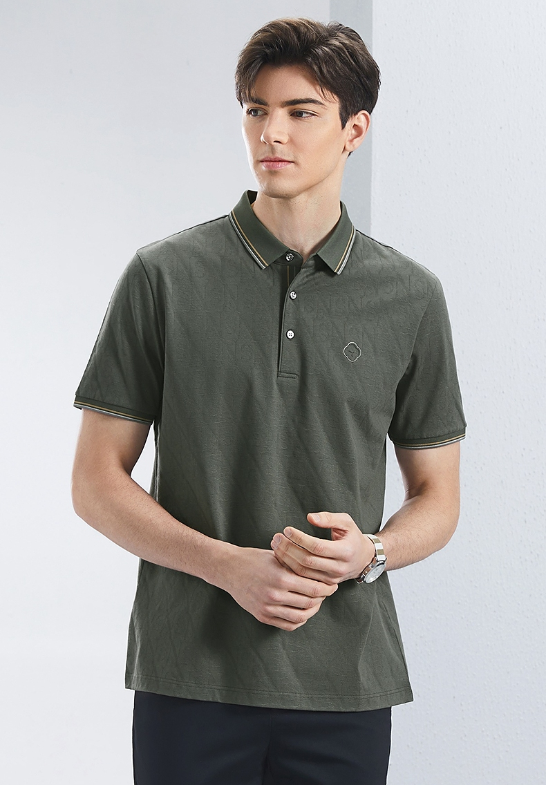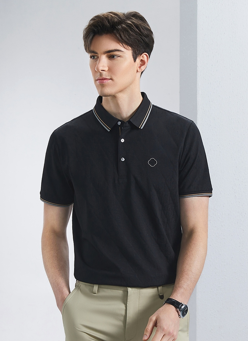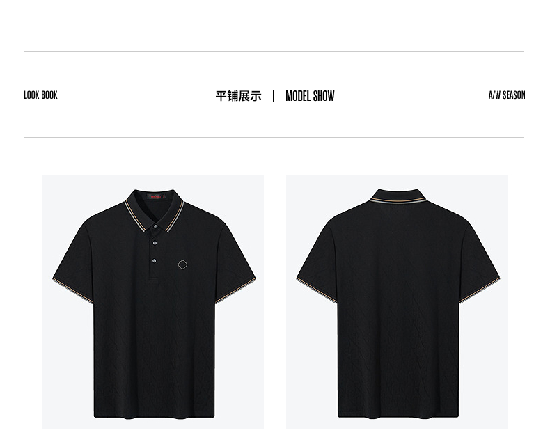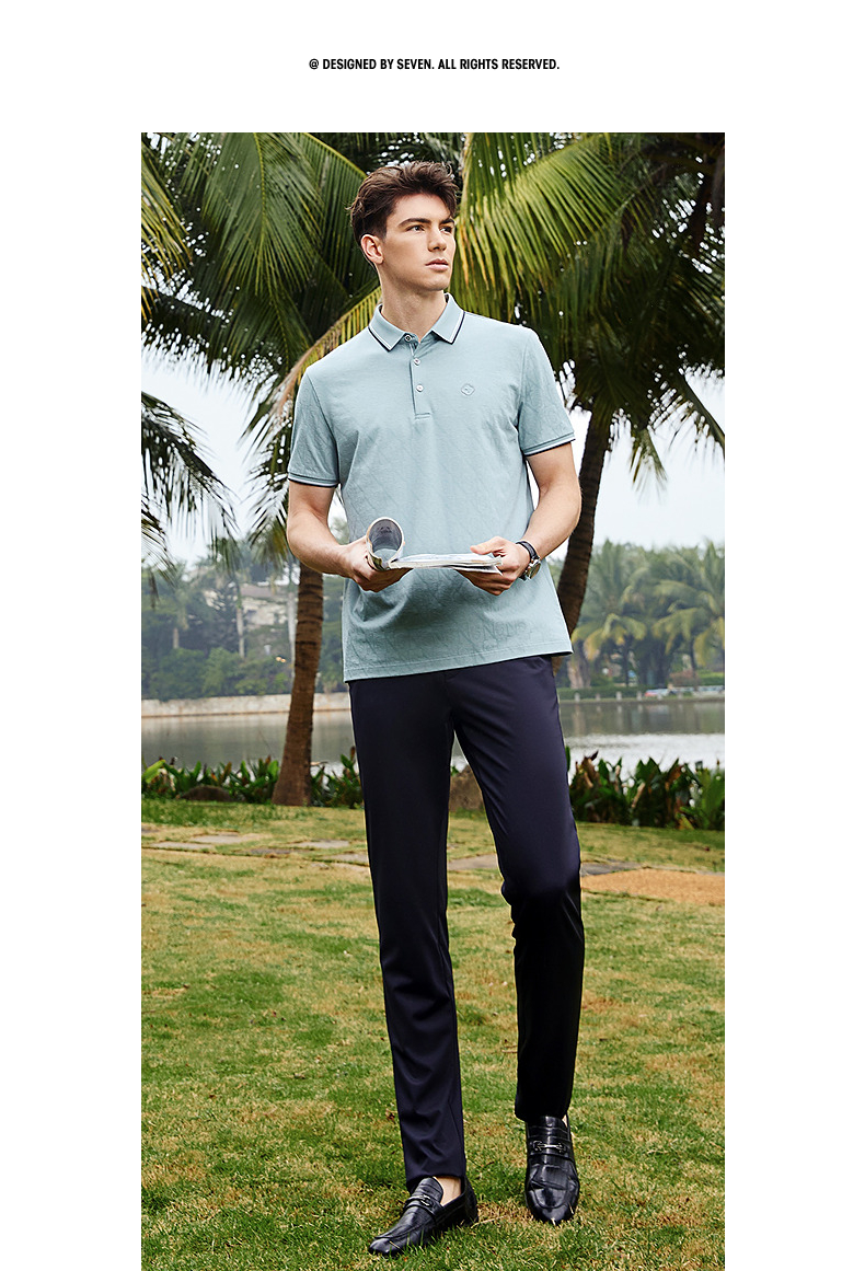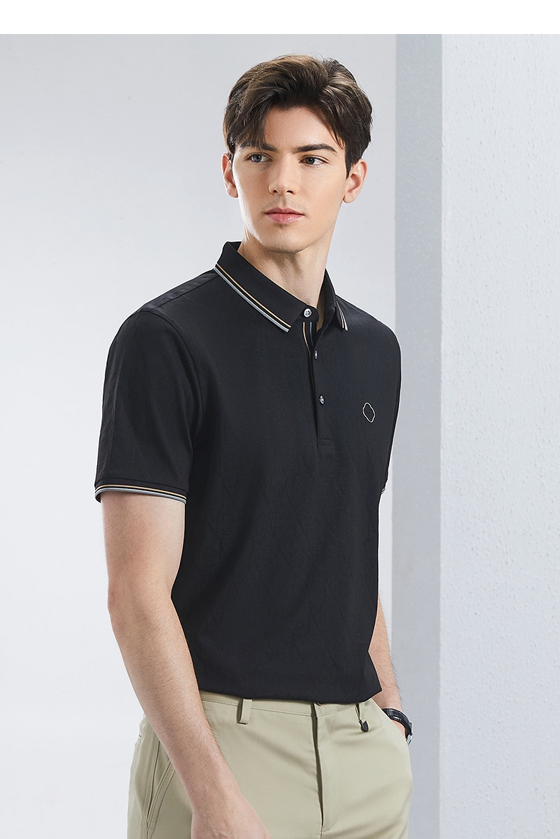 【不变形领】【含桑蚕丝】柒牌短袖polo衫男夏季新款商务休闲满身提花翻领T恤 126T70680