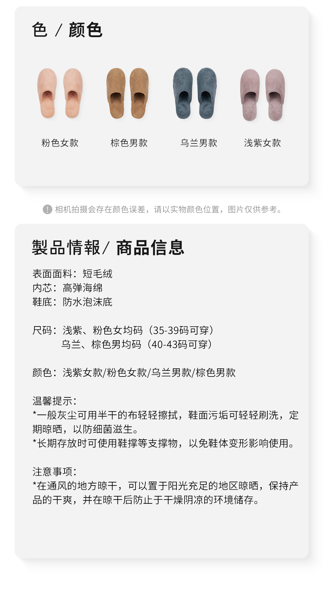 【短毛绒拖鞋】日式无印毛绒拖鞋良品家居静音防水拖鞋秋冬保暖绒布拖鞋厚男女拖