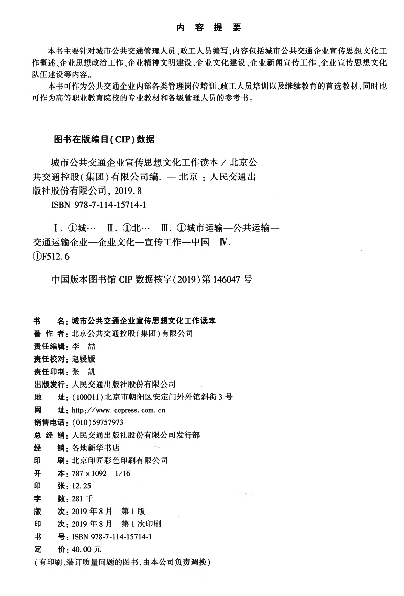 书名:城市公共交通企业宣传思想文化工作读本