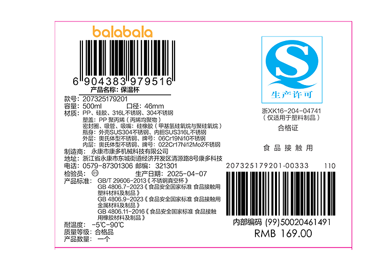【奥飞IP商场同款】巴拉巴拉儿童保温杯男女童一杯双饮盖水杯可爱