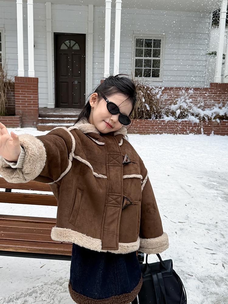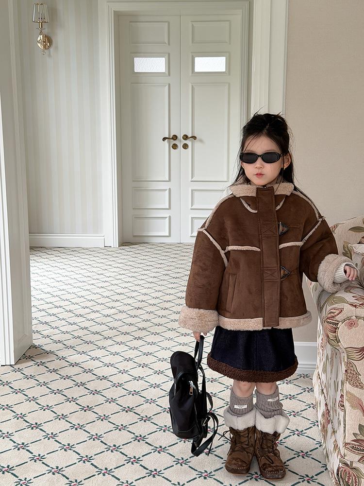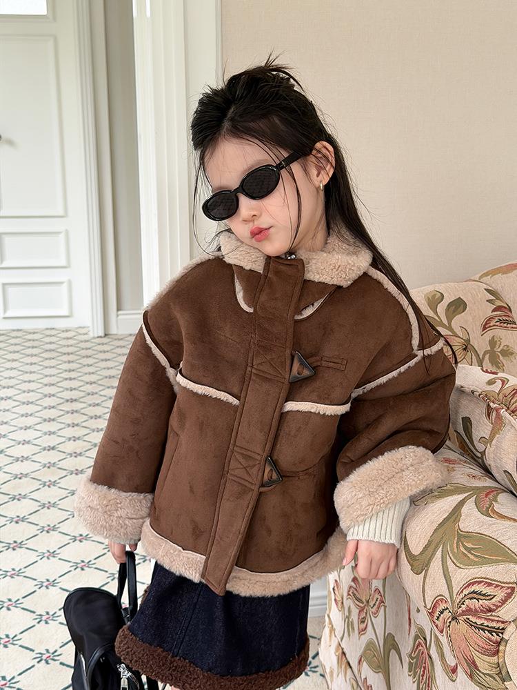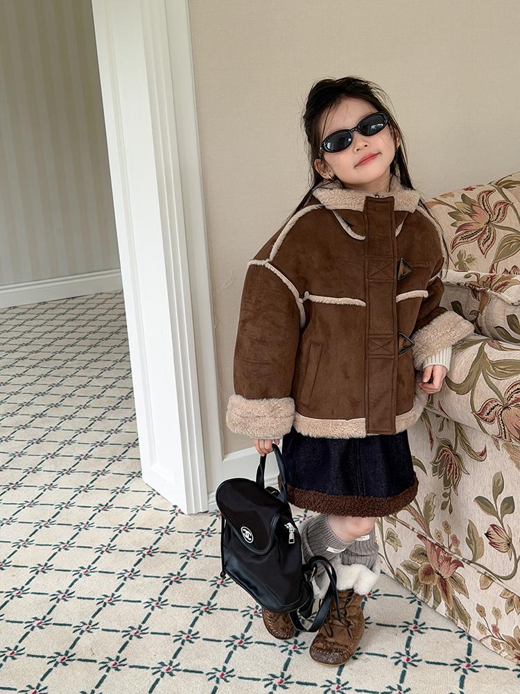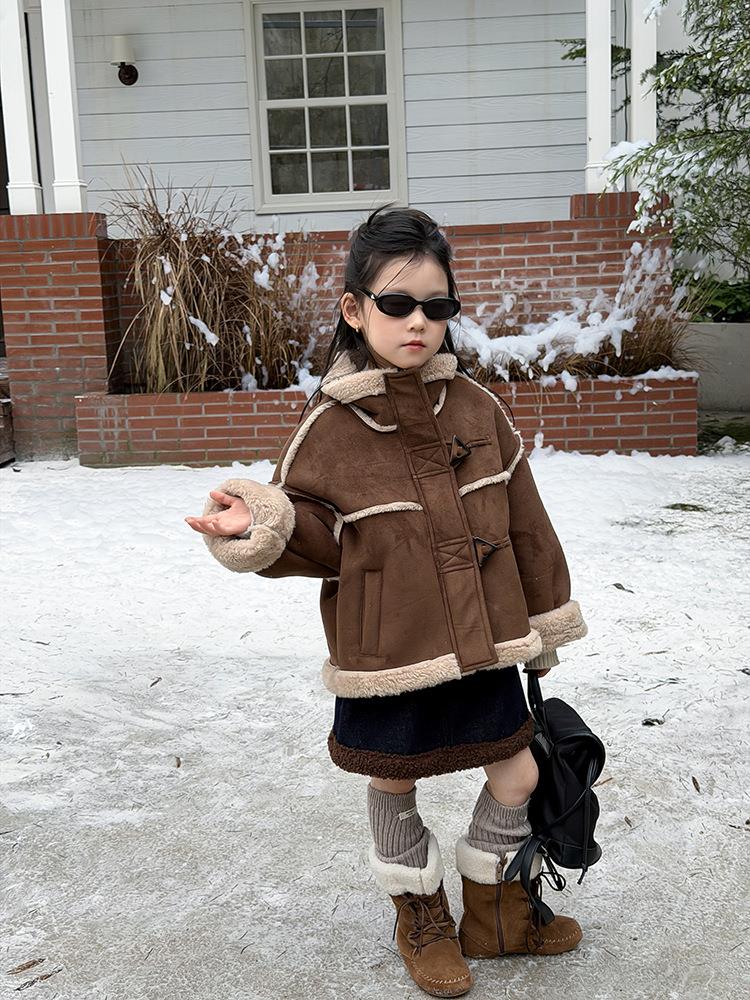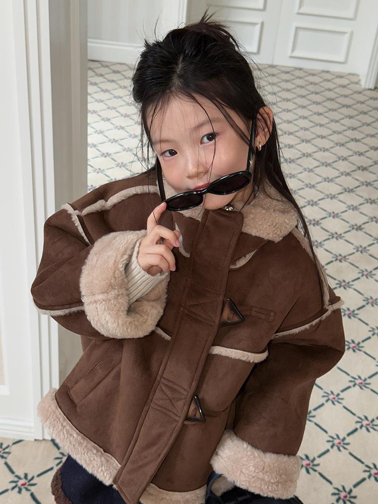 艾摩贝贝儿童加厚毛绒内胆棉衣冬皮毛一体加绒保暖麂皮绒棉服外套