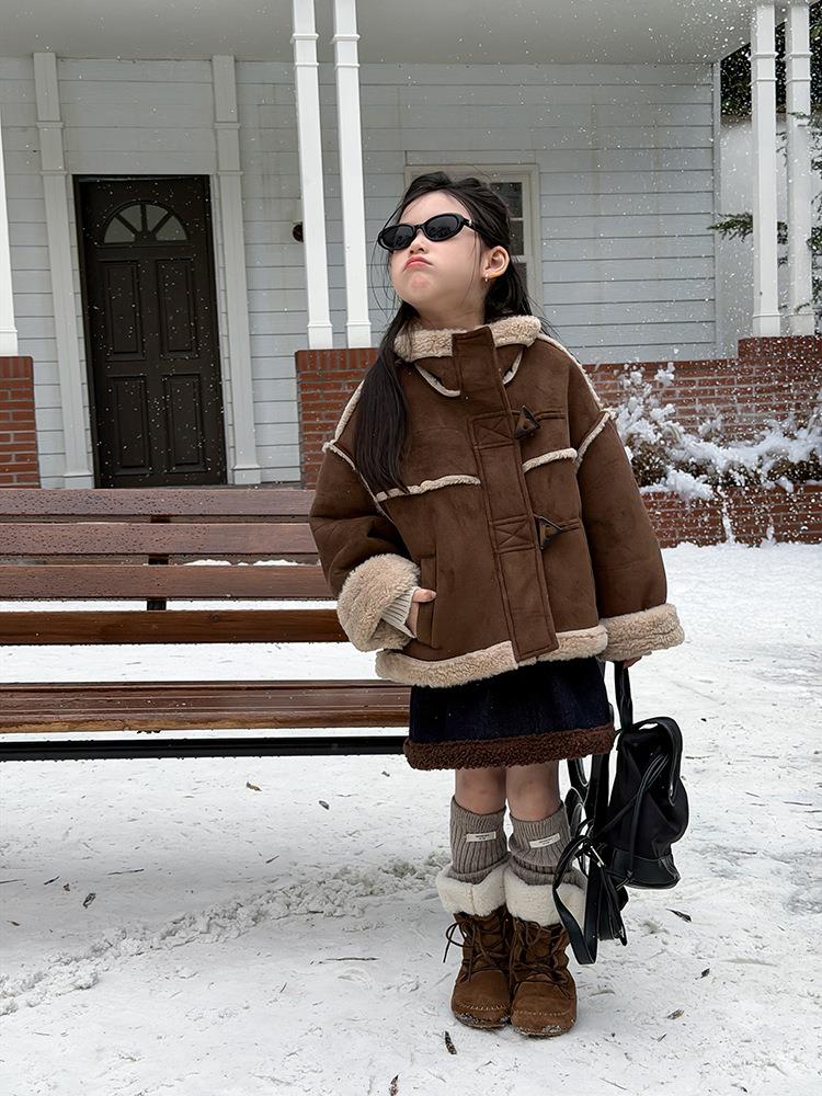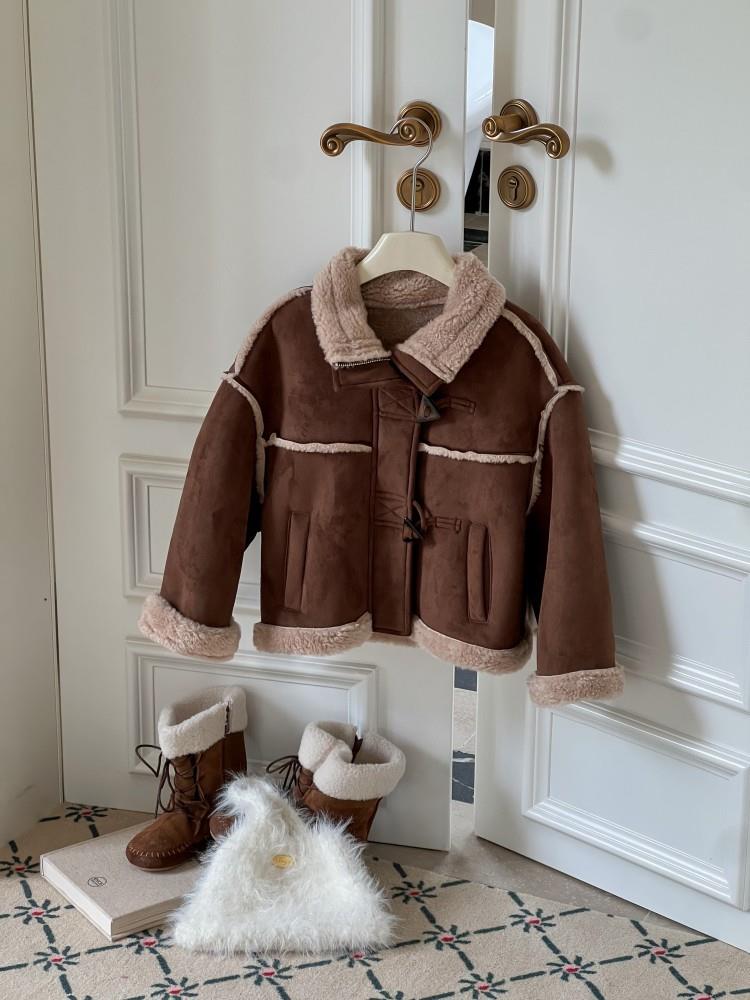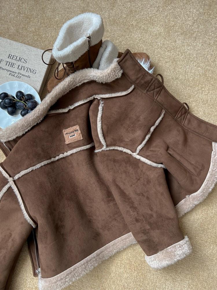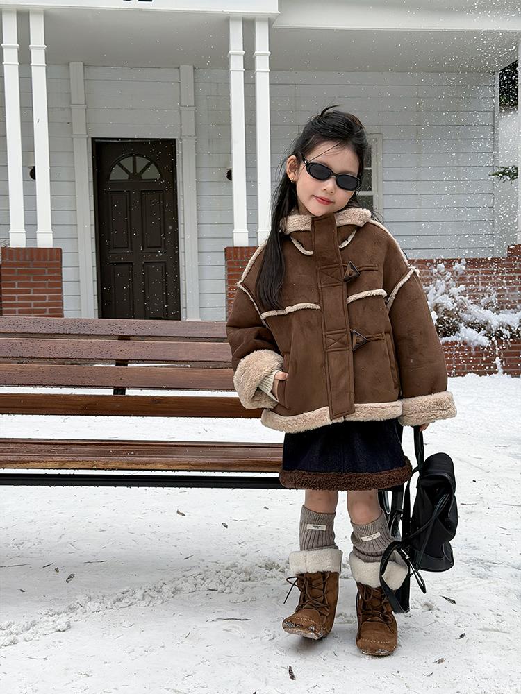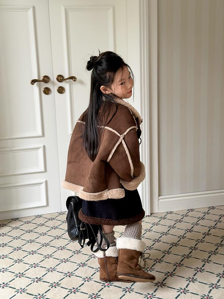 艾摩贝贝儿童加厚毛绒内胆棉衣冬皮毛一体加绒保暖麂皮绒棉服外套