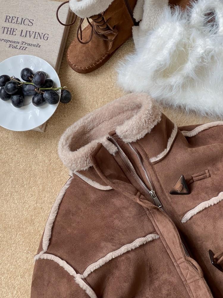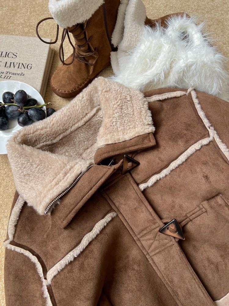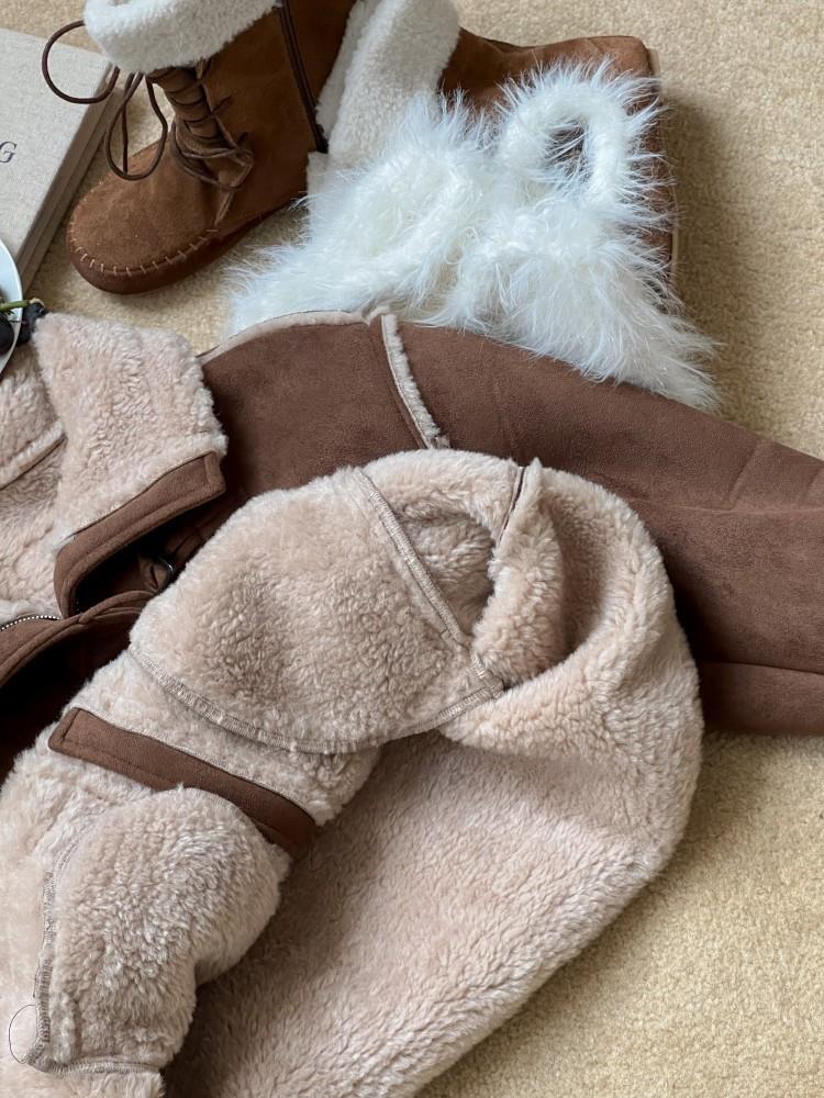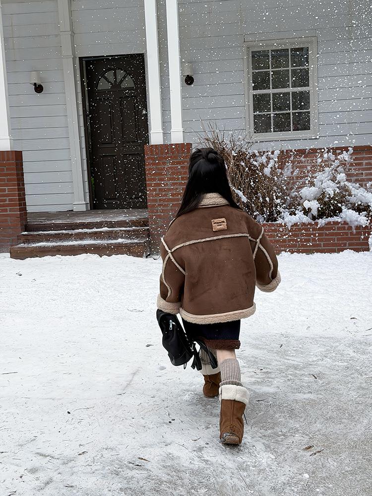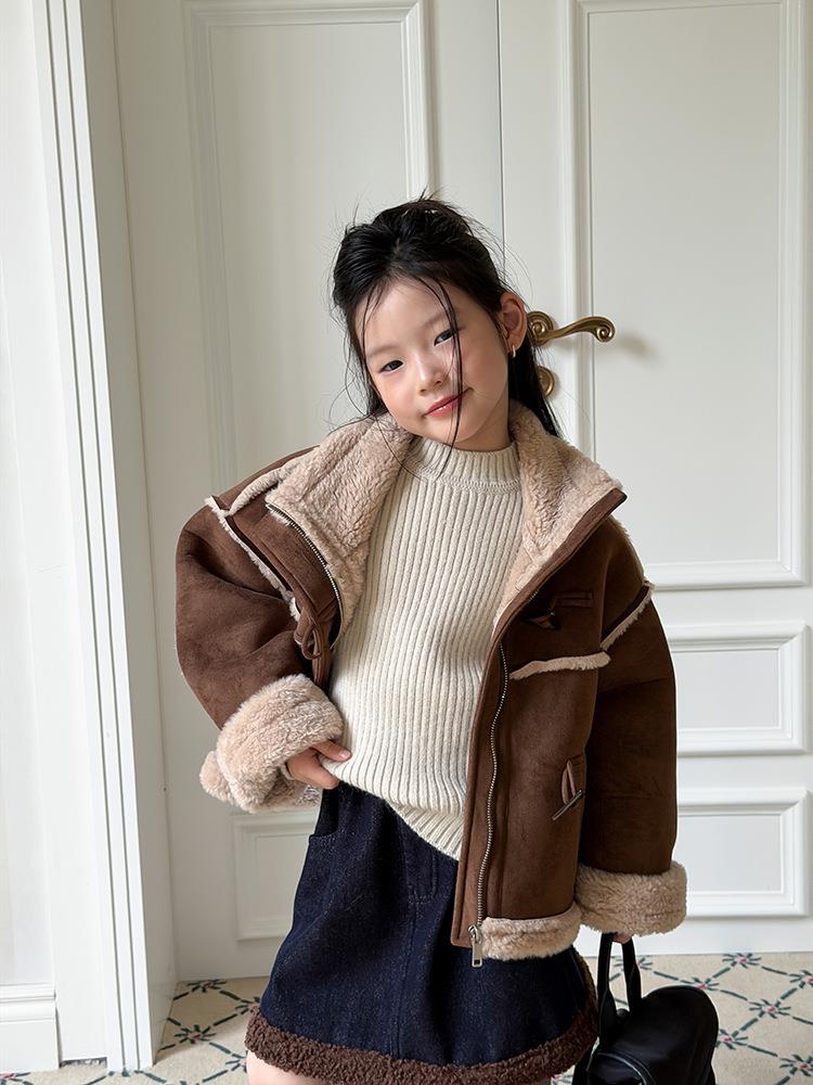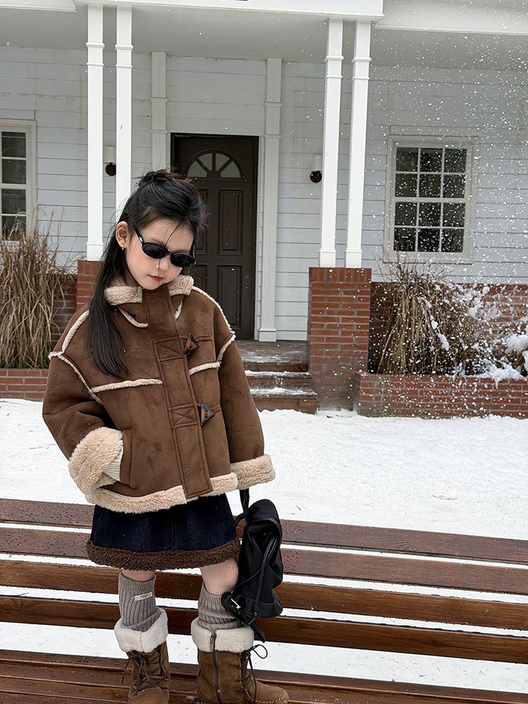 艾摩贝贝儿童加厚毛绒内胆棉衣冬皮毛一体加绒保暖麂皮绒棉服外套