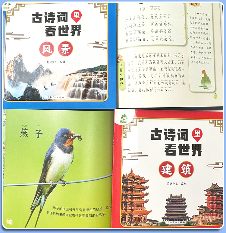 爱德少儿古诗词里看世界 跟着诗词去旅行古诗词科普中国动物植物风景建筑中国地理百科游记类科普阅读