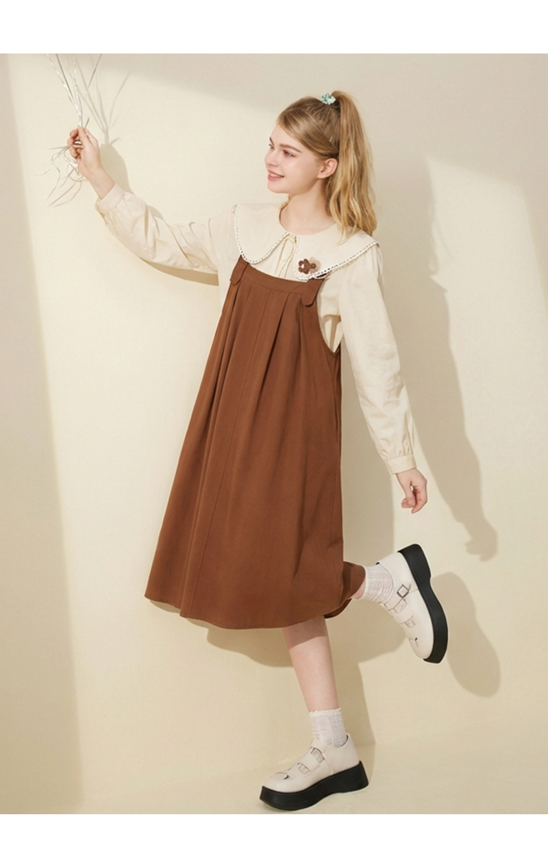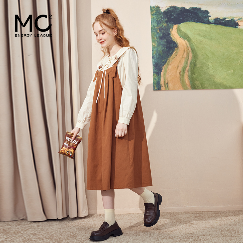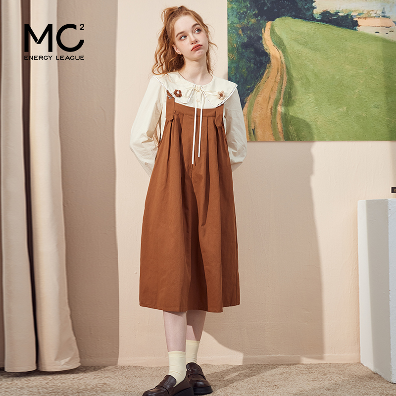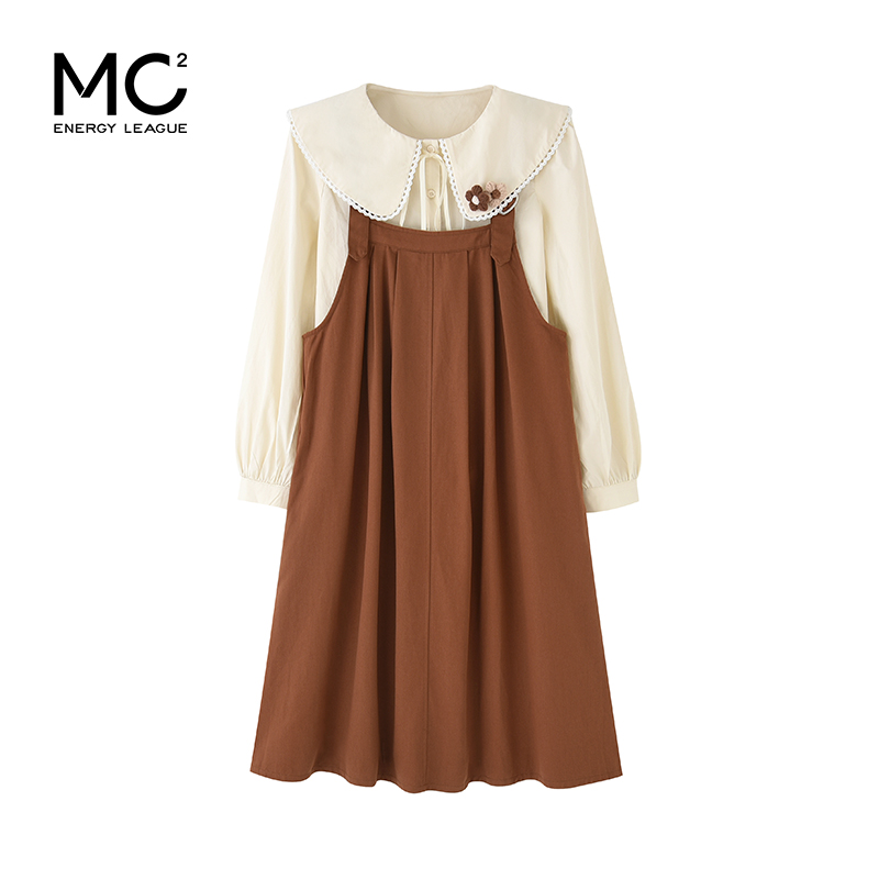 mc2娃娃领衬衫配a型背带裙两件套女装2023新款奶系软糯可爱甜美风