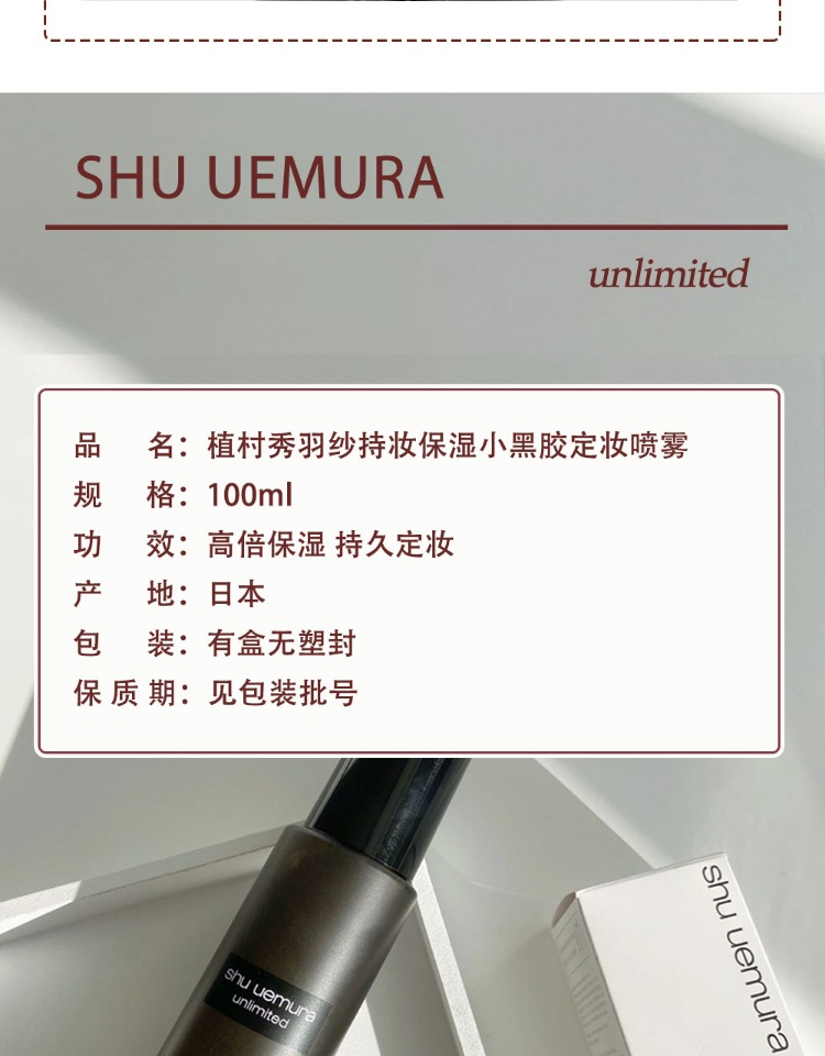 【跨境】SHU UEMURA植村秀羽纱持妆定妆喷雾100ml 小黑胶保湿喷雾持妆控油(效期到26年9-10月)
