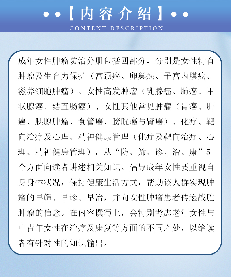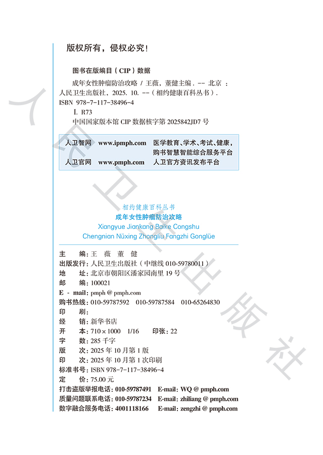 成年女性肿瘤防治攻略 相约健康百科丛书 王薇 董健 主编 从防筛诊治康5个方面向读者讲述相关知识 科普 疾病防治 人民卫生出版社