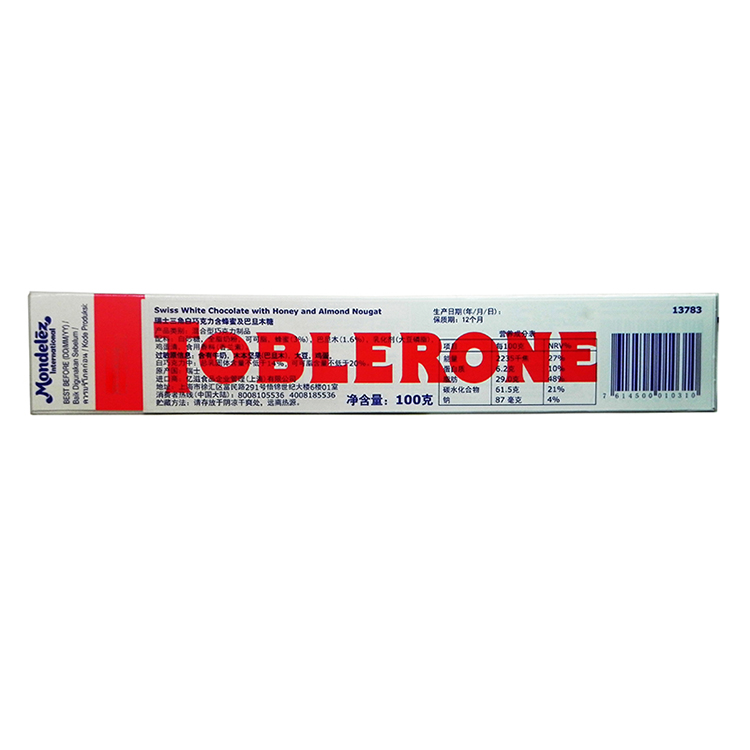 配料:白砂糖,全脂奶粉,可可脂,蜂蜜3%,杏仁1.6%,乳化剂,鸡蛋清,食用香料,香兰素 净含量:100克 保质期:12月