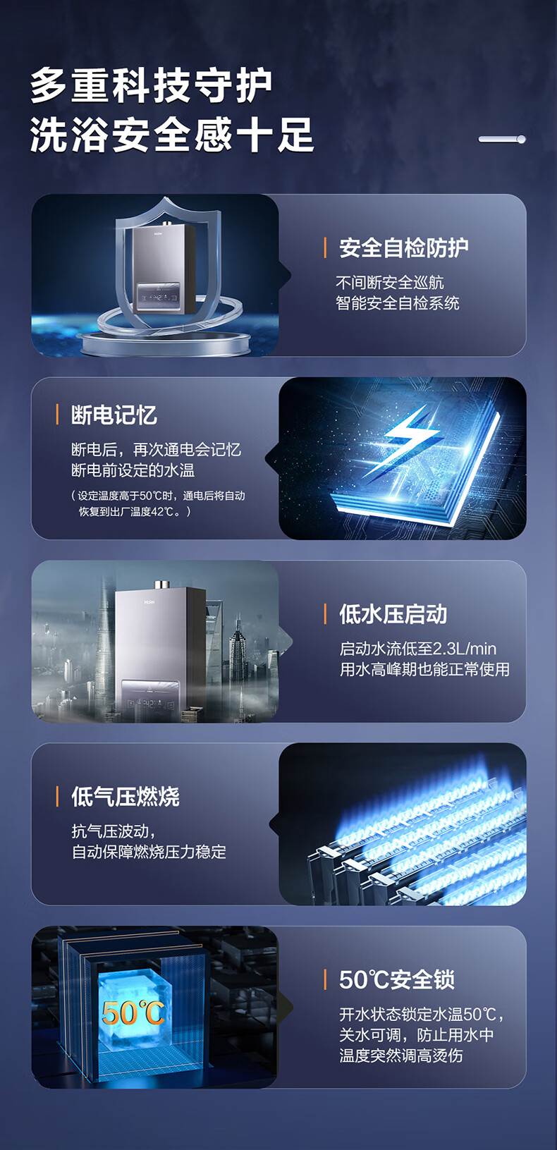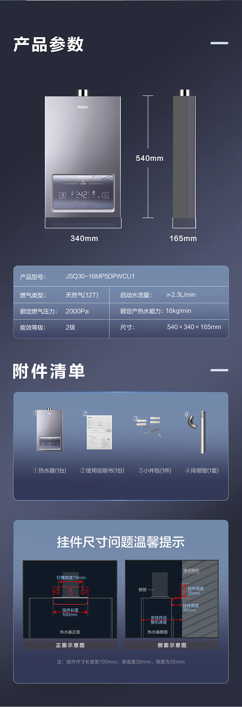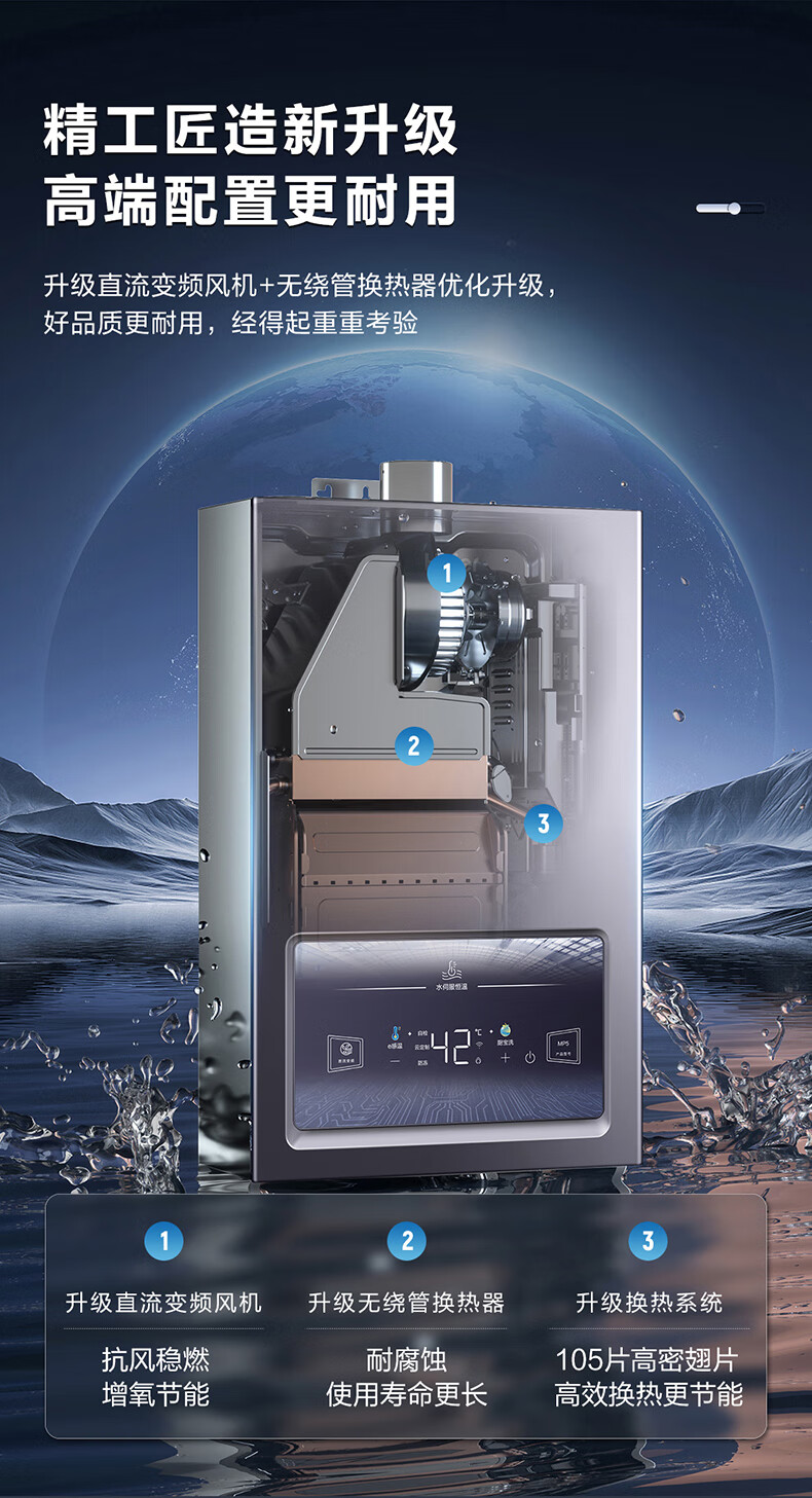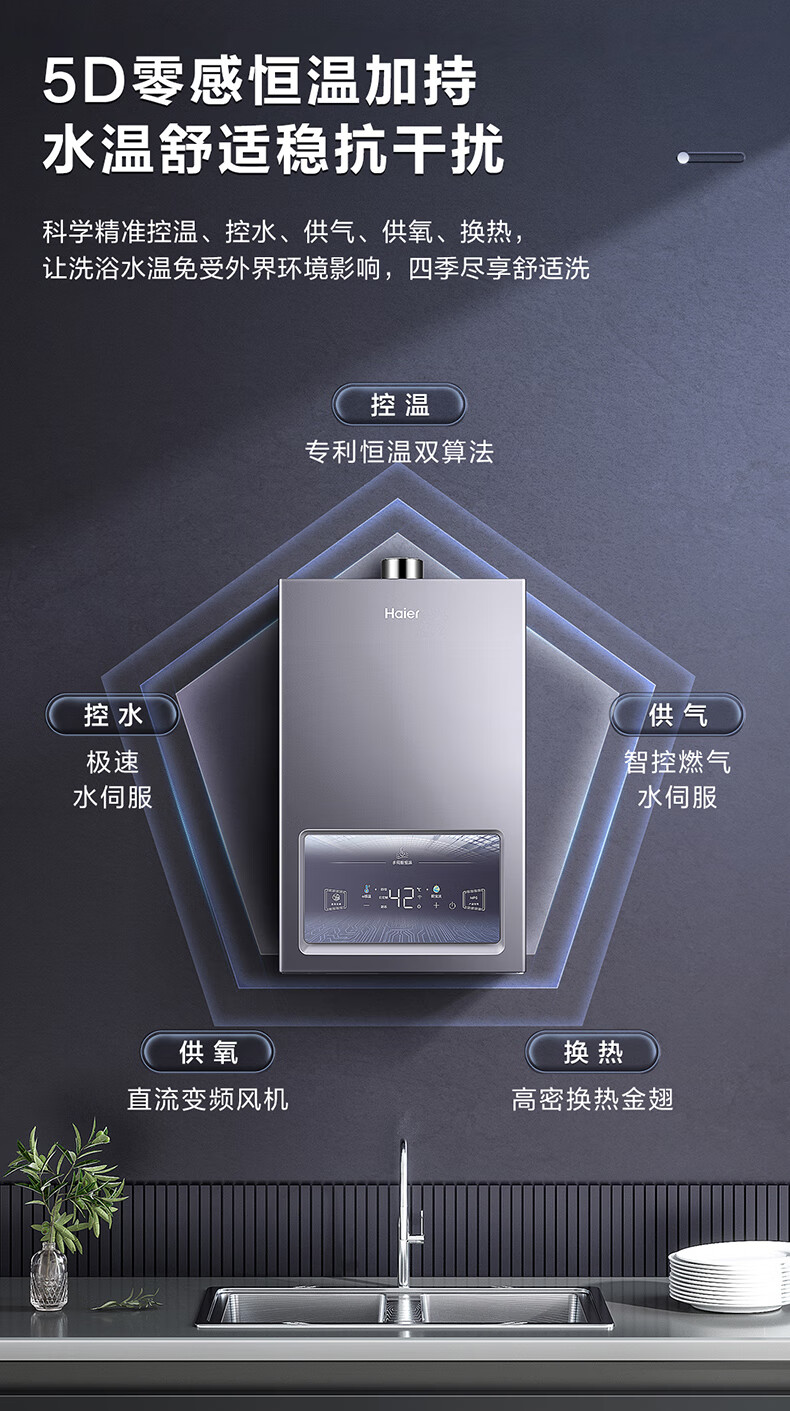 海尔(Haier)燃气热水器水伺服恒温低气压低水压启动断电记忆安全自检防护防冻 JSQ30-16MP5DPWCU1