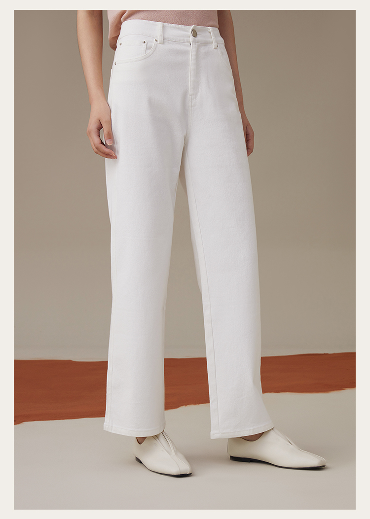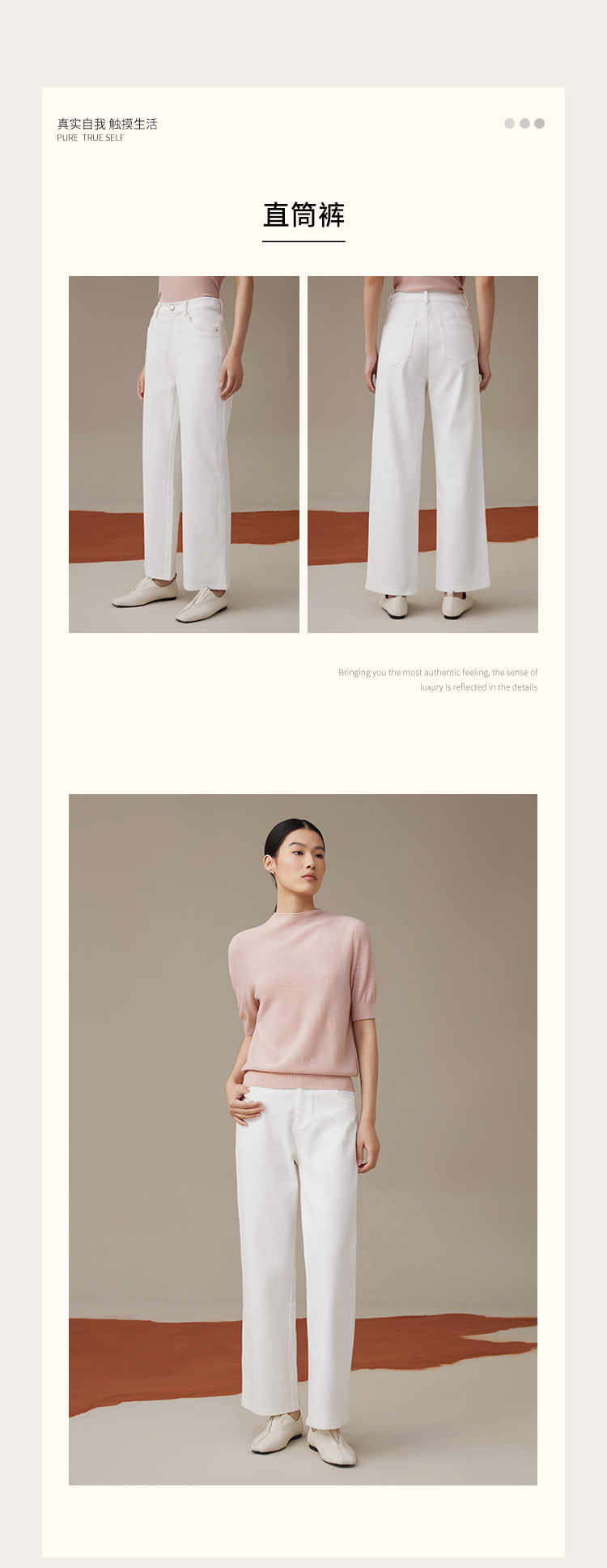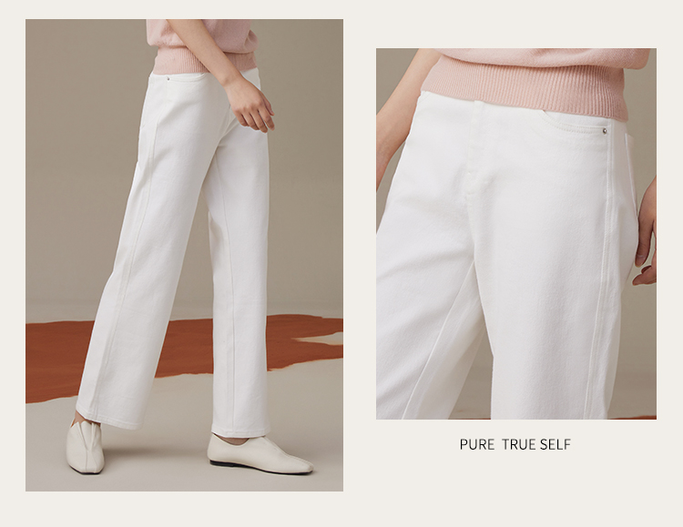 pure touch女士白色阔腿裤微弹长裤1332243337