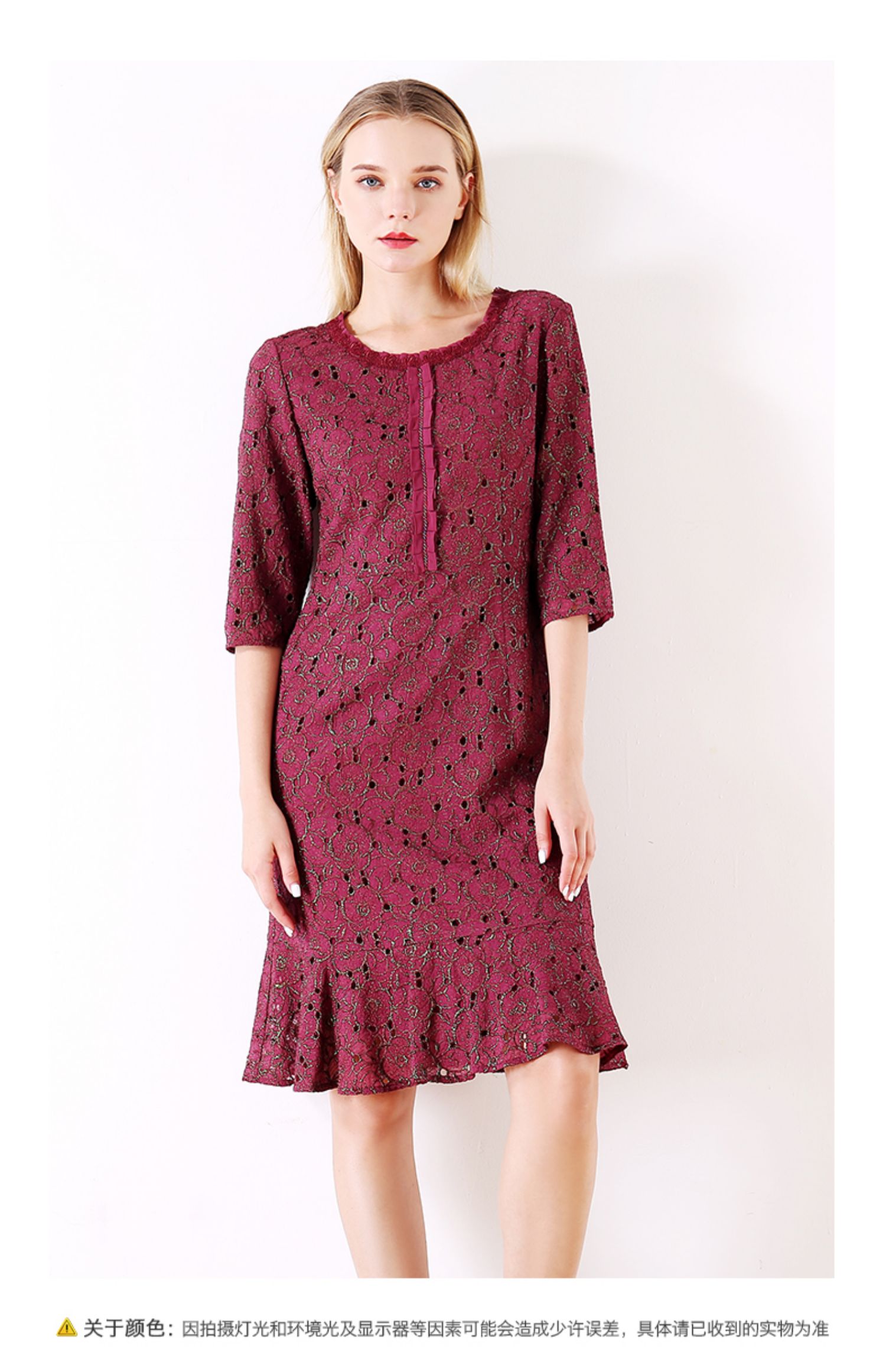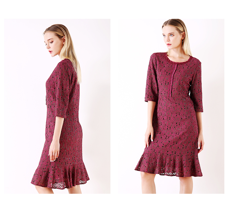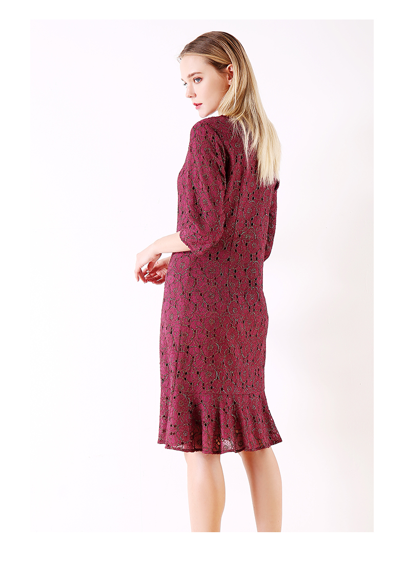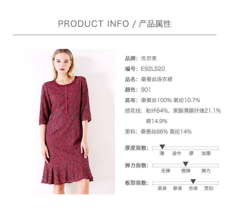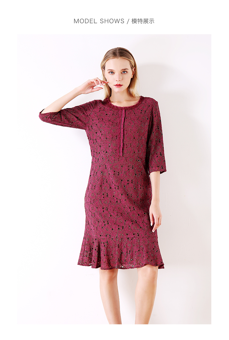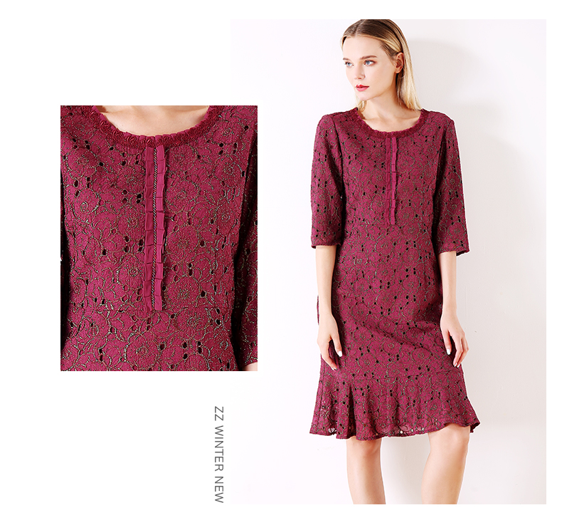 佐尔美秋季女装新品碎花蕾丝修身收腰显瘦中袖连衣裙E73LL17