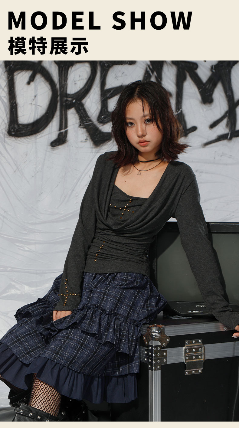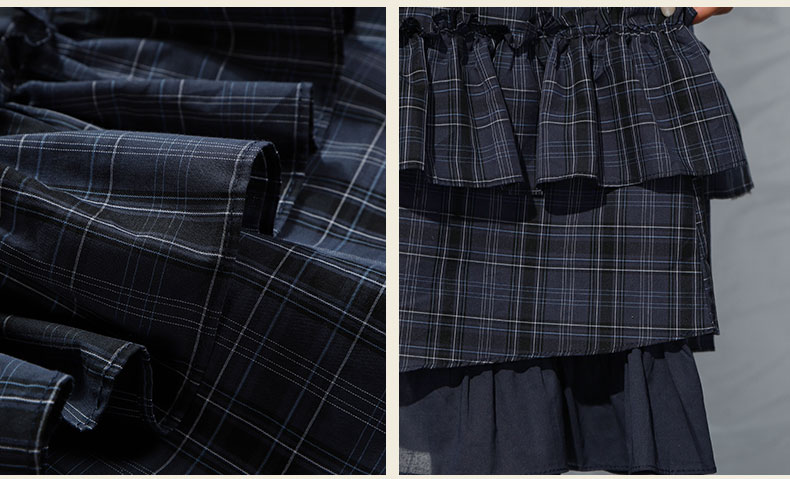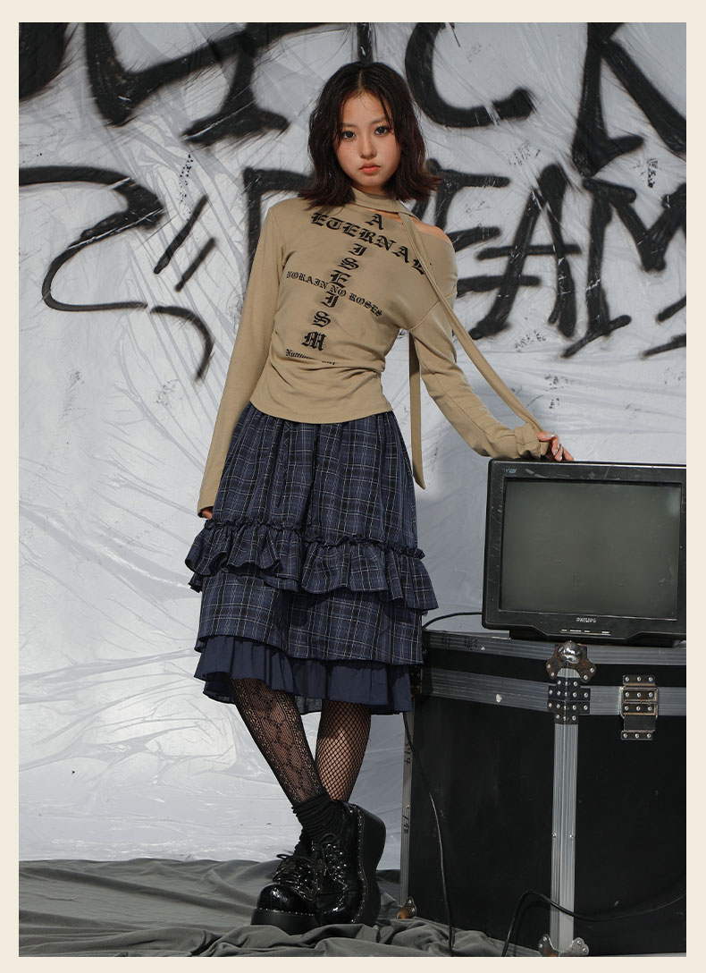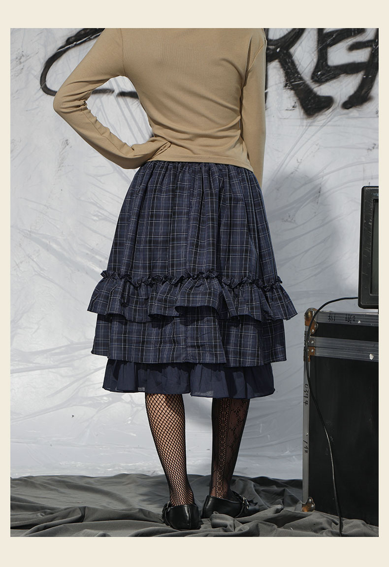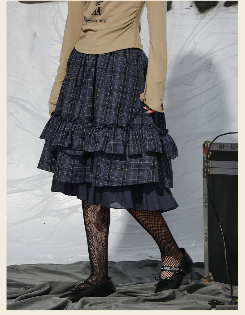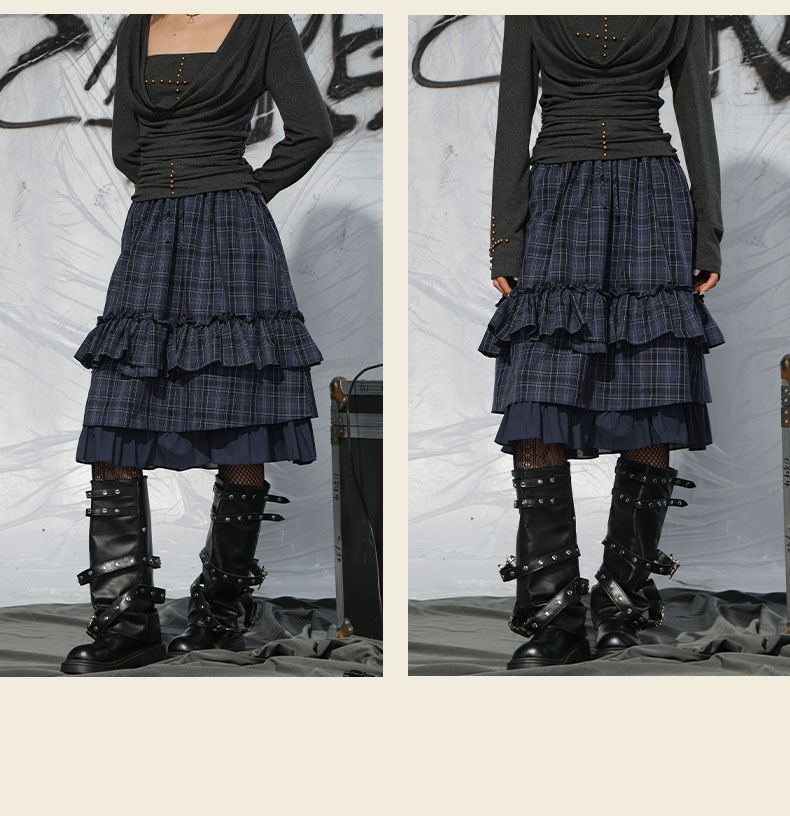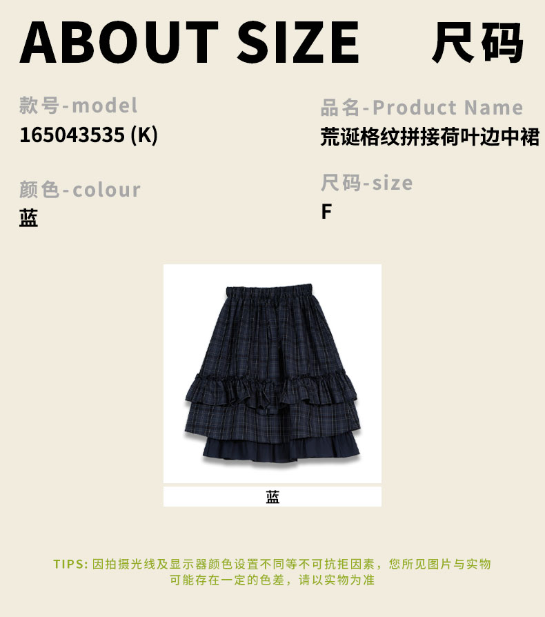 荒诞格纹拼接荷叶边中裙-纪念日百货门店同款165043535