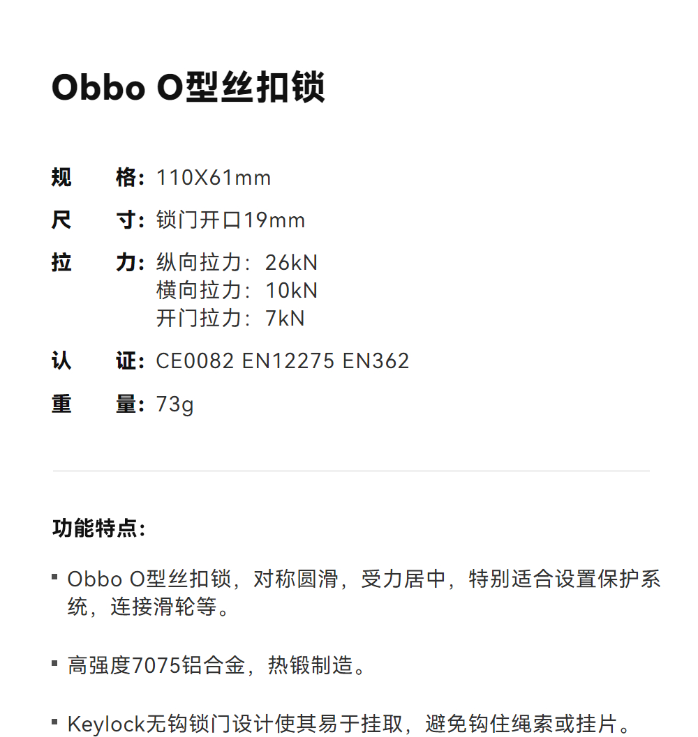 KAILAS凯乐石 Obbo O型丝扣锁 EC112A