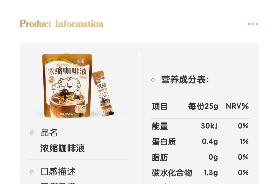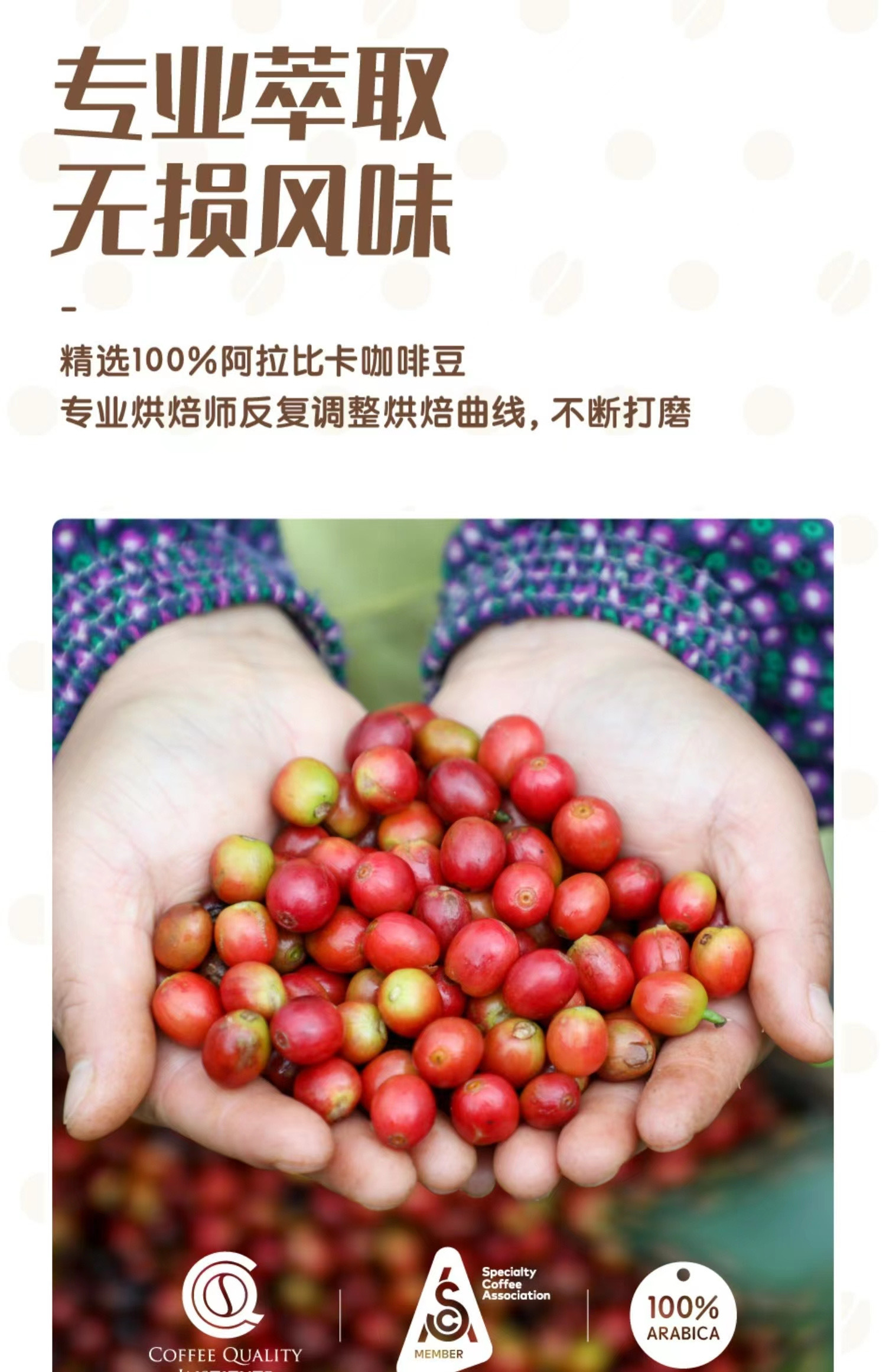 精选100%阿拉比卡咖啡豆,专业烘焙师反复调整烘焙曲线,不断打磨。高压控温萃取出的第一道前段浓缩咖啡液,保留香气与风味。锁鲜灌装技术,高阻隔包装材质,实现365天常温无菌保存。🤩