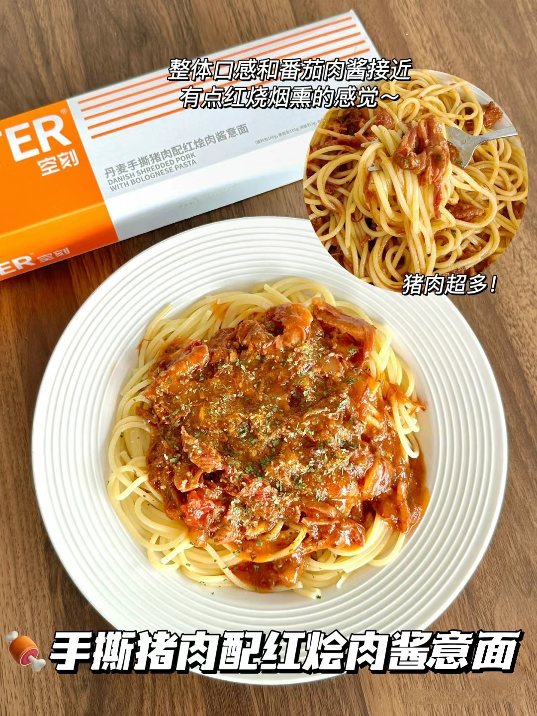 全进口丹麦皇冠慢煮手撕猪肉,米其林御用慢煮工艺,搭配经典红烩肉酱酱汁。让消费者轻松烹饪高端的星级意面,在家还原米其林餐厅料理