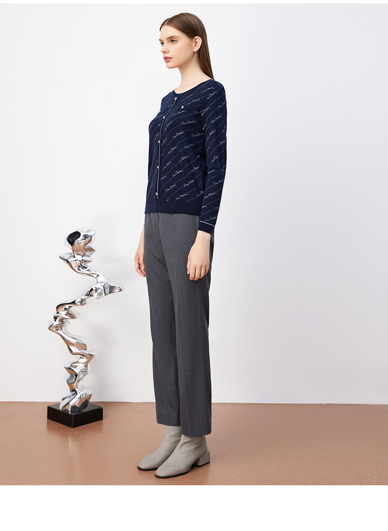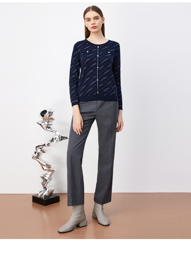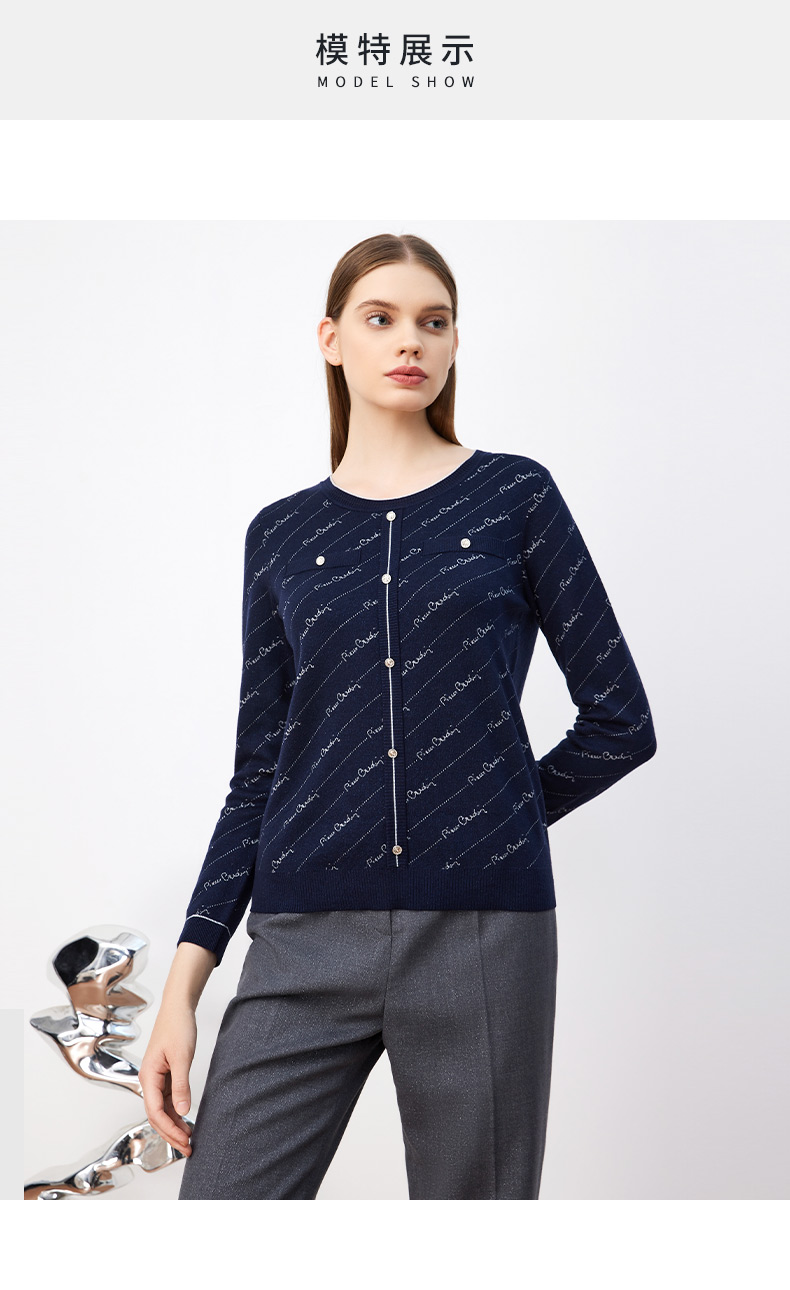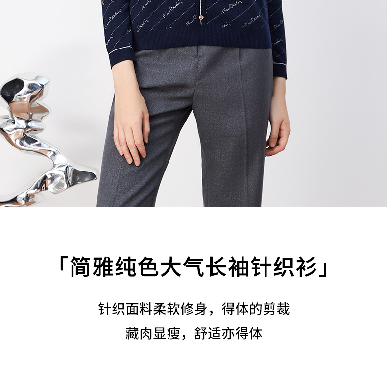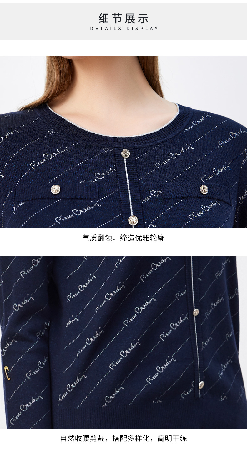 皮尔卡丹女装连衣裙羊毛提花千鸟格纹通勤假两件P2331E2967N0