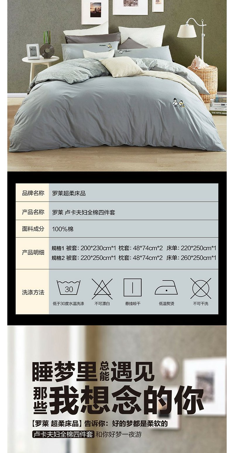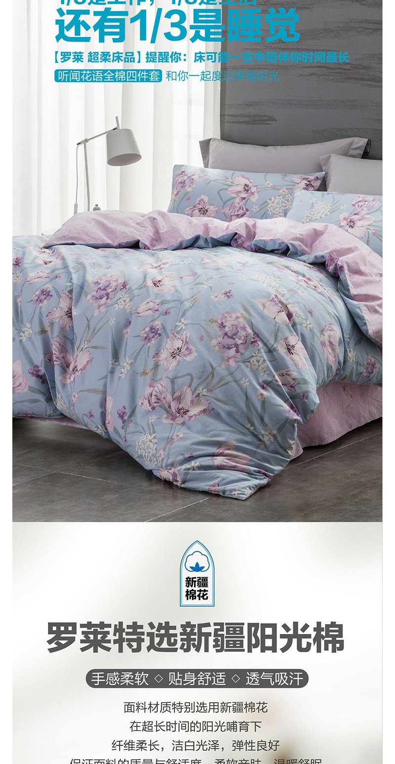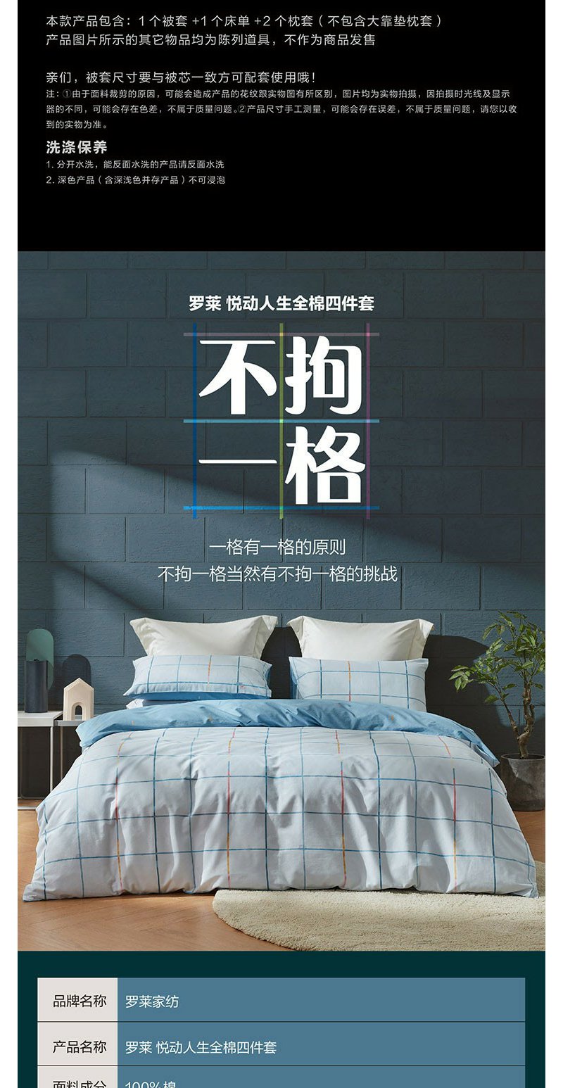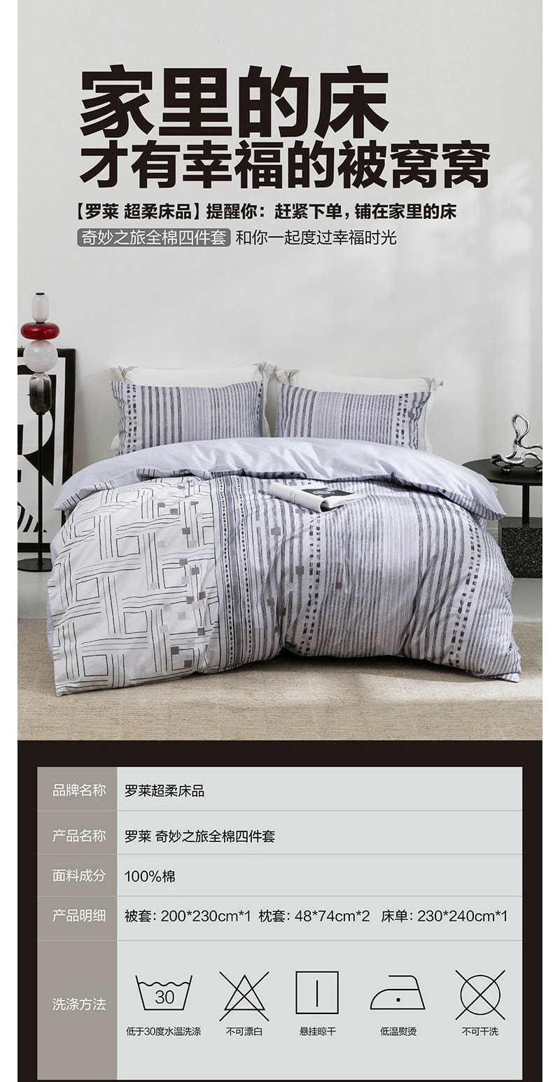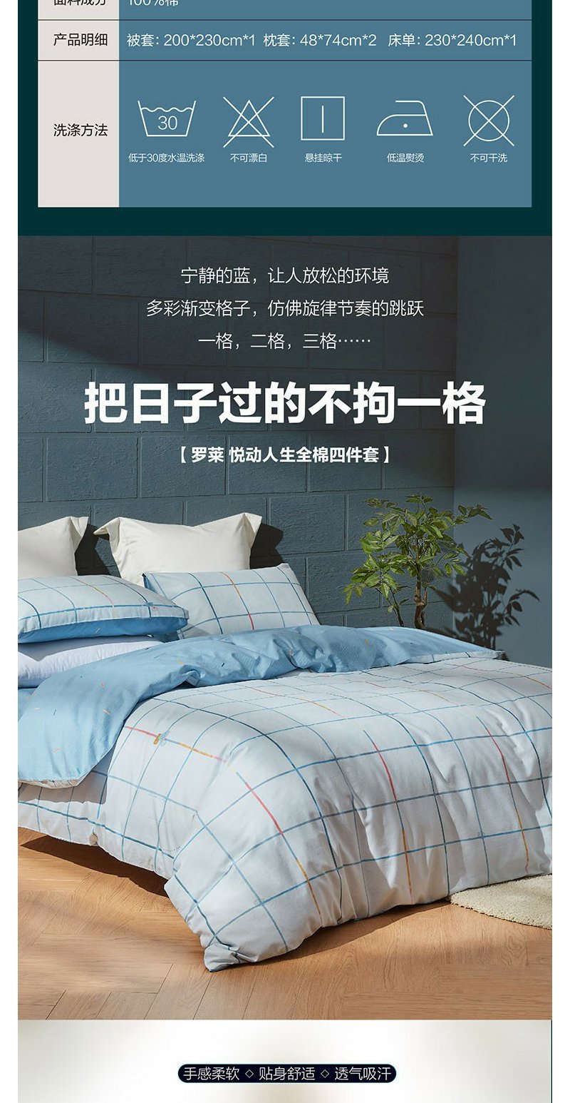 罗莱(LUOLAI) 四件套纯棉床单被罩枕套全棉床上TG单双人四季简约悦动人生 200*230cm