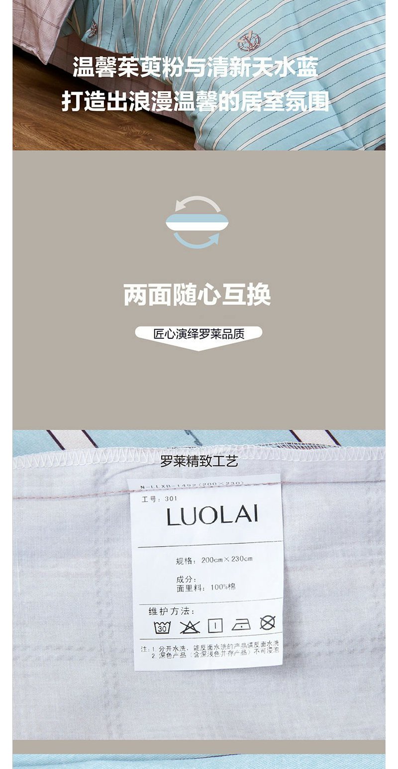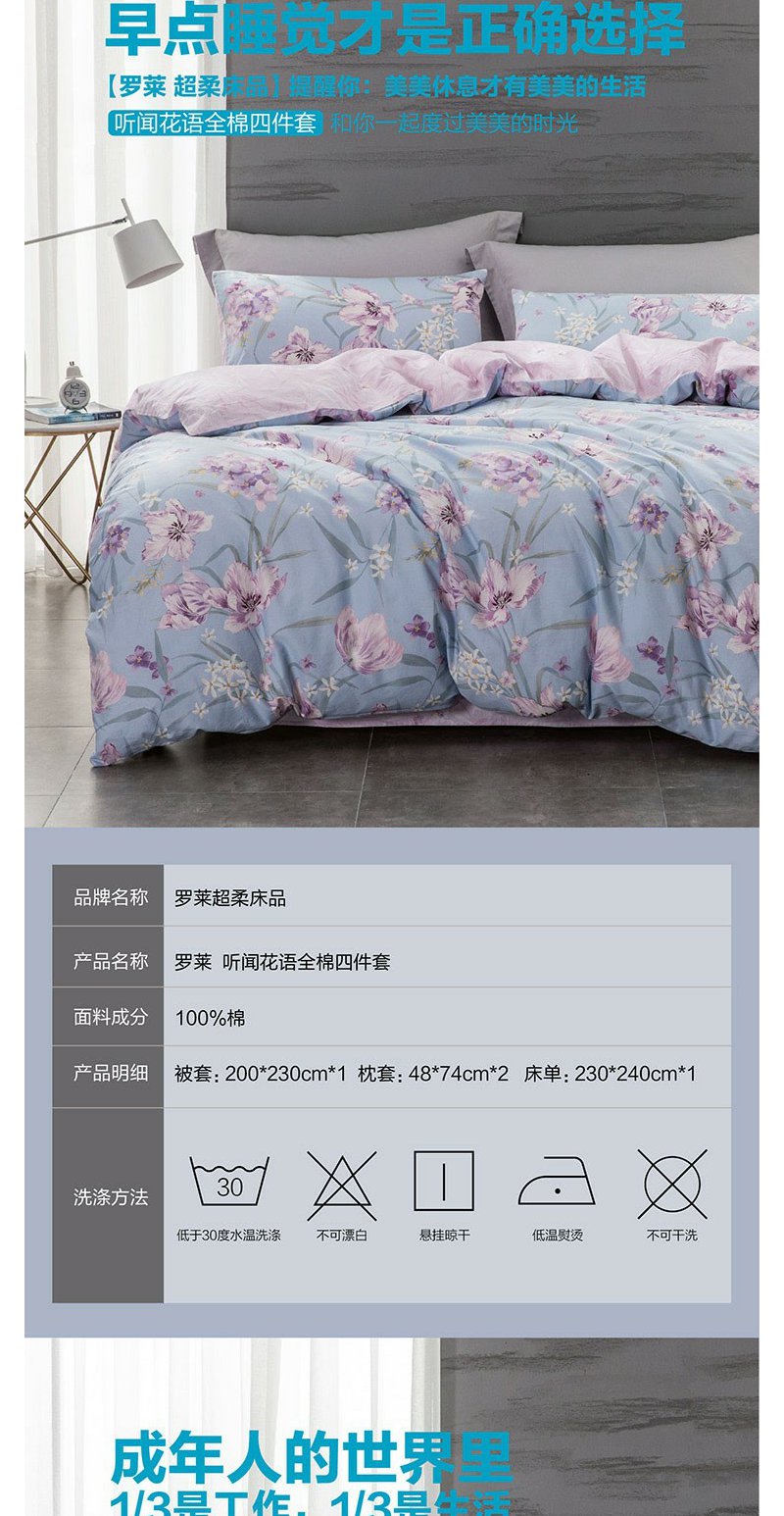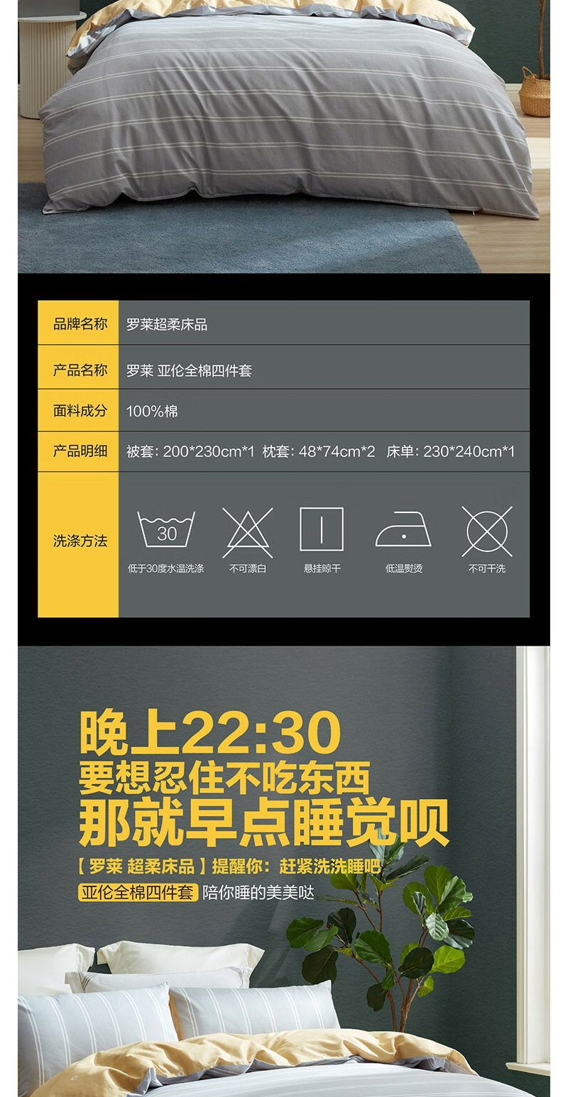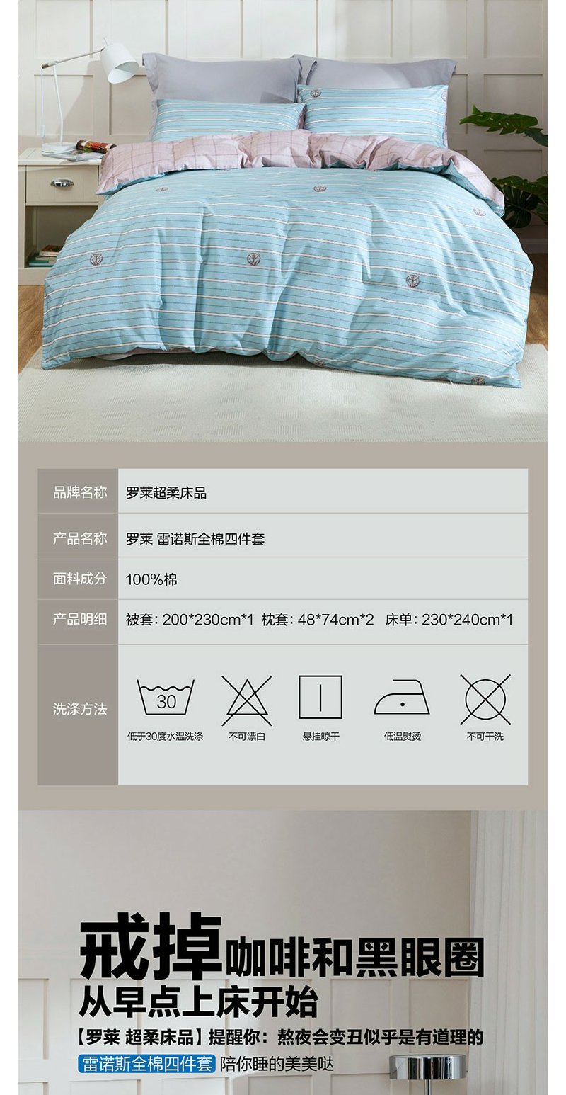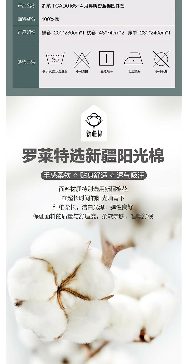 罗莱(LUOLAI) 四件套纯棉床单被罩枕套全棉床上TG单双人四季简约悦动人生 200*230cm