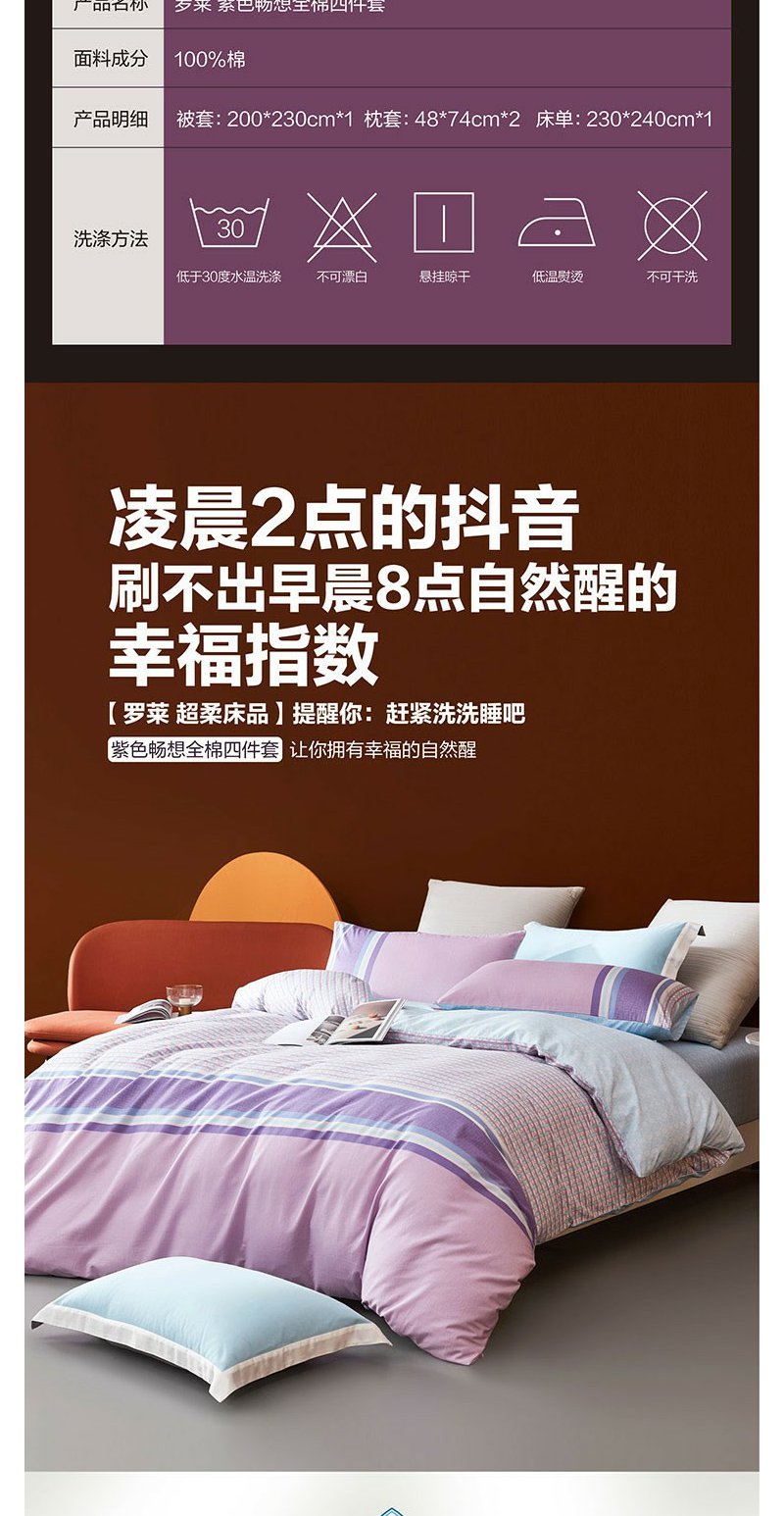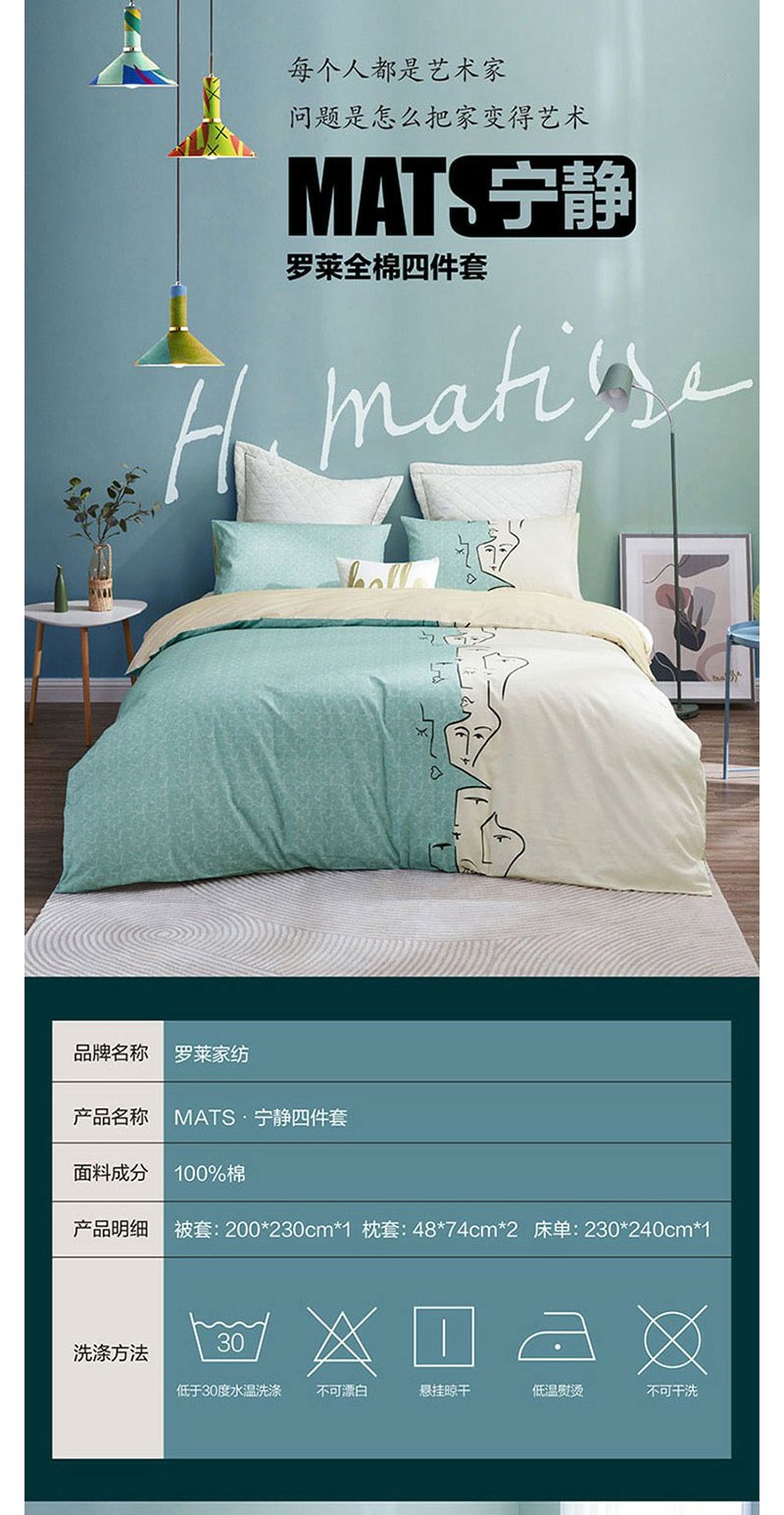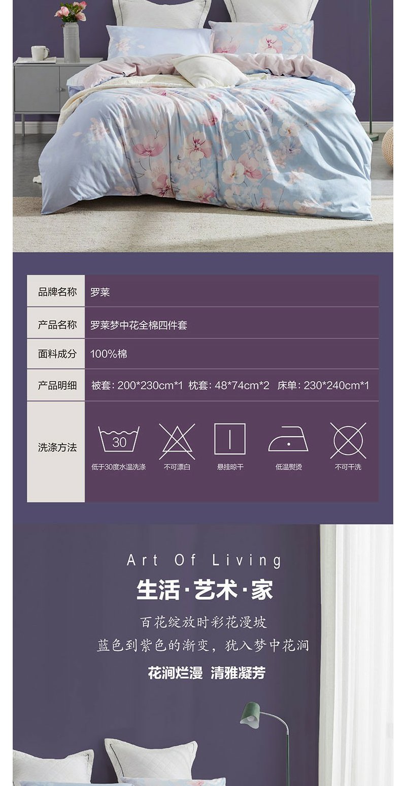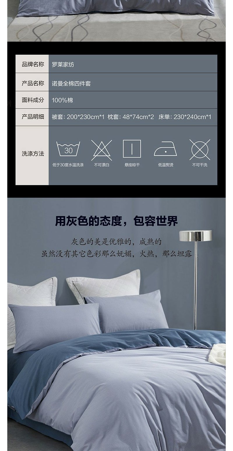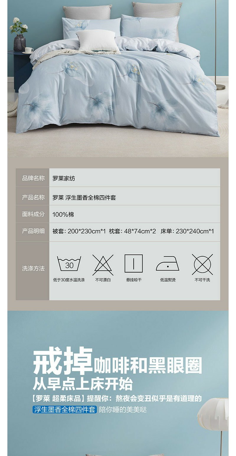 罗莱(LUOLAI) 四件套纯棉床单被罩枕套全棉床上TG单双人四季简约悦动人生 200*230cm