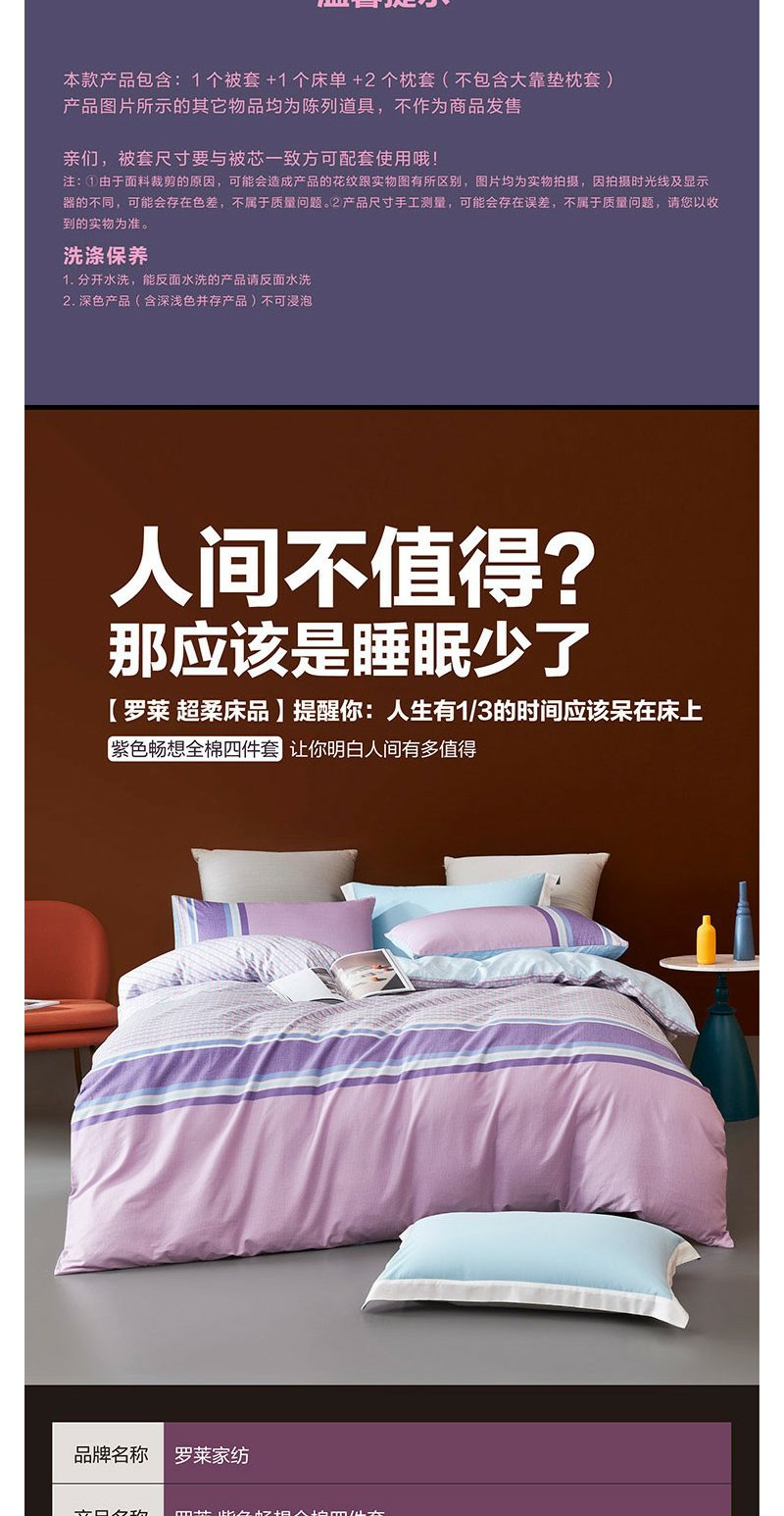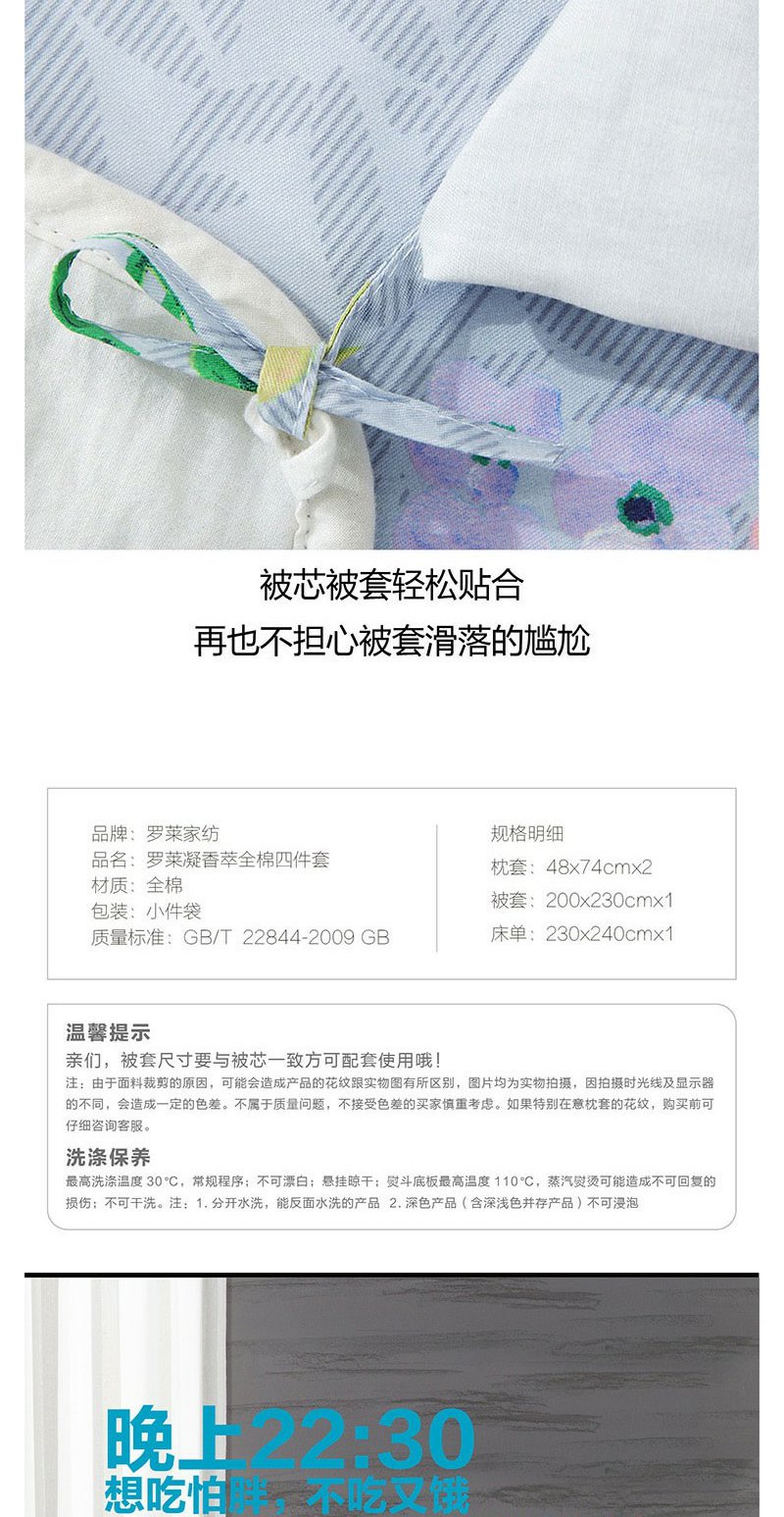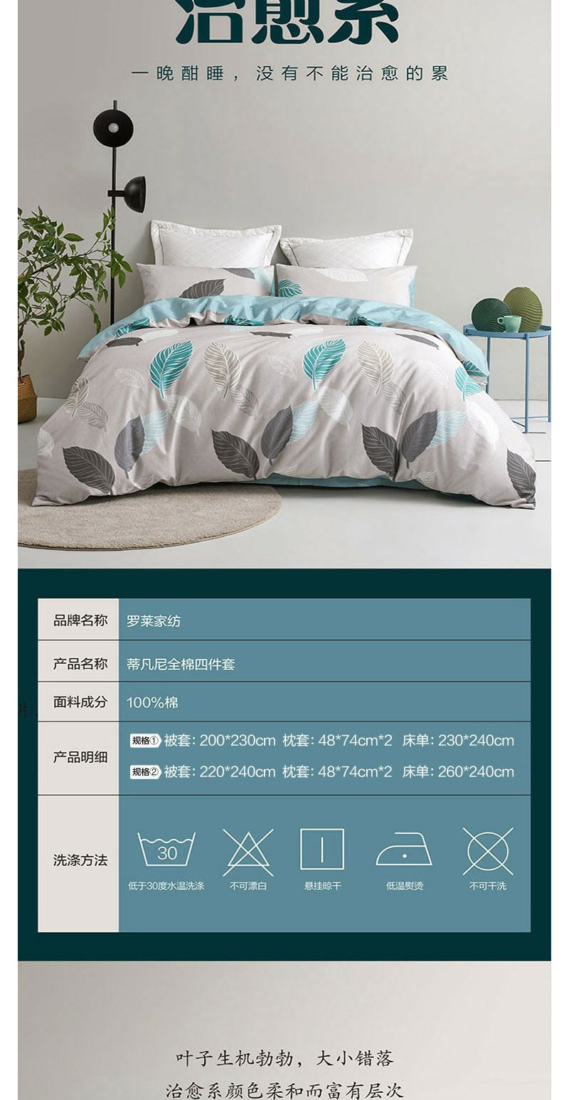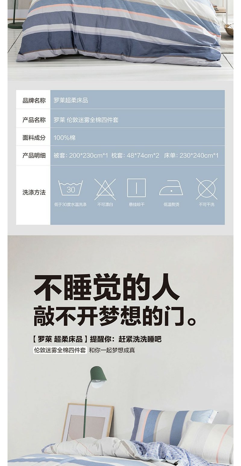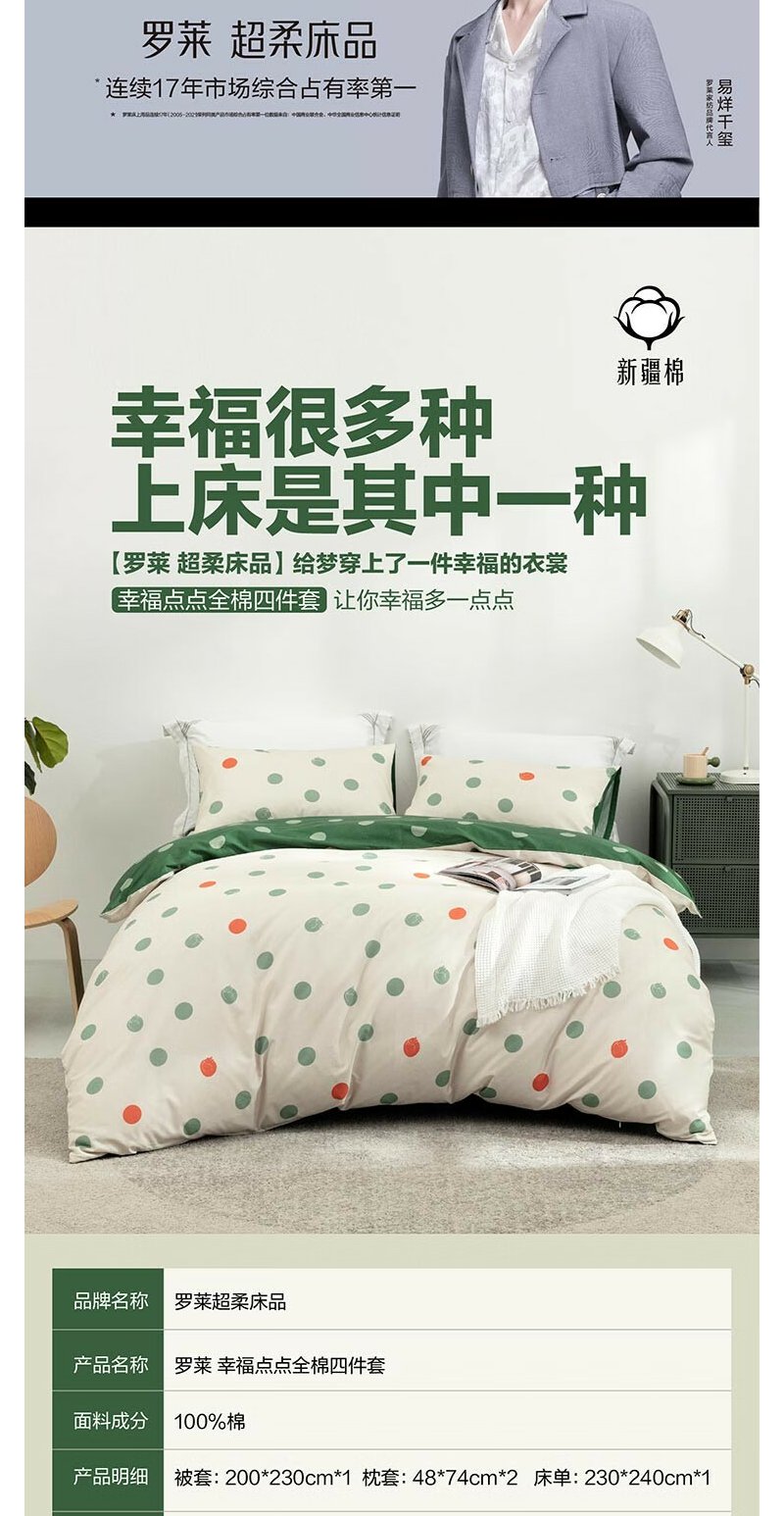 罗莱(LUOLAI) 四件套纯棉床单被罩枕套全棉床上TG单双人四季简约悦动人生 200*230cm