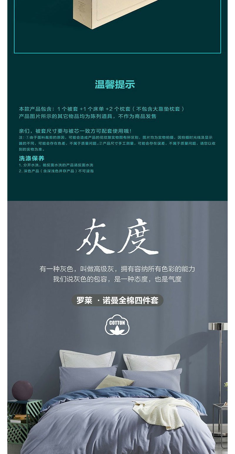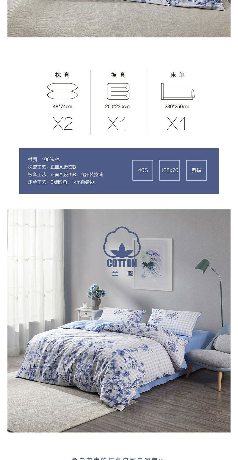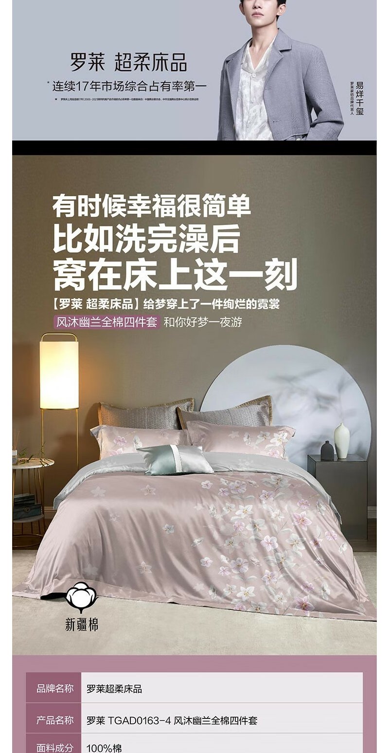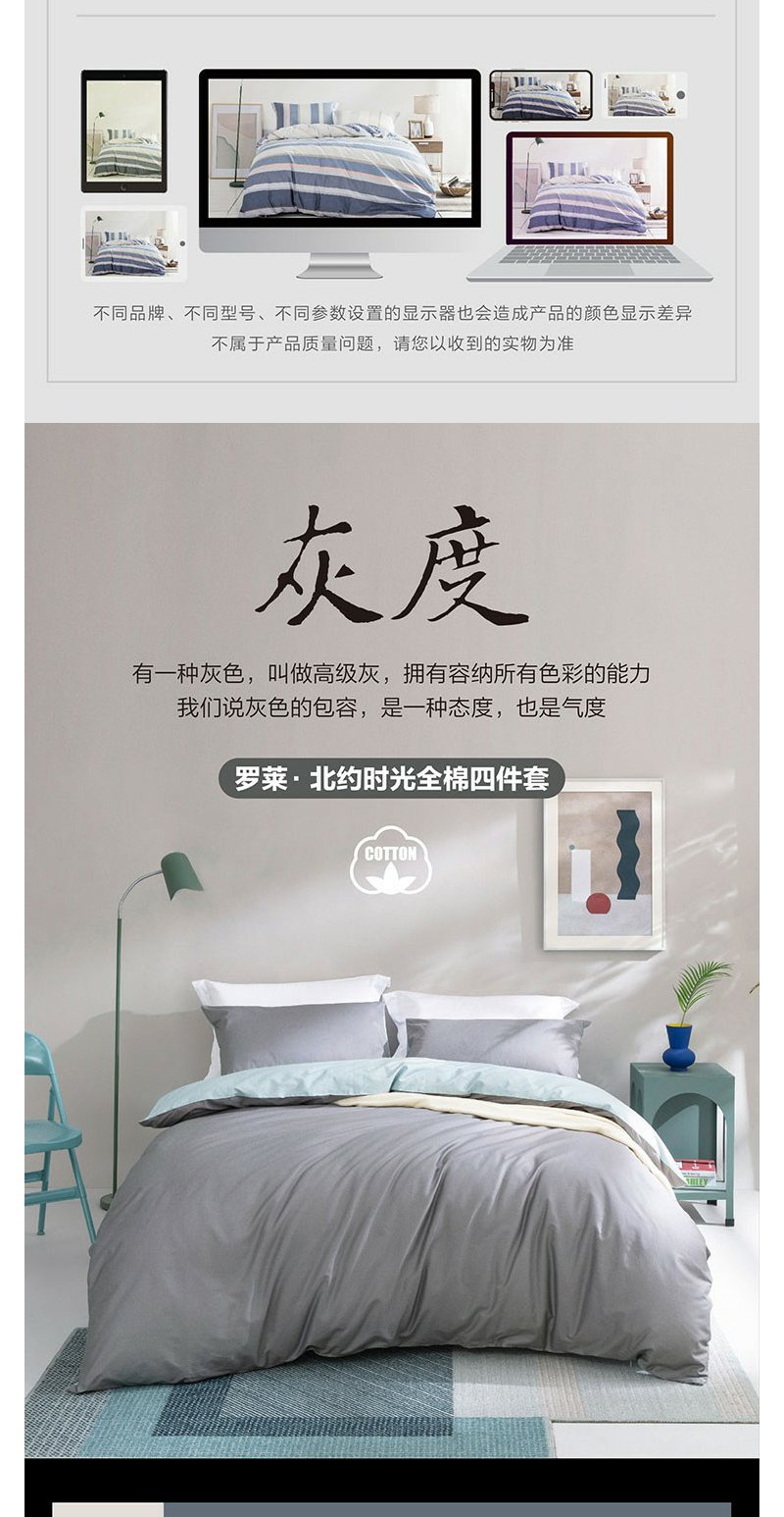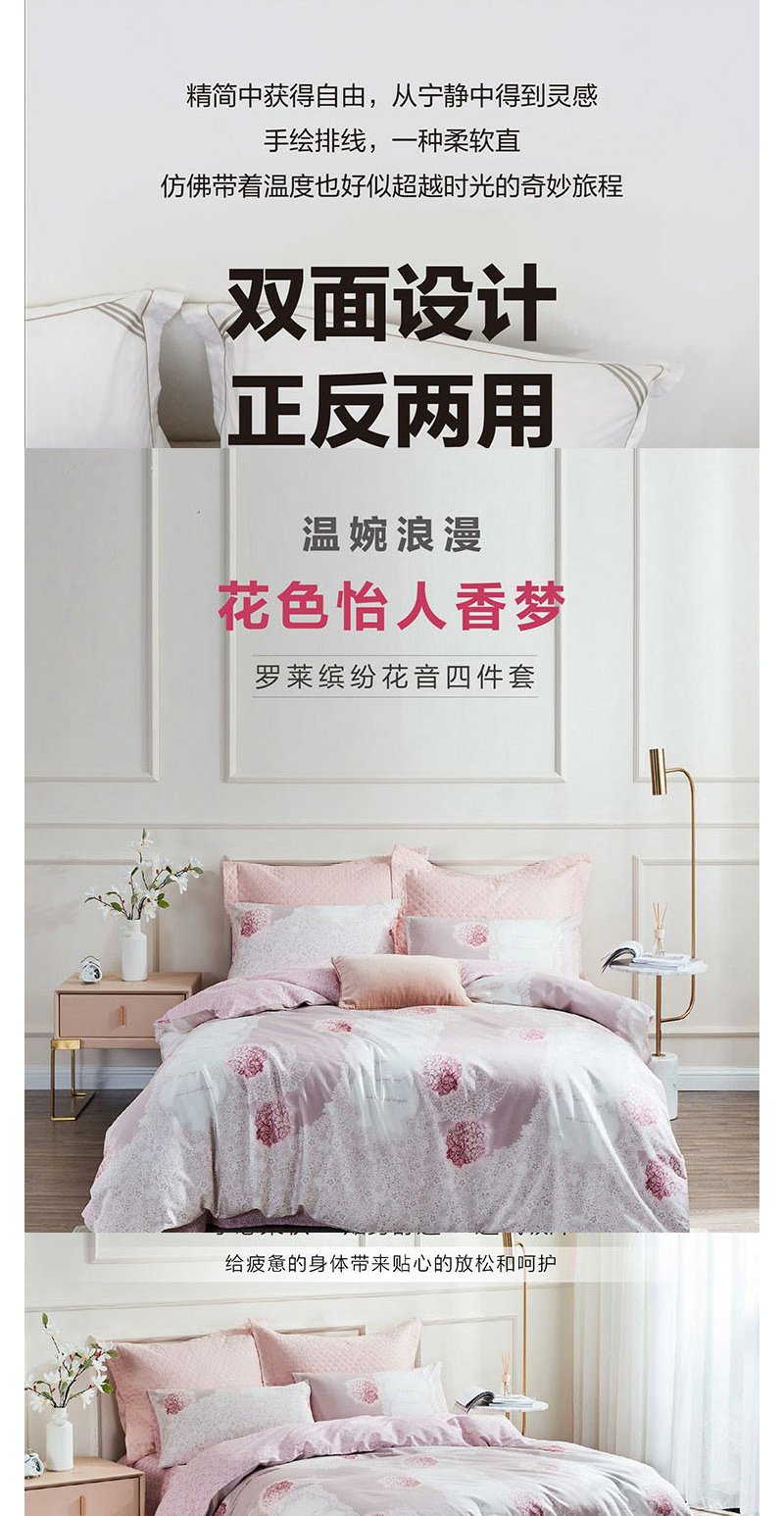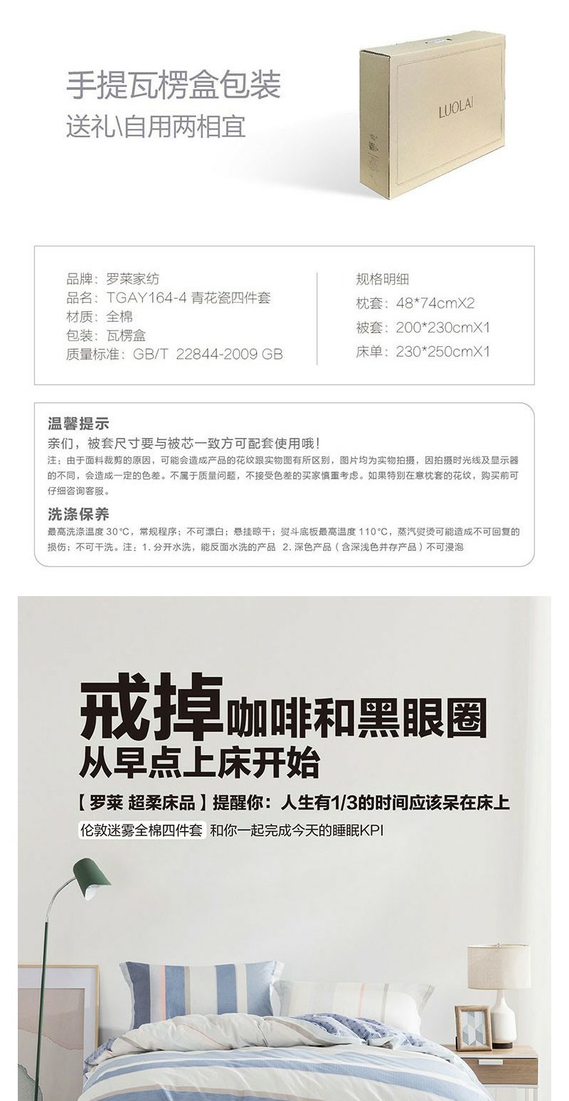 罗莱(LUOLAI) 四件套纯棉床单被罩枕套全棉床上TG单双人四季简约悦动人生 200*230cm