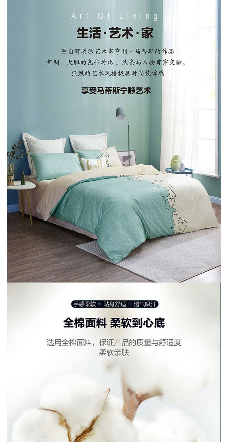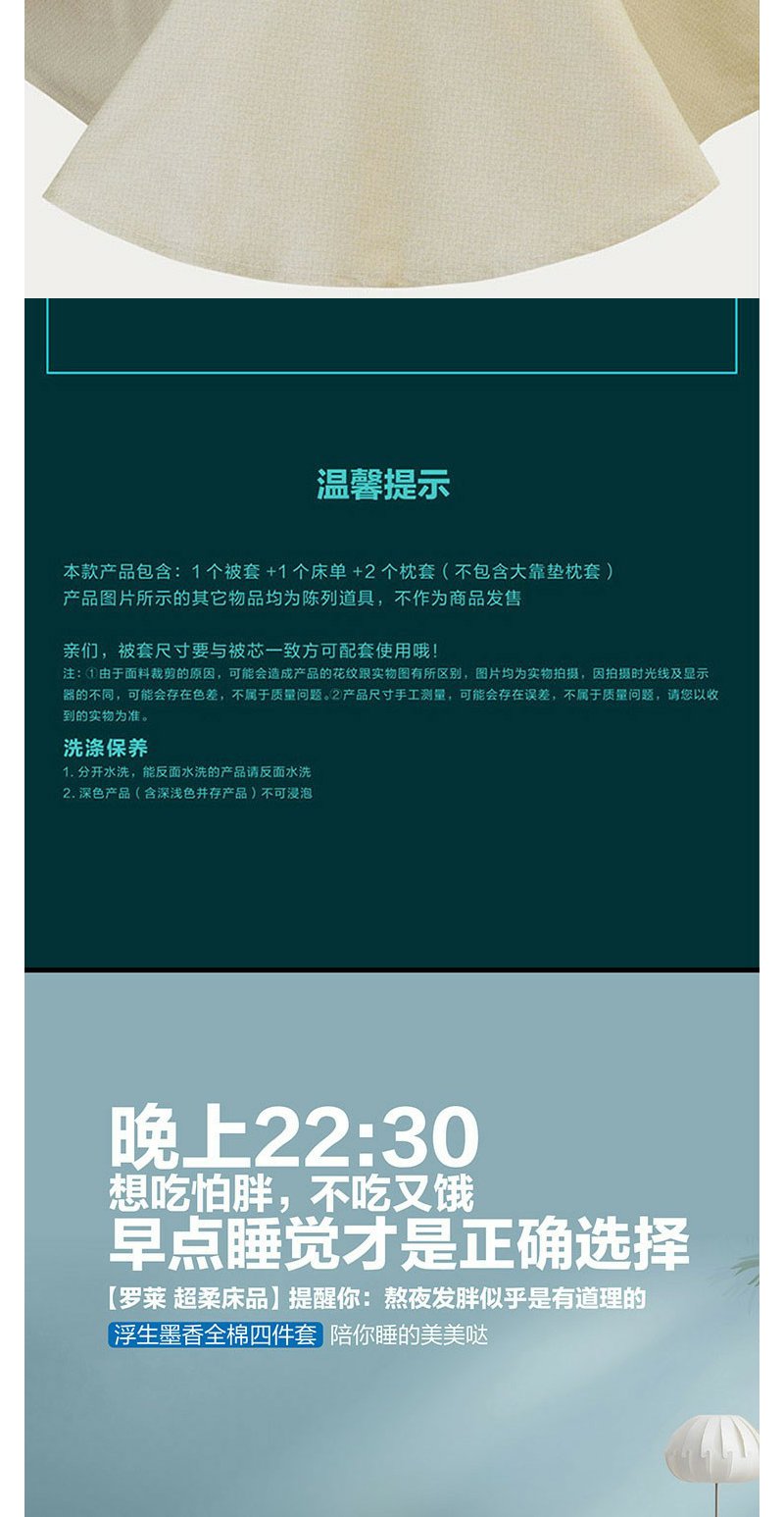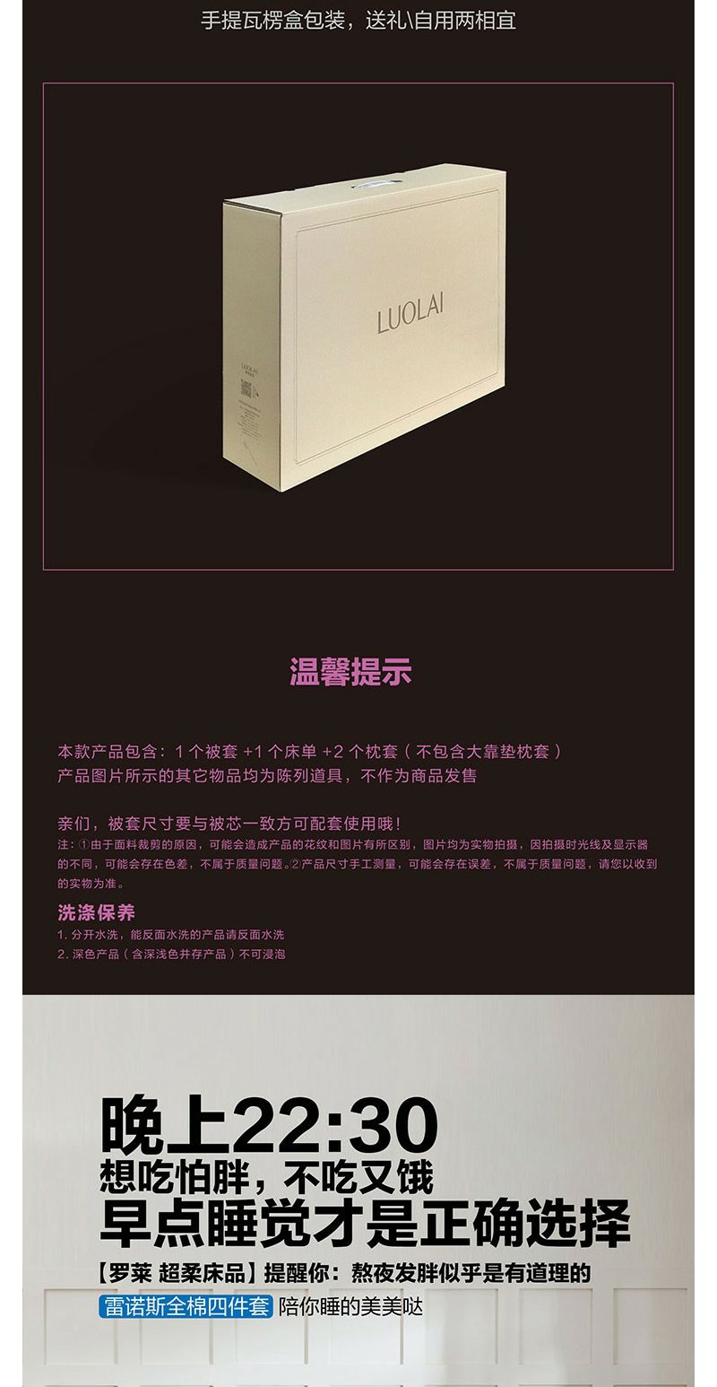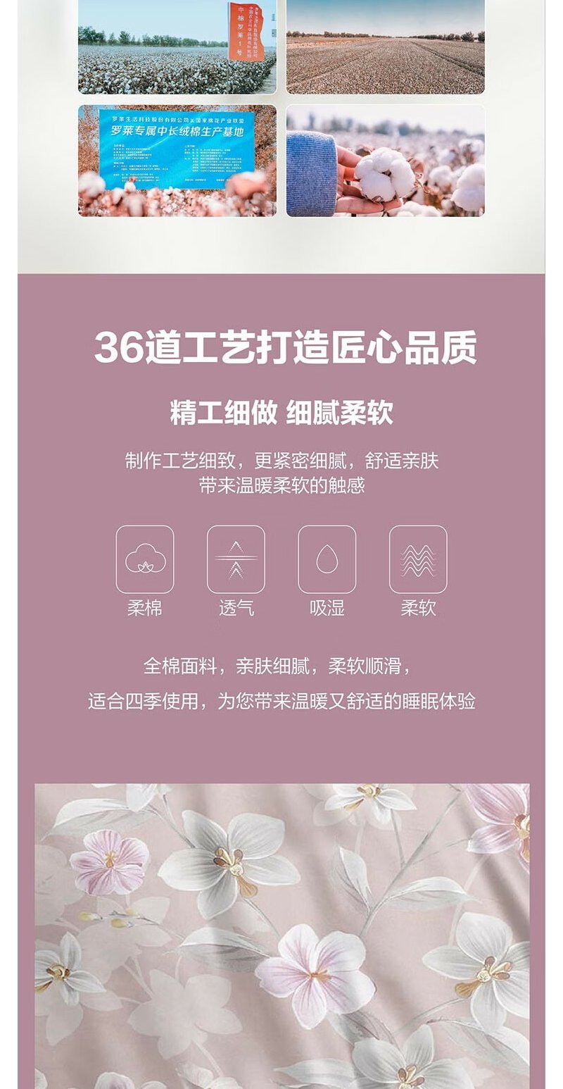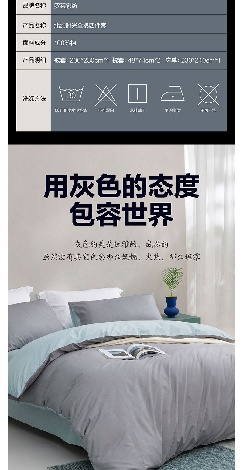 罗莱(LUOLAI) 四件套纯棉床单被罩枕套全棉床上TG单双人四季简约悦动人生 200*230cm