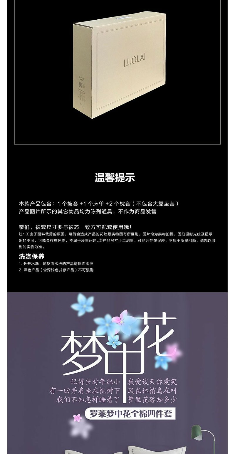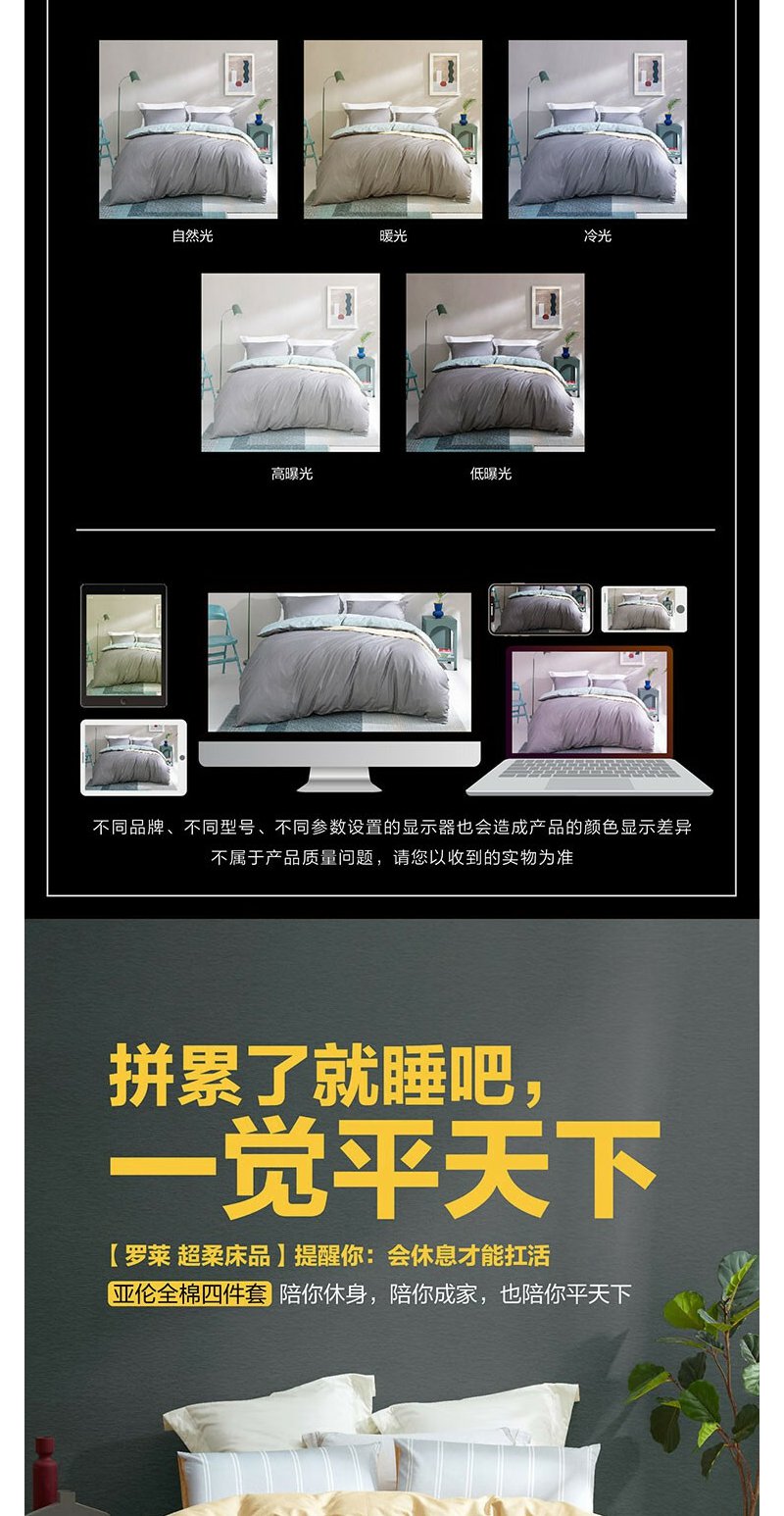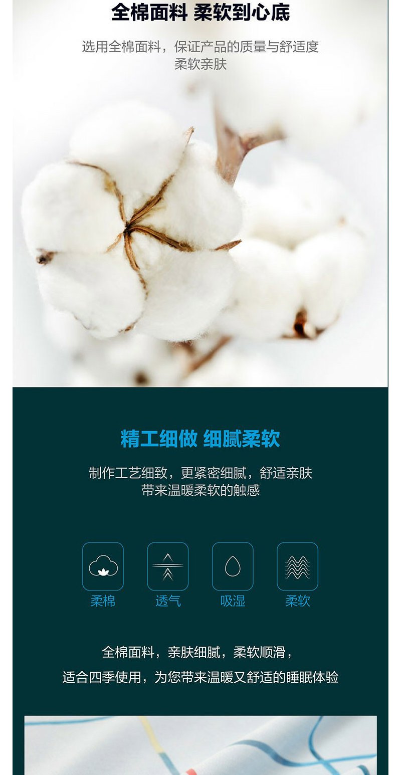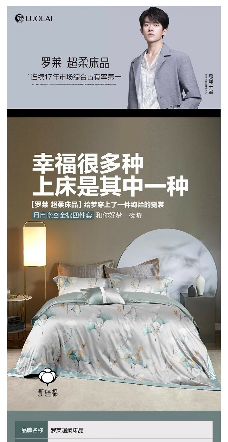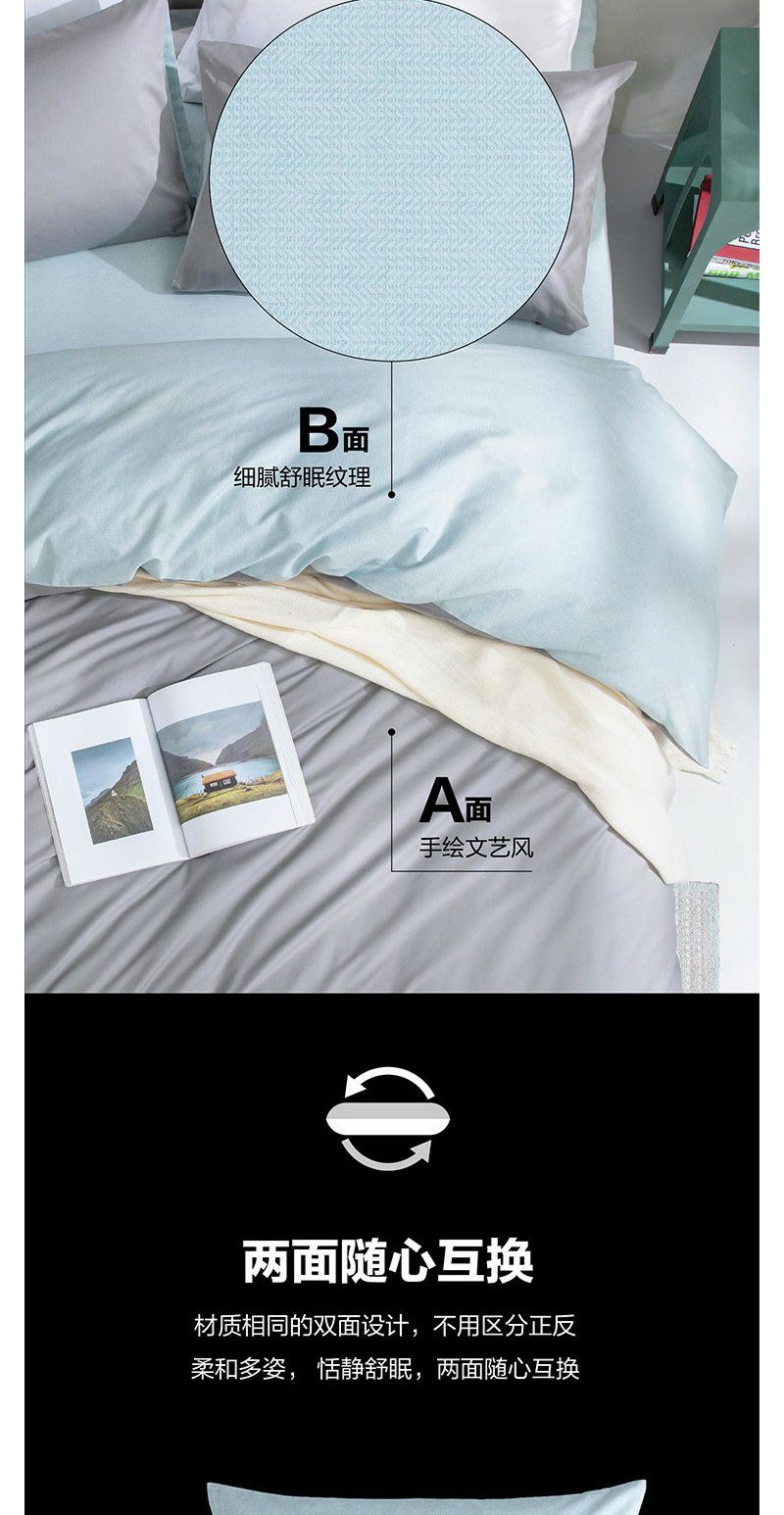 罗莱(LUOLAI) 四件套纯棉床单被罩枕套全棉床上TG单双人四季简约悦动人生 200*230cm