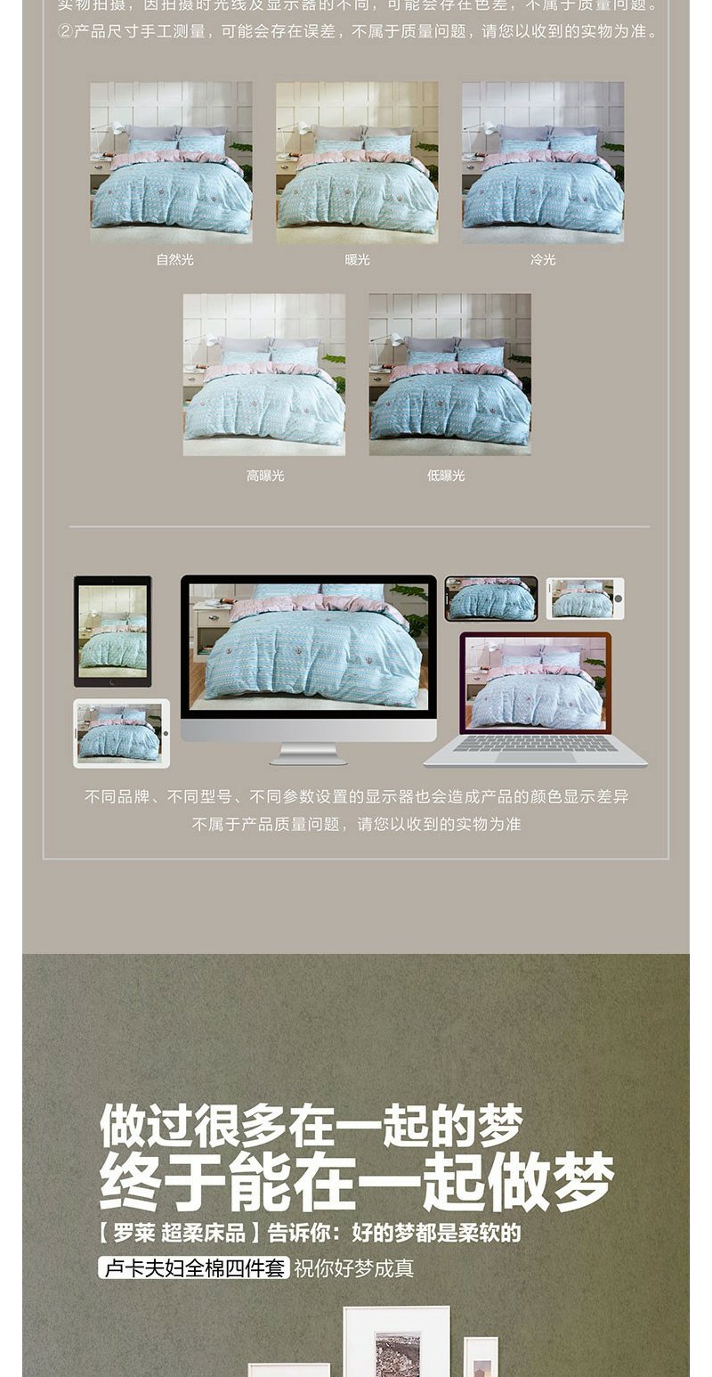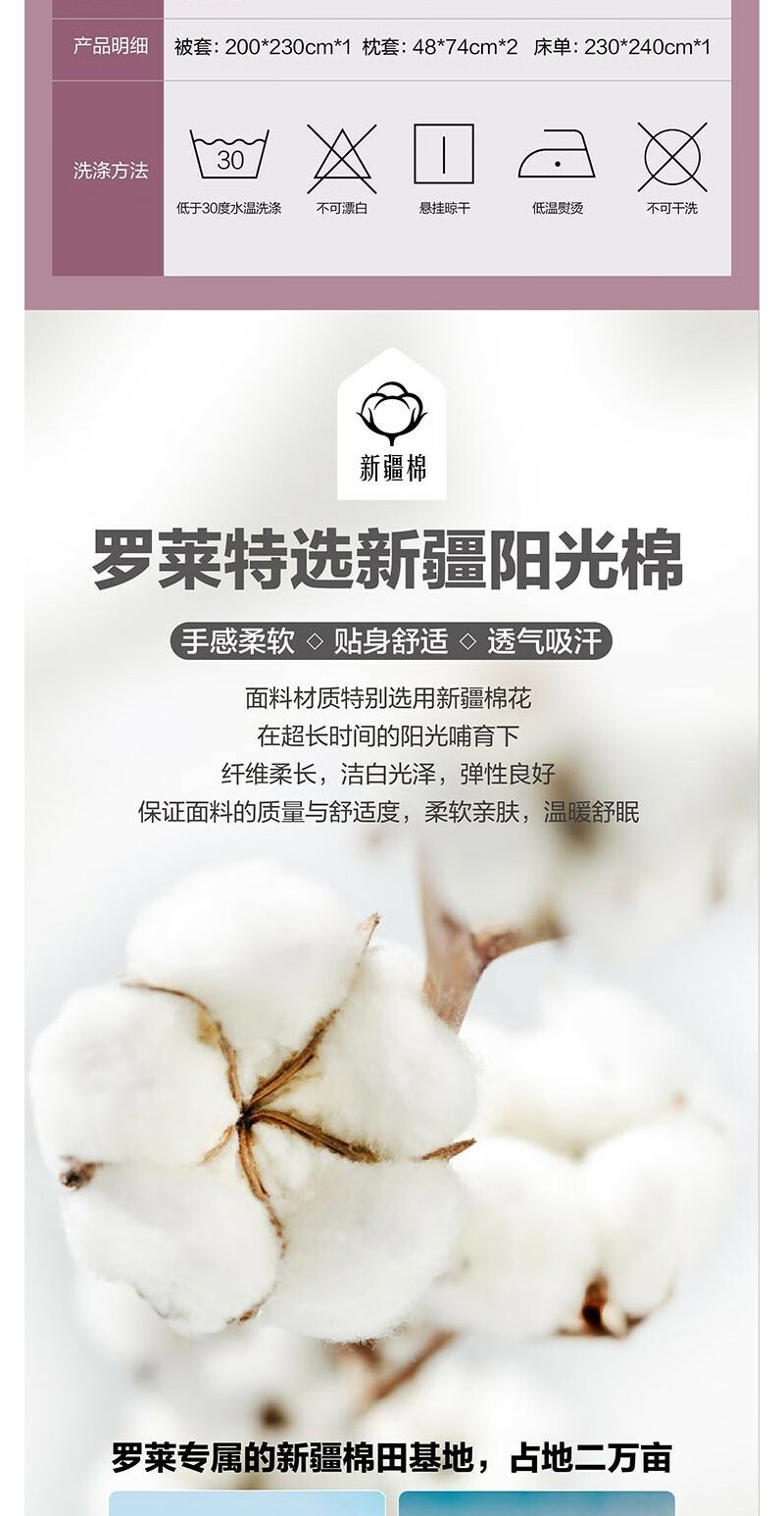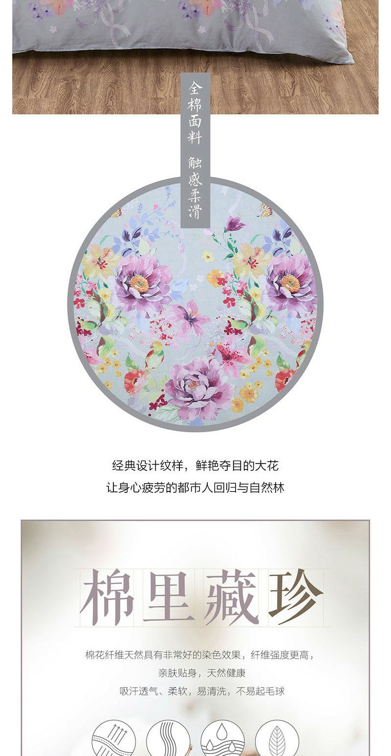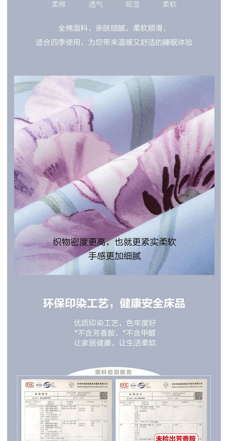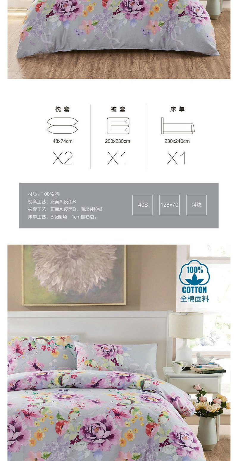 罗莱(LUOLAI) 四件套纯棉床单被罩枕套全棉床上TG单双人四季简约悦动人生 200*230cm