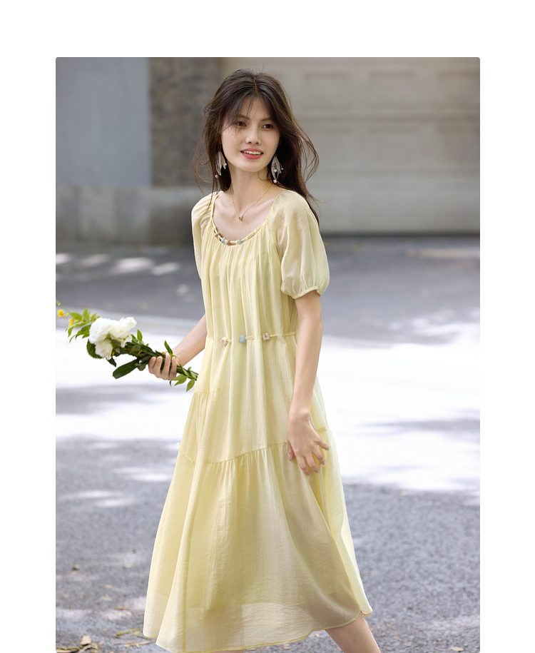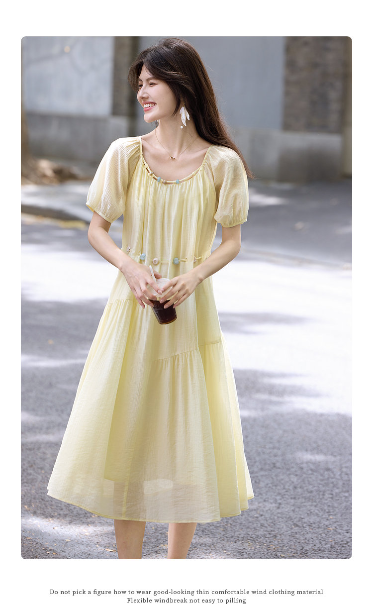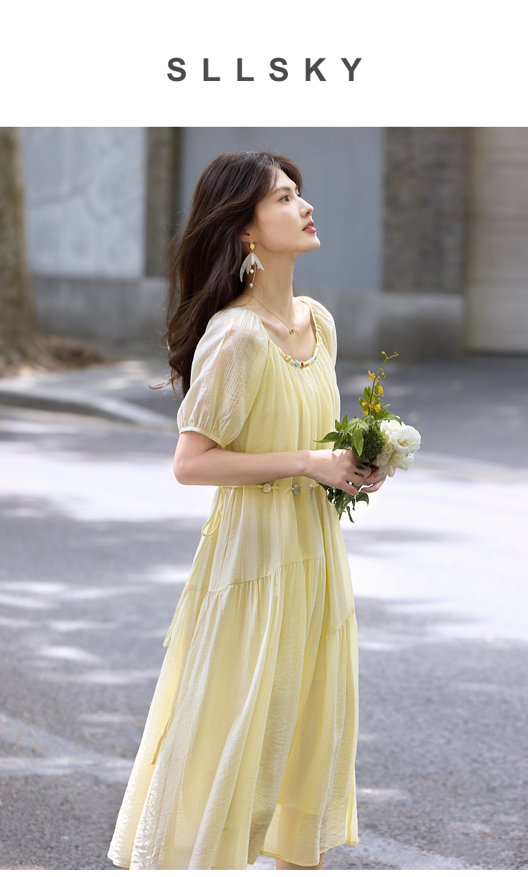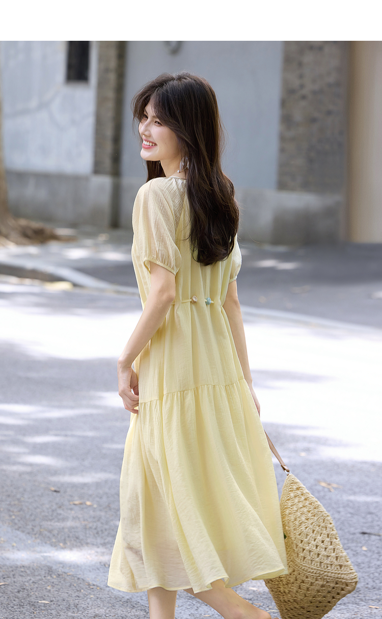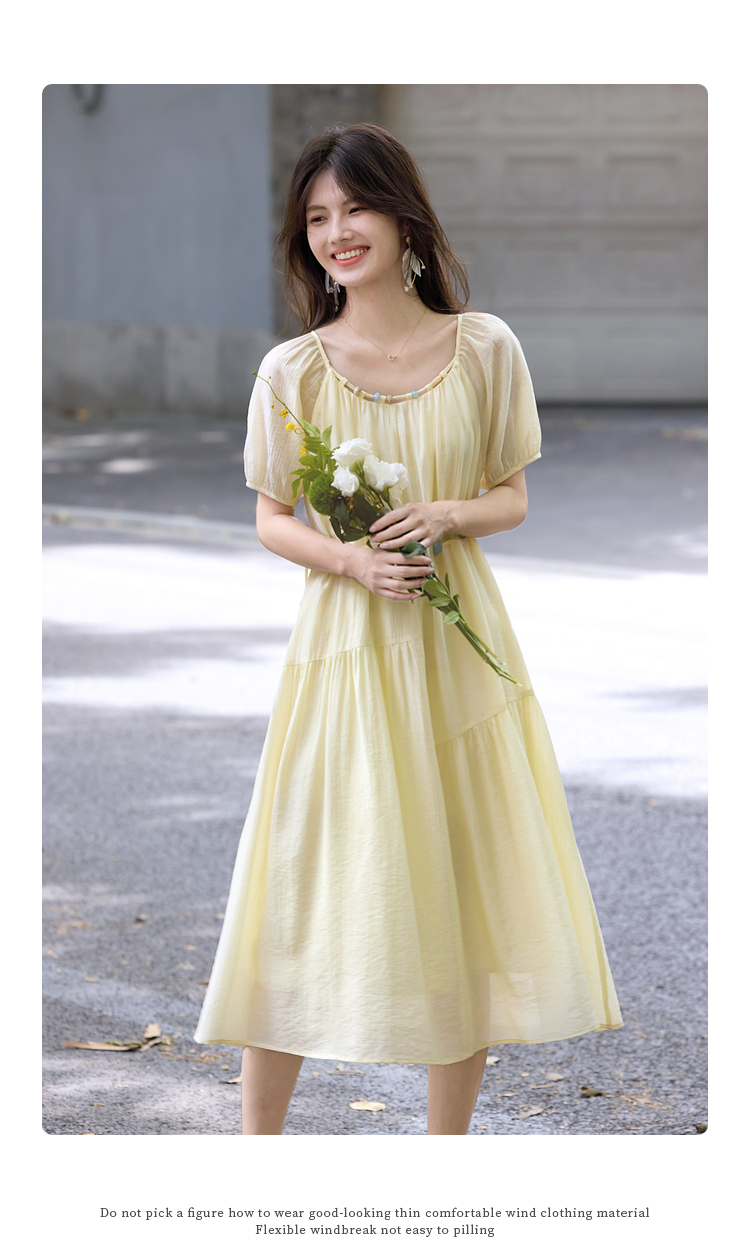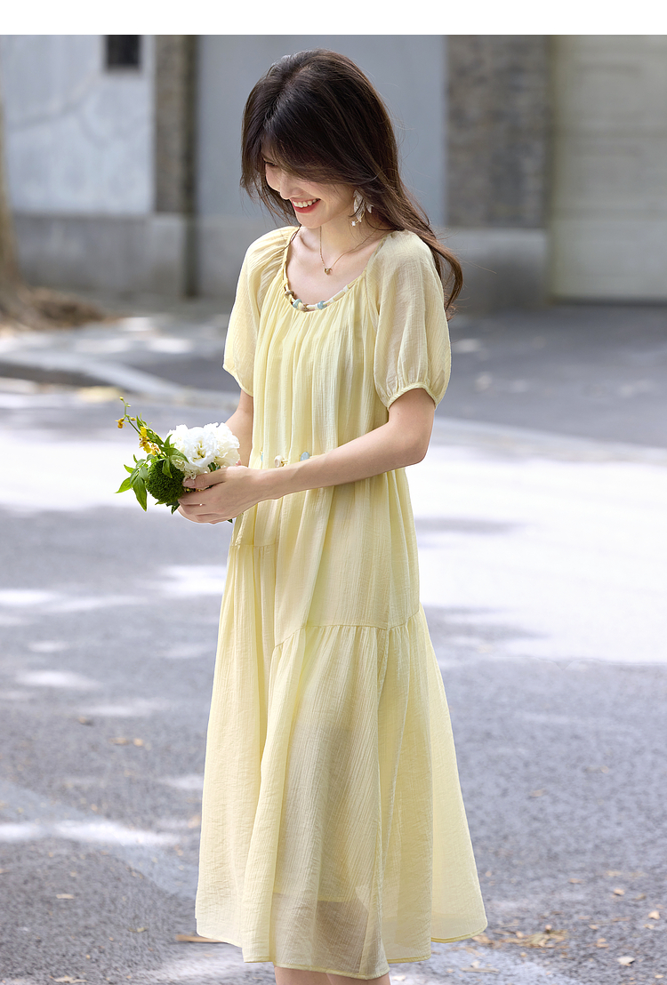【08/06新品】熙世界欧若风串珠天丝连衣裙女夏2025新款短袖收腰莱赛尔a字裙子