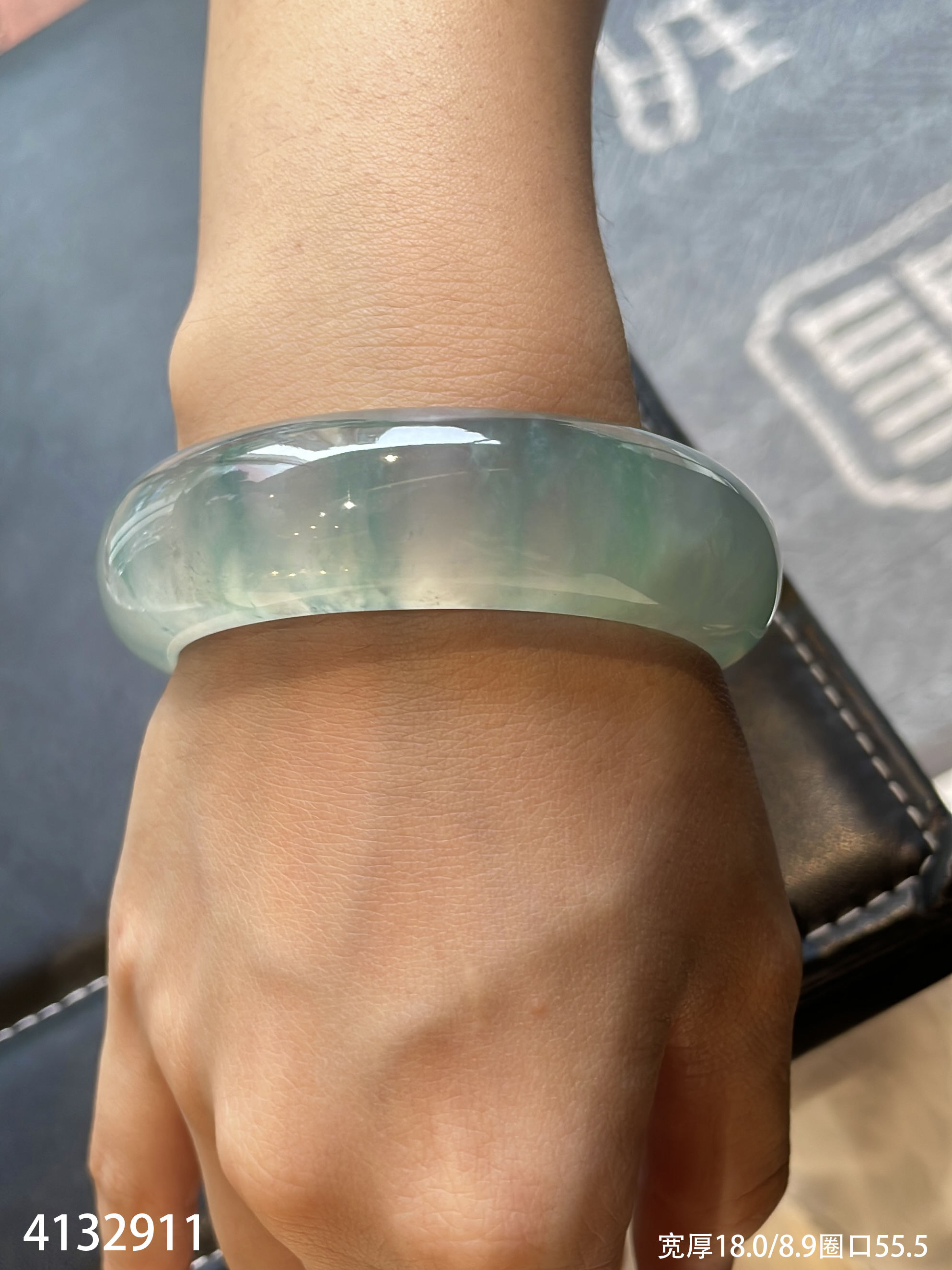 高冰种飘花轮胎镯【4132911】圈口55.5~具体价格微信咨询