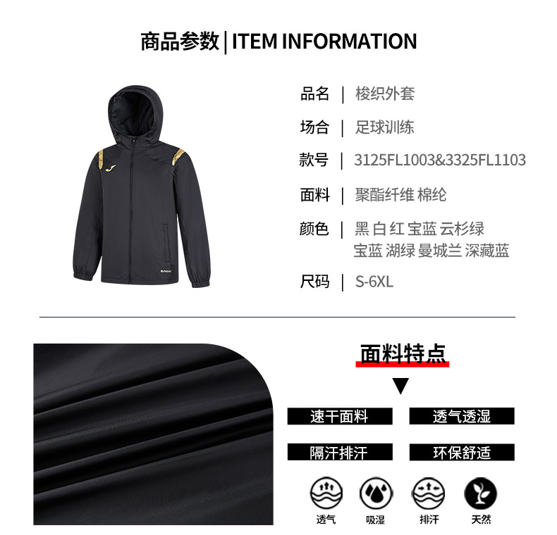 SFS荷马JOMA正品训练运动足球外套防风雨连帽梭织外套风雨衣