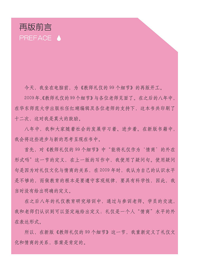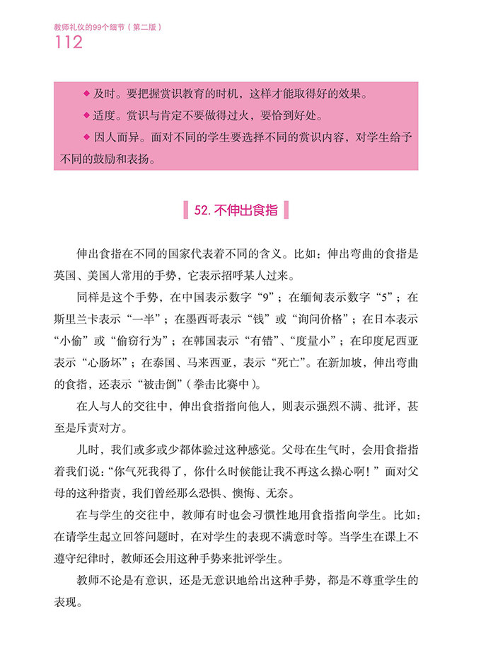 然而,教师的工作是紧张而繁忙的,如何让他们快速且轻松在学习基本的礼仪规范?本书没有面面俱到地介绍,而是针对教师生活与工作的实际问题,通过种种细节,揭示出正确的礼仪原则和方法,帮助教师成为讲究礼仪的典范。