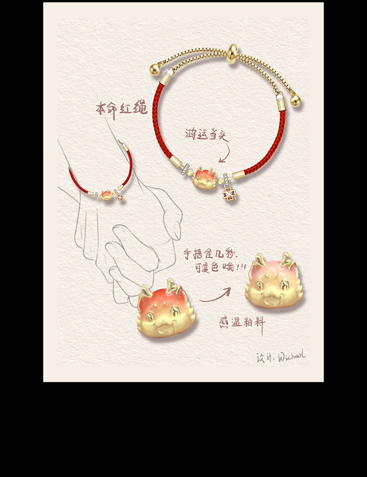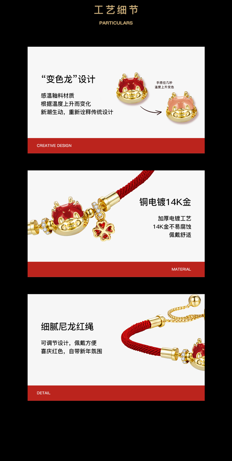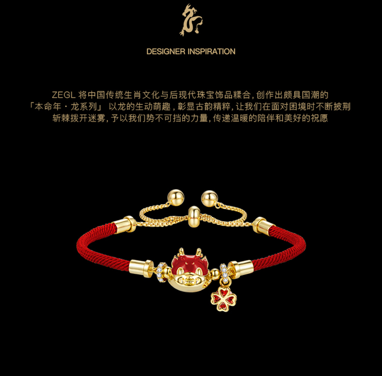 ZEGL设计师本命年龙系列感温变色红绳手链女轻奢小众精致新年手绳