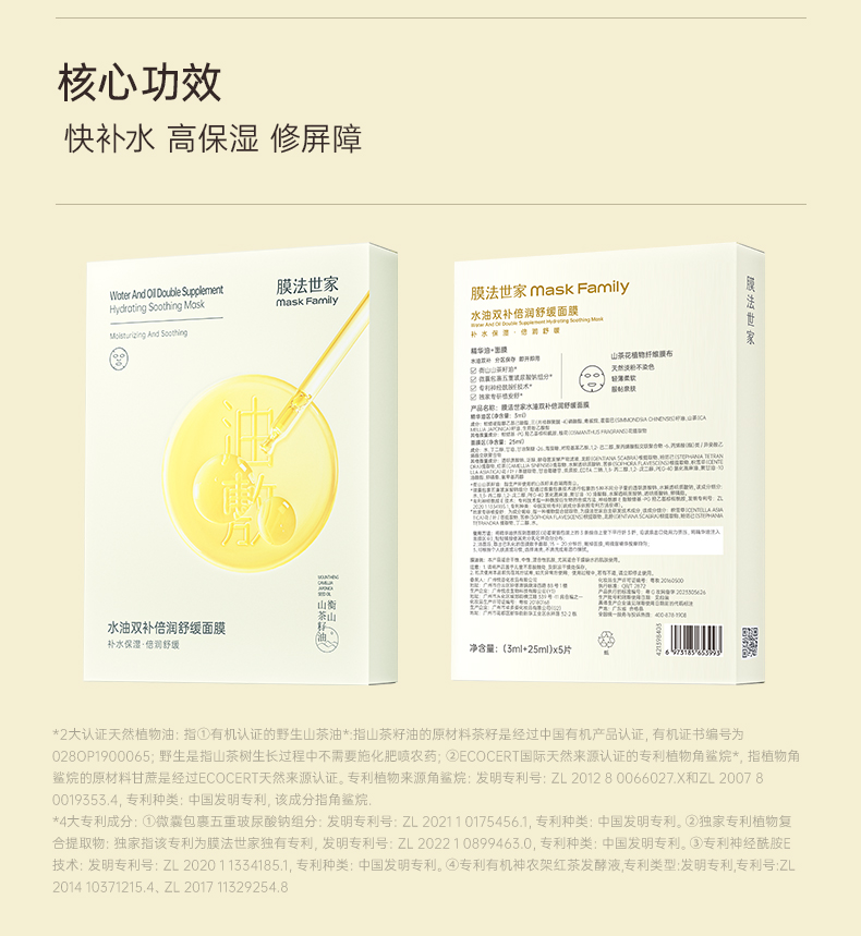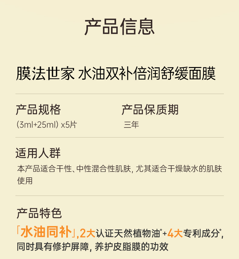 【人气油敷膜】膜法世家水油保湿面膜油敷膜5片装