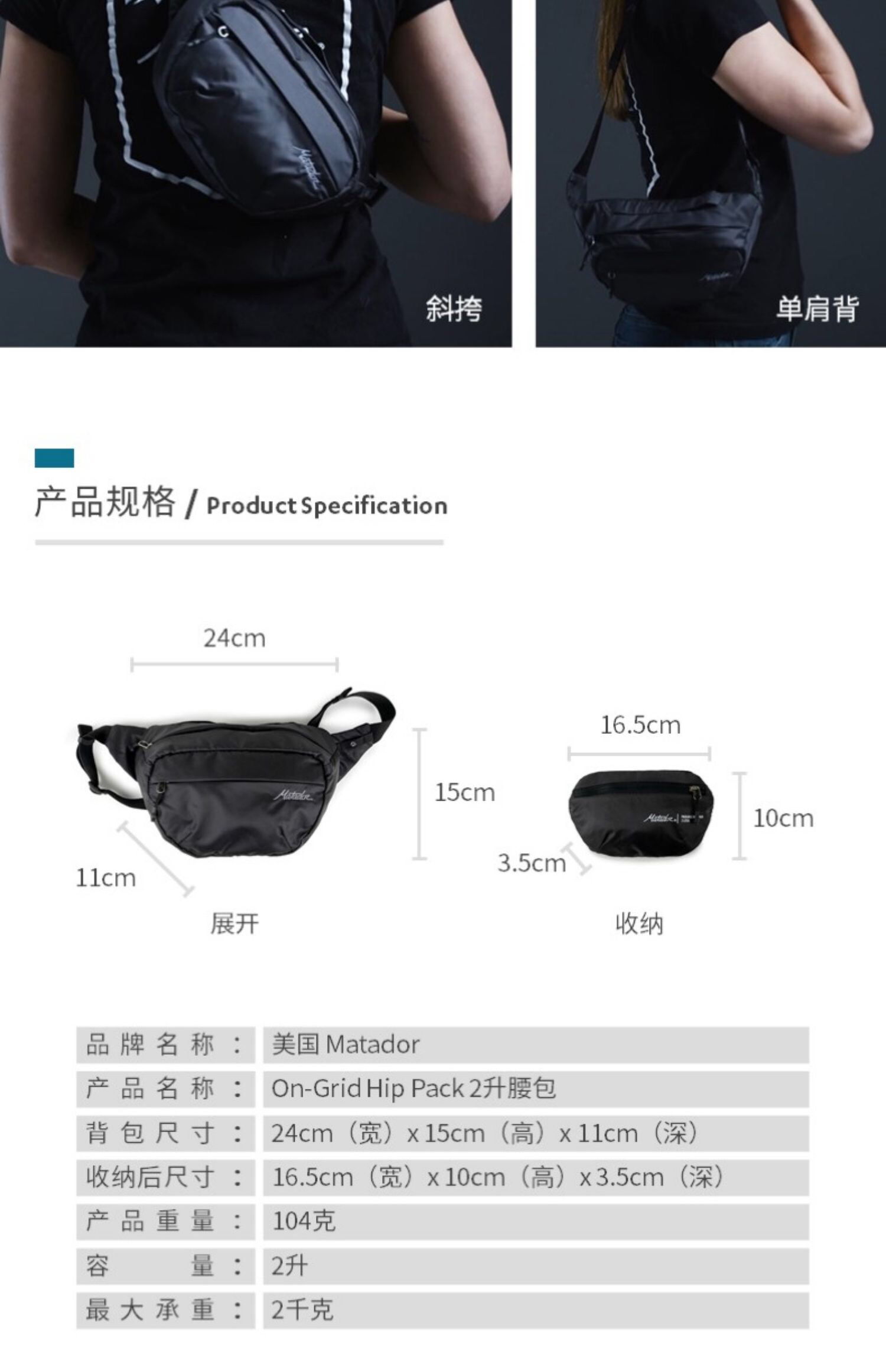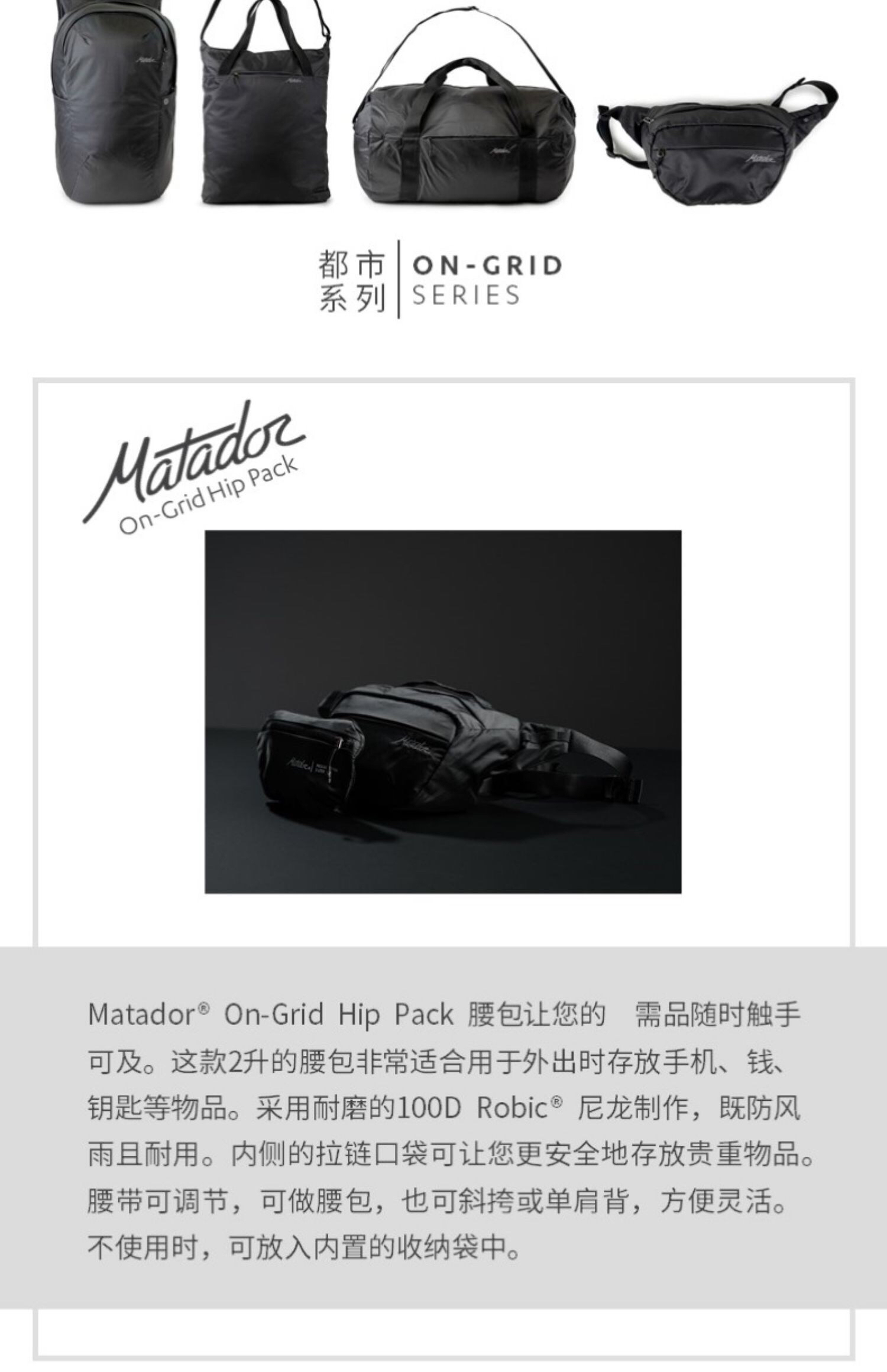 美国Matador都市系列On Grid便携防水通勤运动户外旅行折叠腰包-会员6折