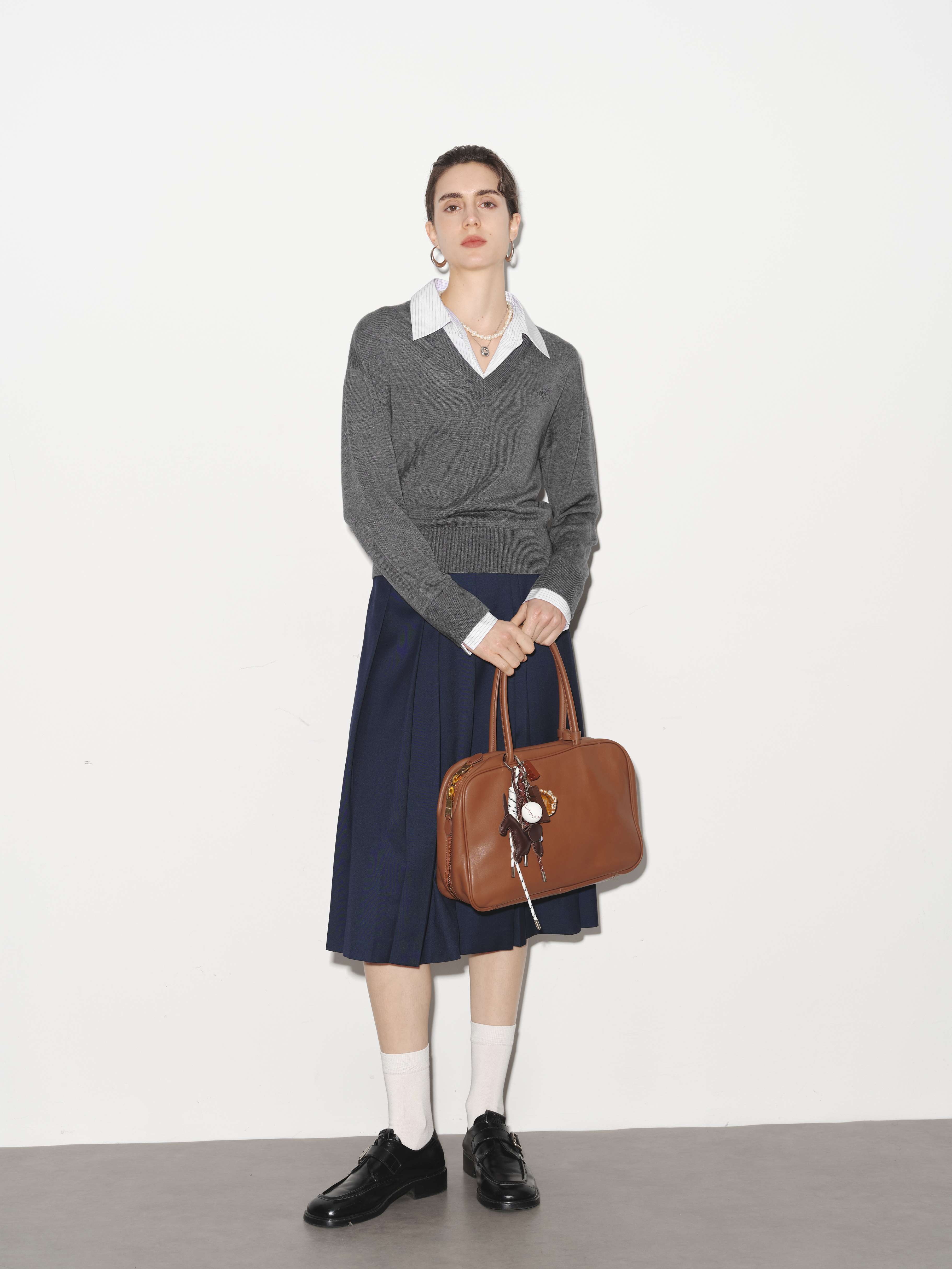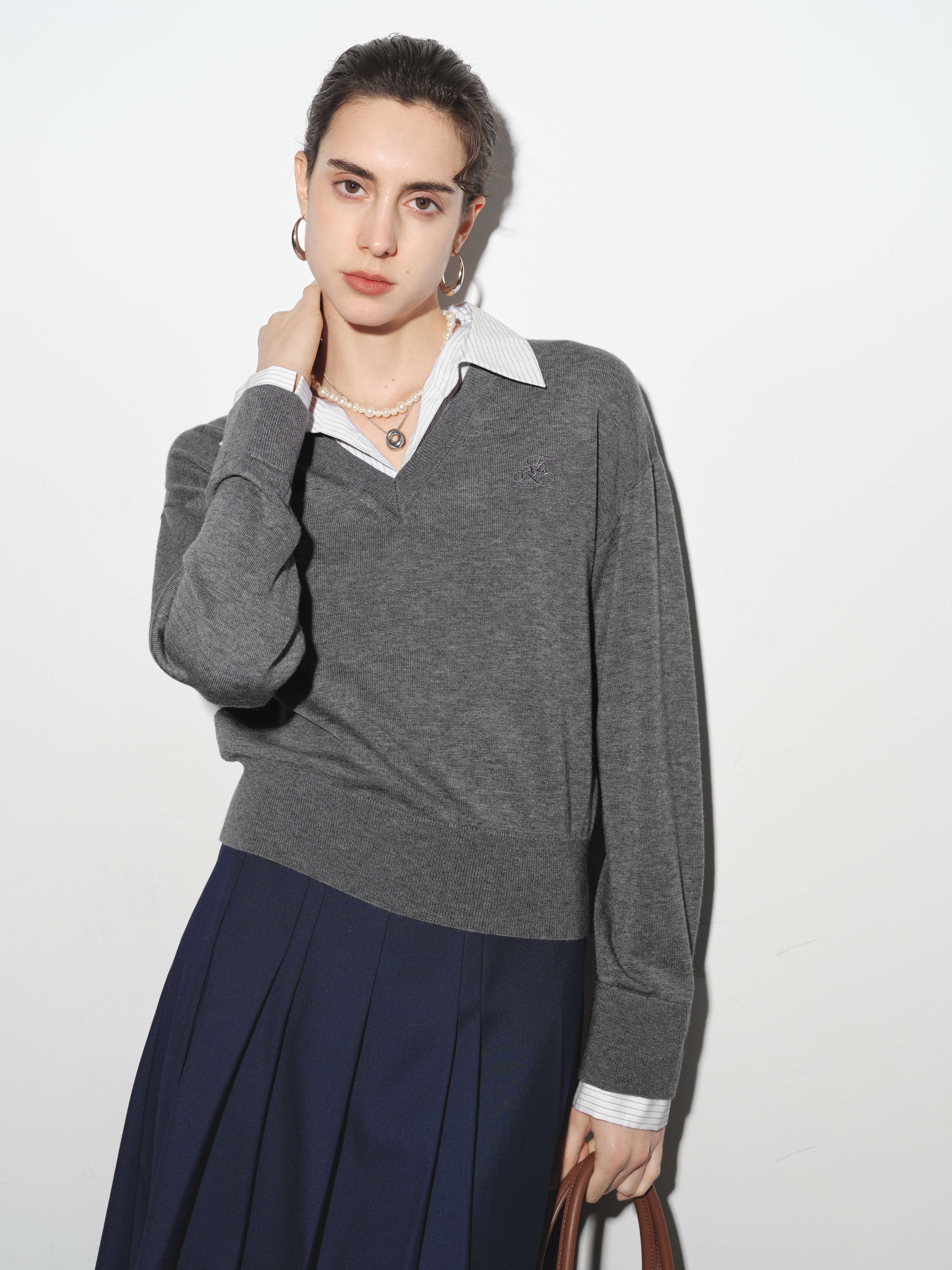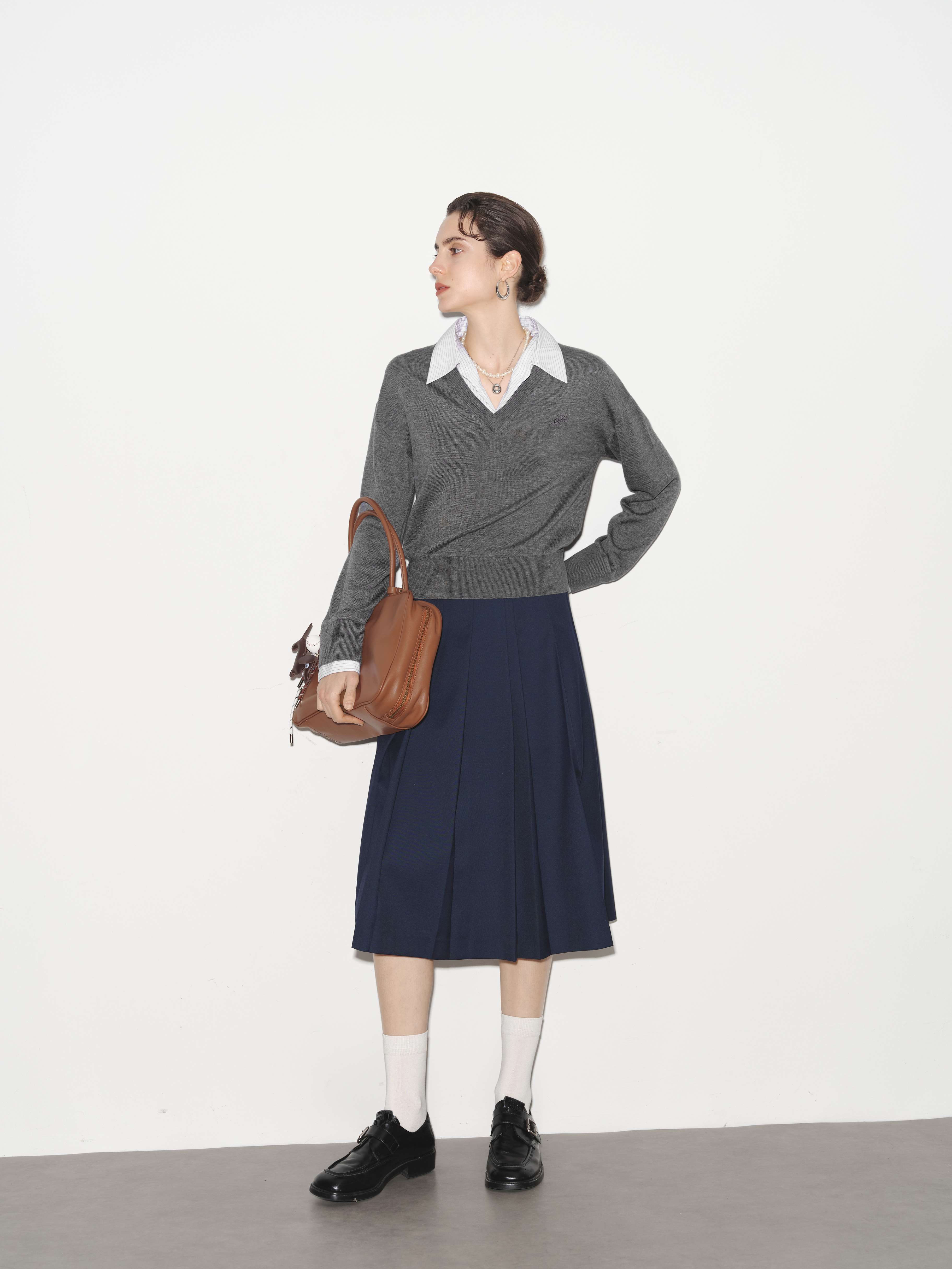【商场同款】诗凡黎圆领羊毛打底衫2025秋新款长袖上衣3G8200901