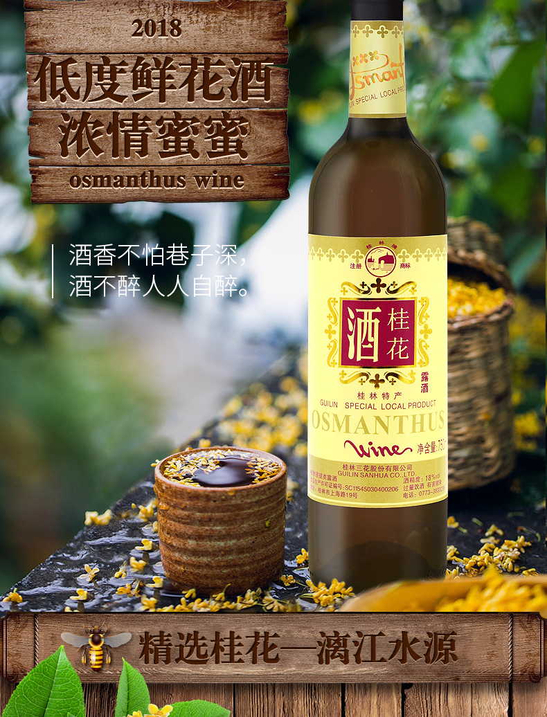 白盒桂花酒18%vol 750ml露酒 桂林三花