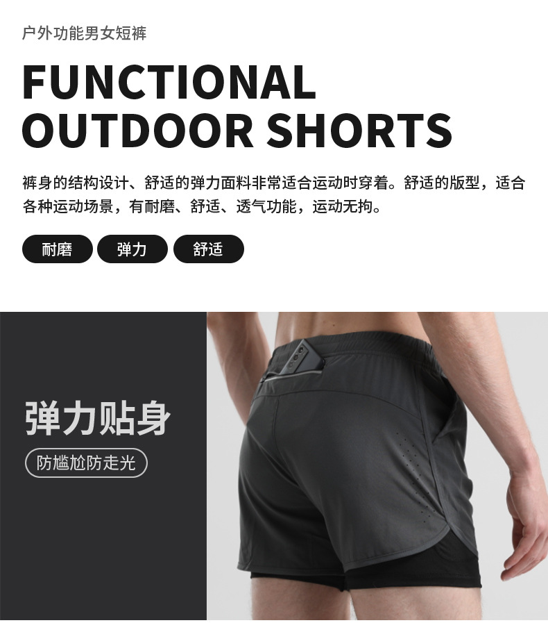 积能跑步短裤男运动带内衬三分裤可放手机马拉松专业运动裤