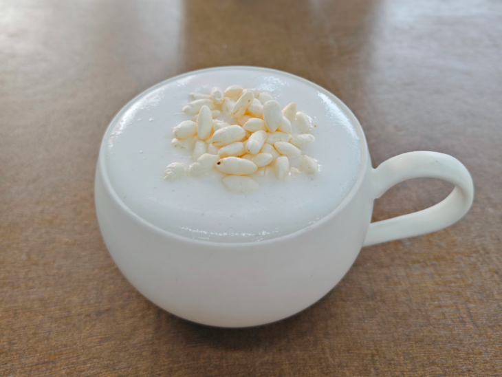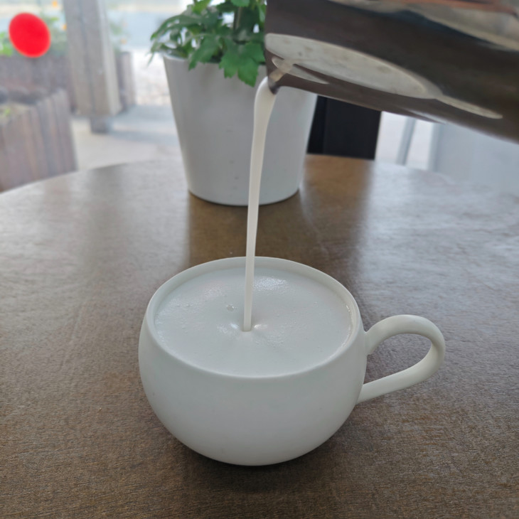 后来,团队想让传统谷物与现代潮流结合?便尝试用胚芽米浆代替牛奶制作咖啡。没想到,谷物自带的温润清甜与咖啡的浓郁深邃碰撞,产生了奇妙的化学反应,独特的“米浆咖啡”意外走红。这为团队下一步的研发打开了新思路——围绕米浆研发更多口味的米浆饮品、甜品等更多现代轻食。