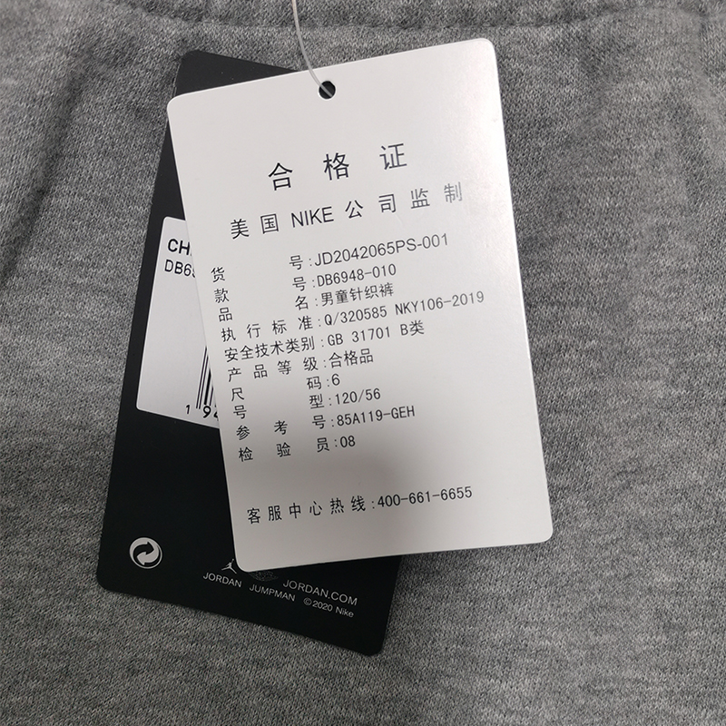 JORDAN乔丹AJ童装春秋男童串标毛圈针织运动长裤子JD2042065