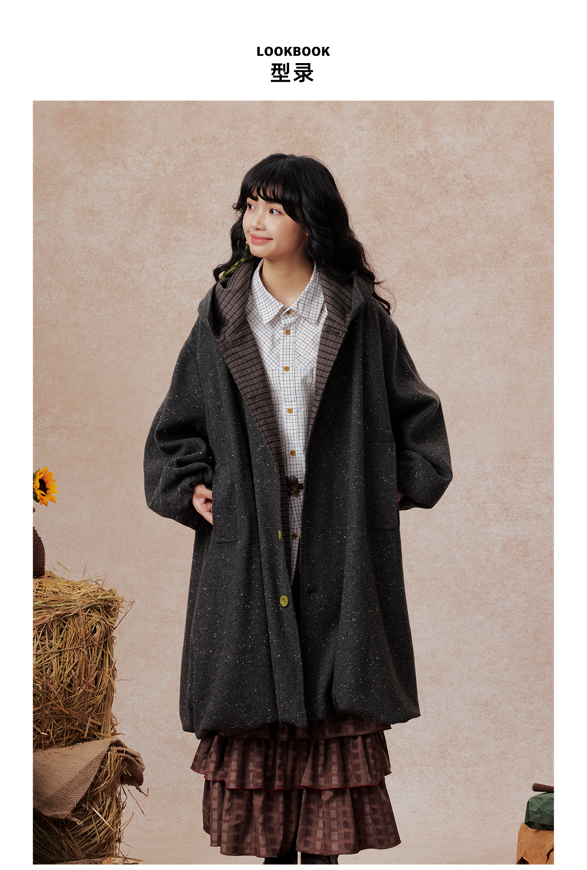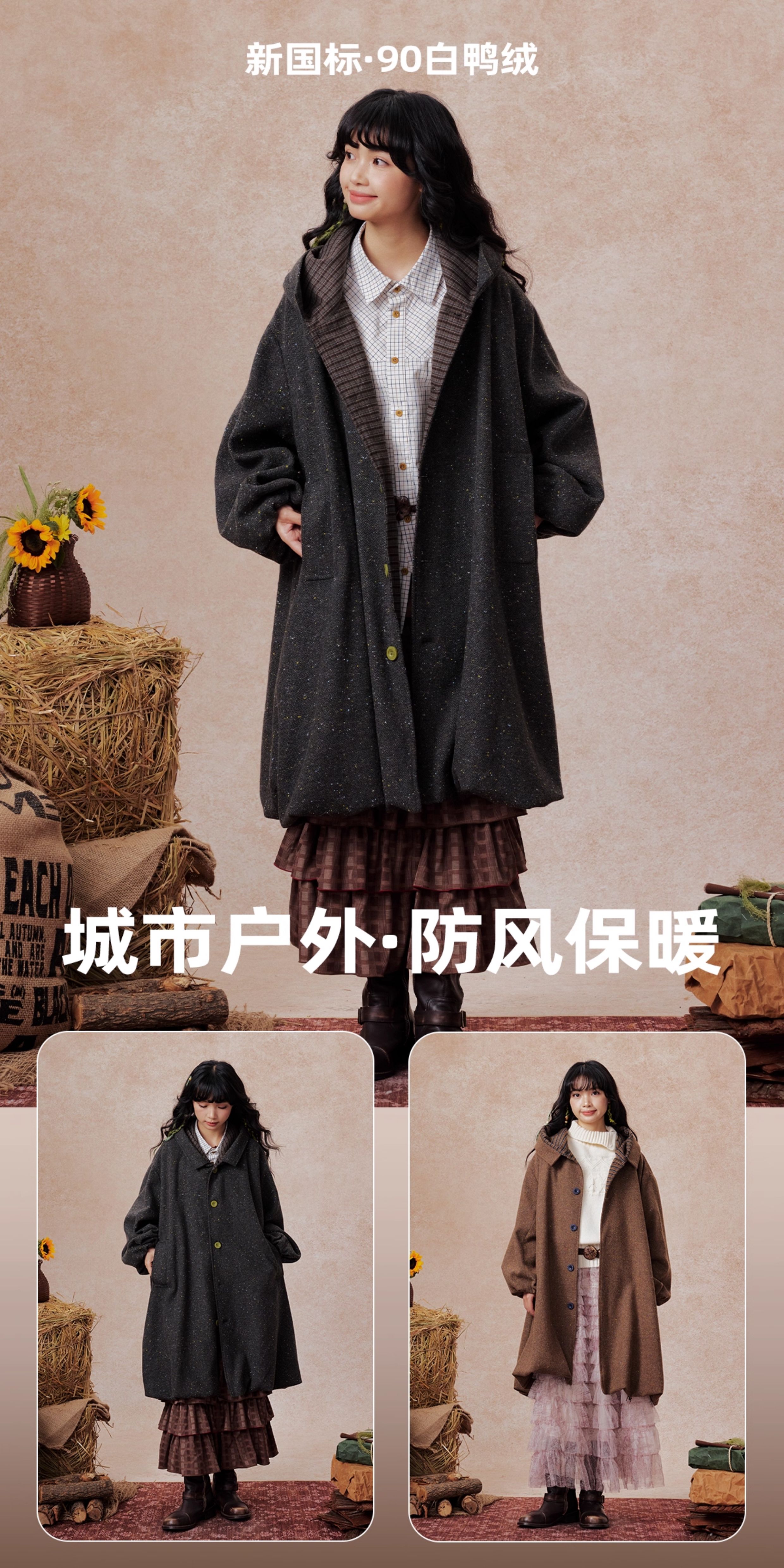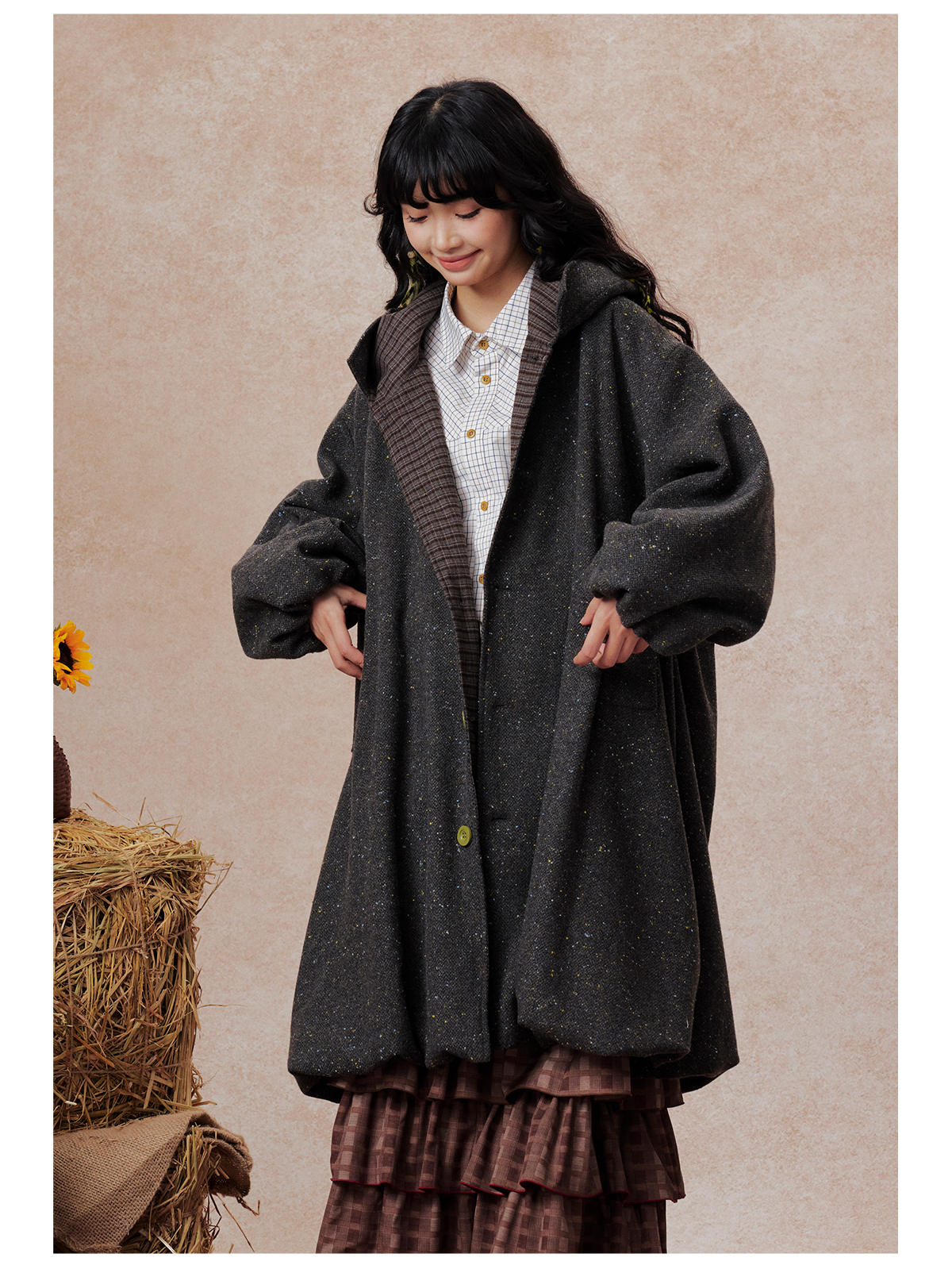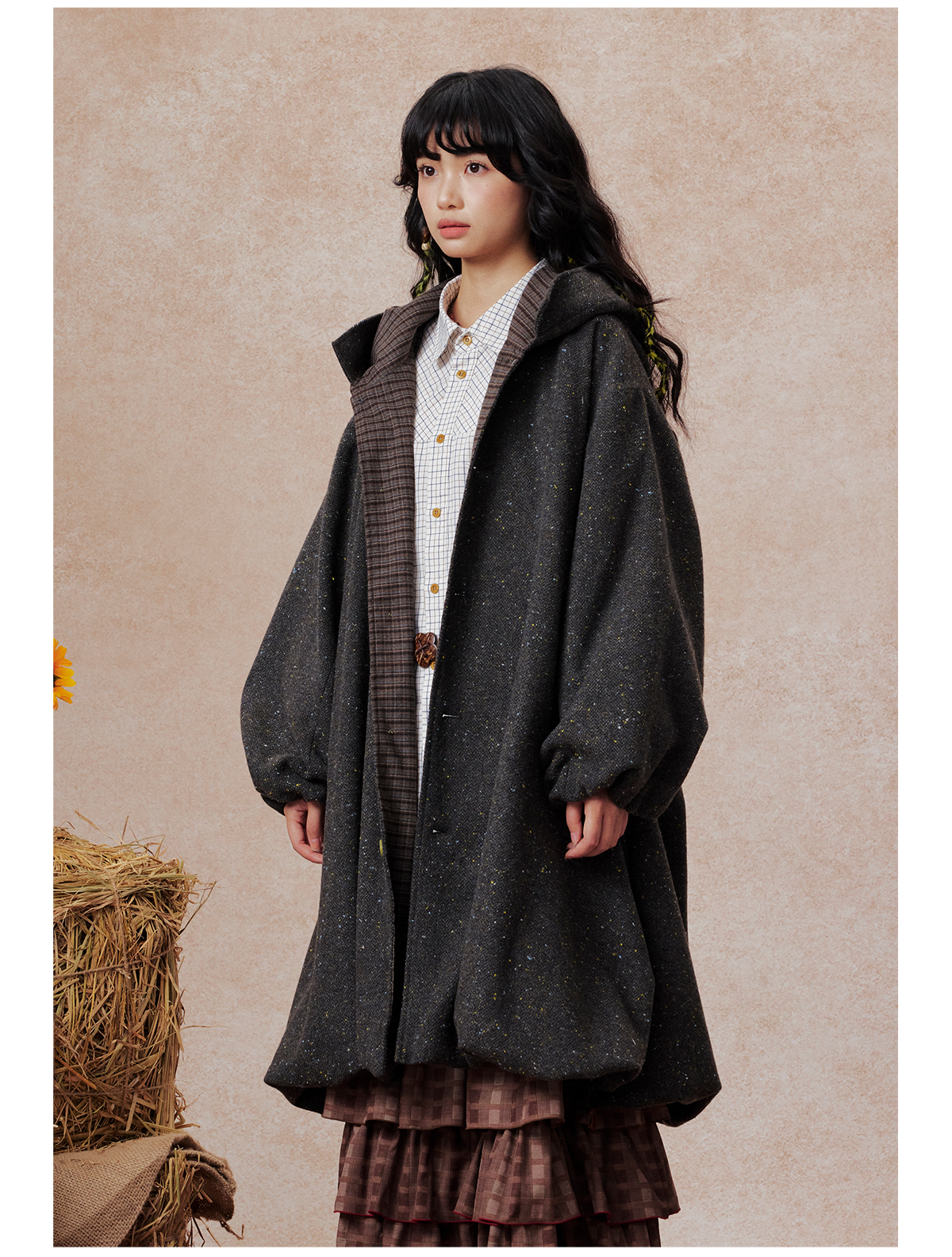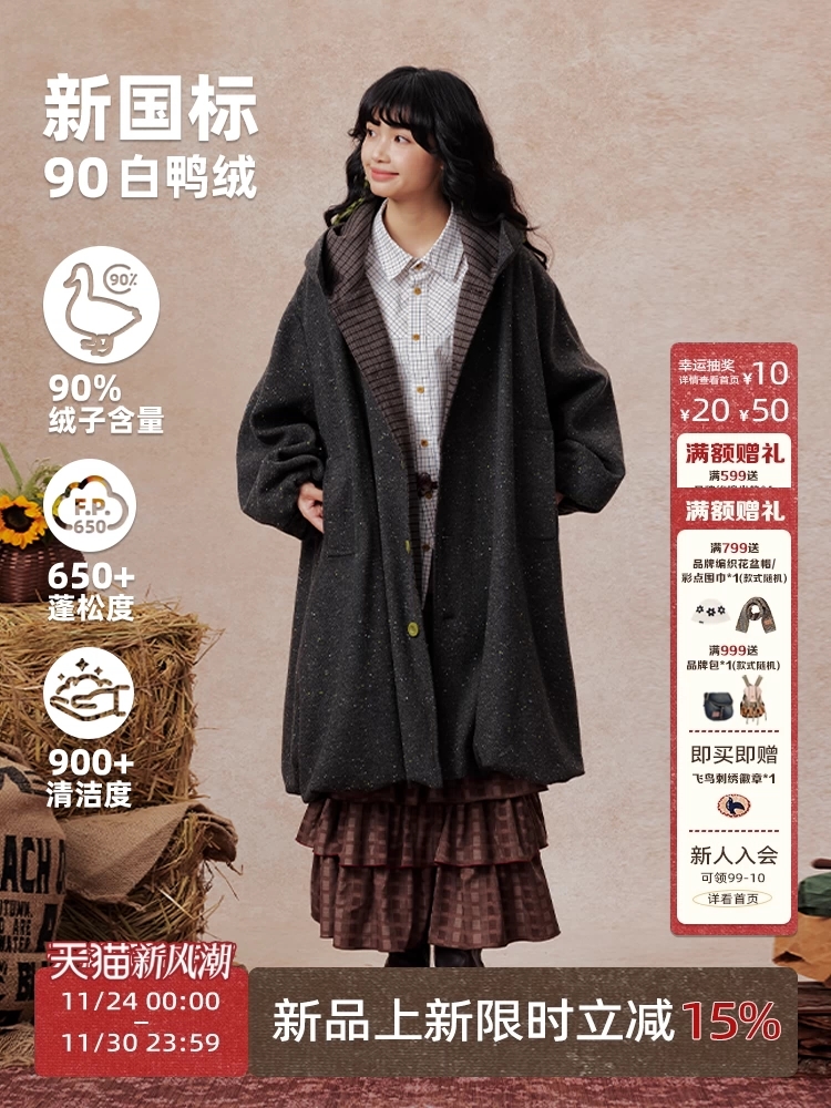 早乙女惠子saotome/STMWT13256/连帽宽松大衣(含羊毛夹羽绒)