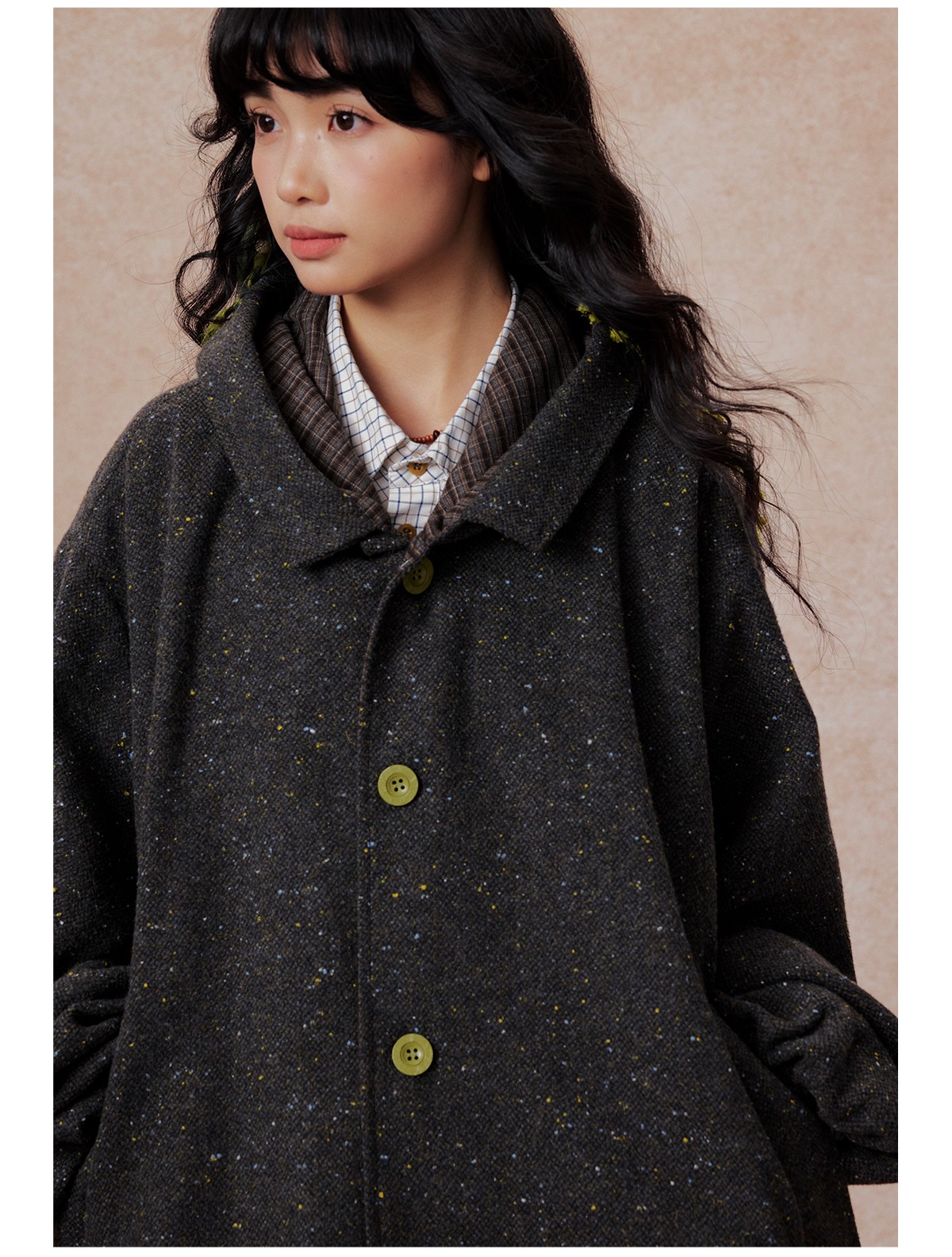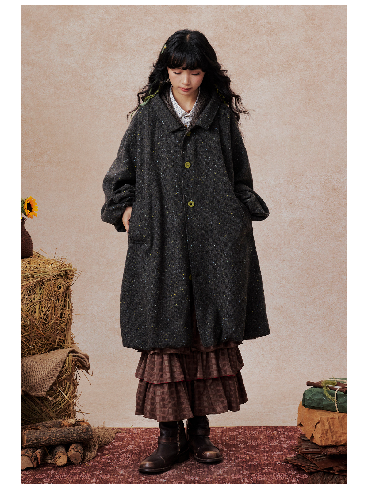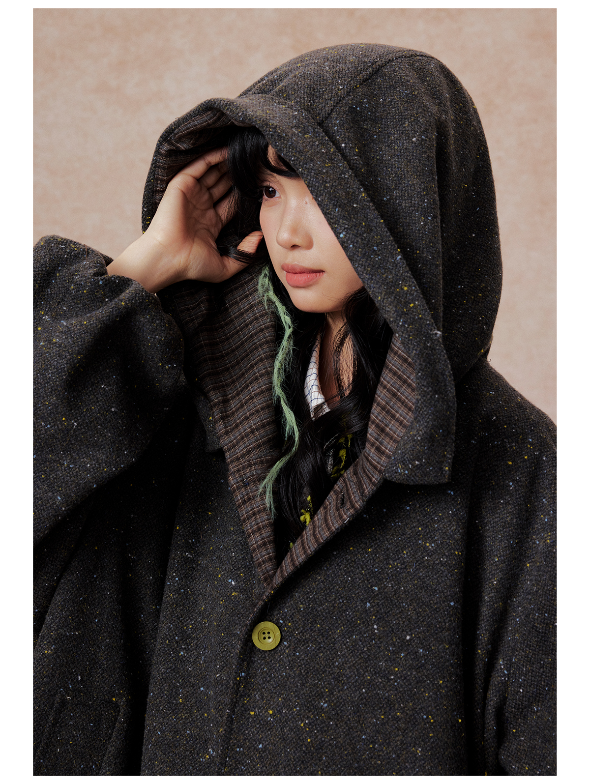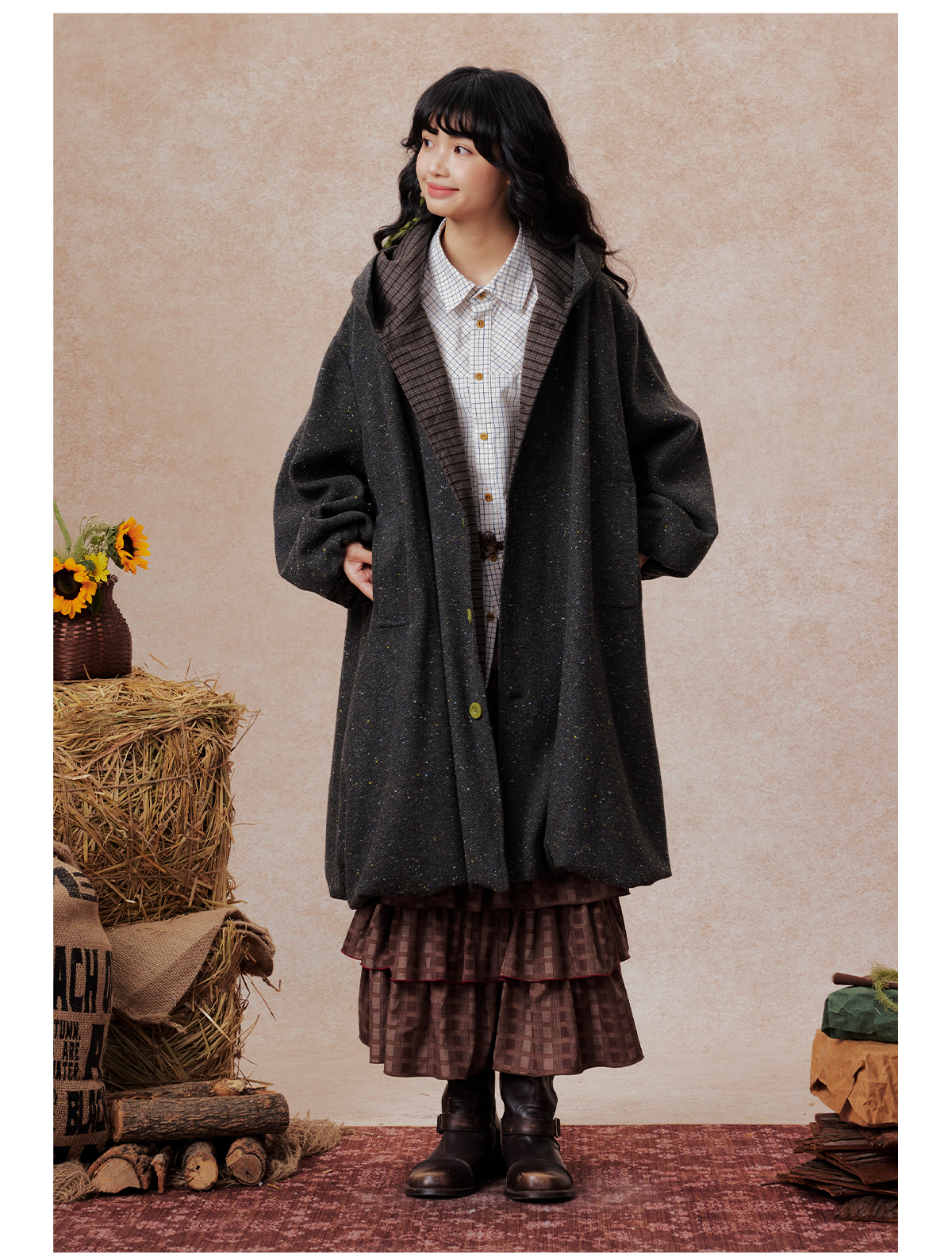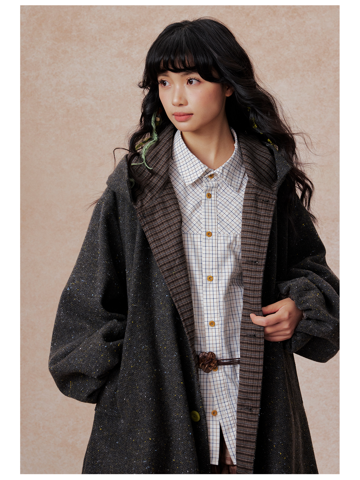 早乙女惠子saotome/STMWT13256/连帽宽松大衣(含羊毛夹羽绒)