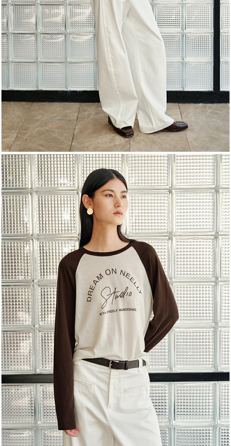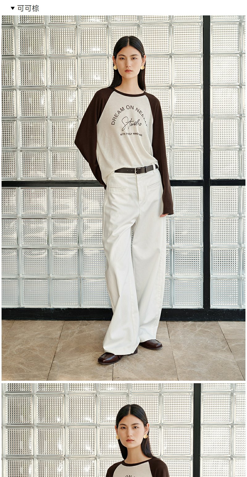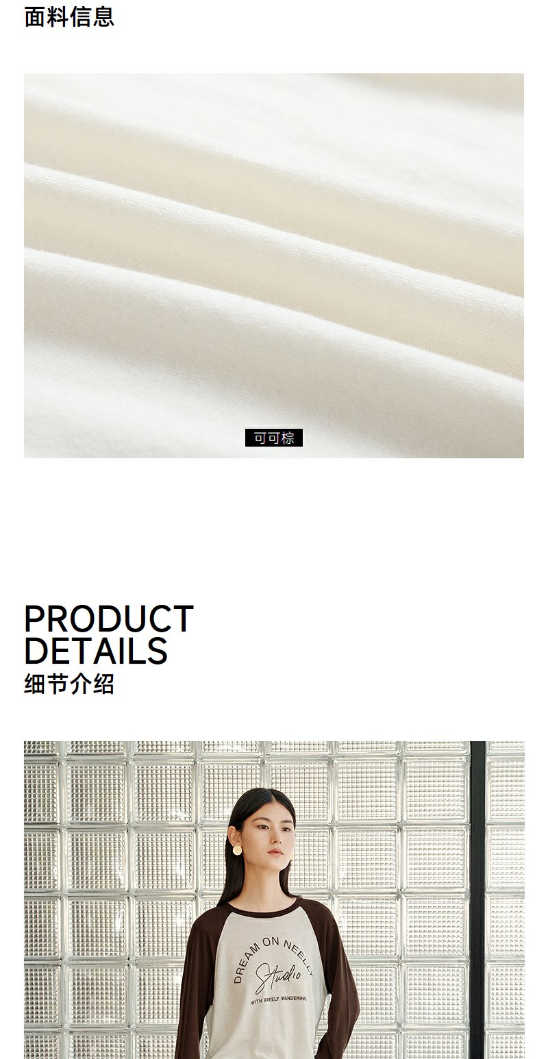 NEELLY纳俪商场同款秋季新款印花趣味撞色T恤女百搭插肩袖上衣N25082A01083