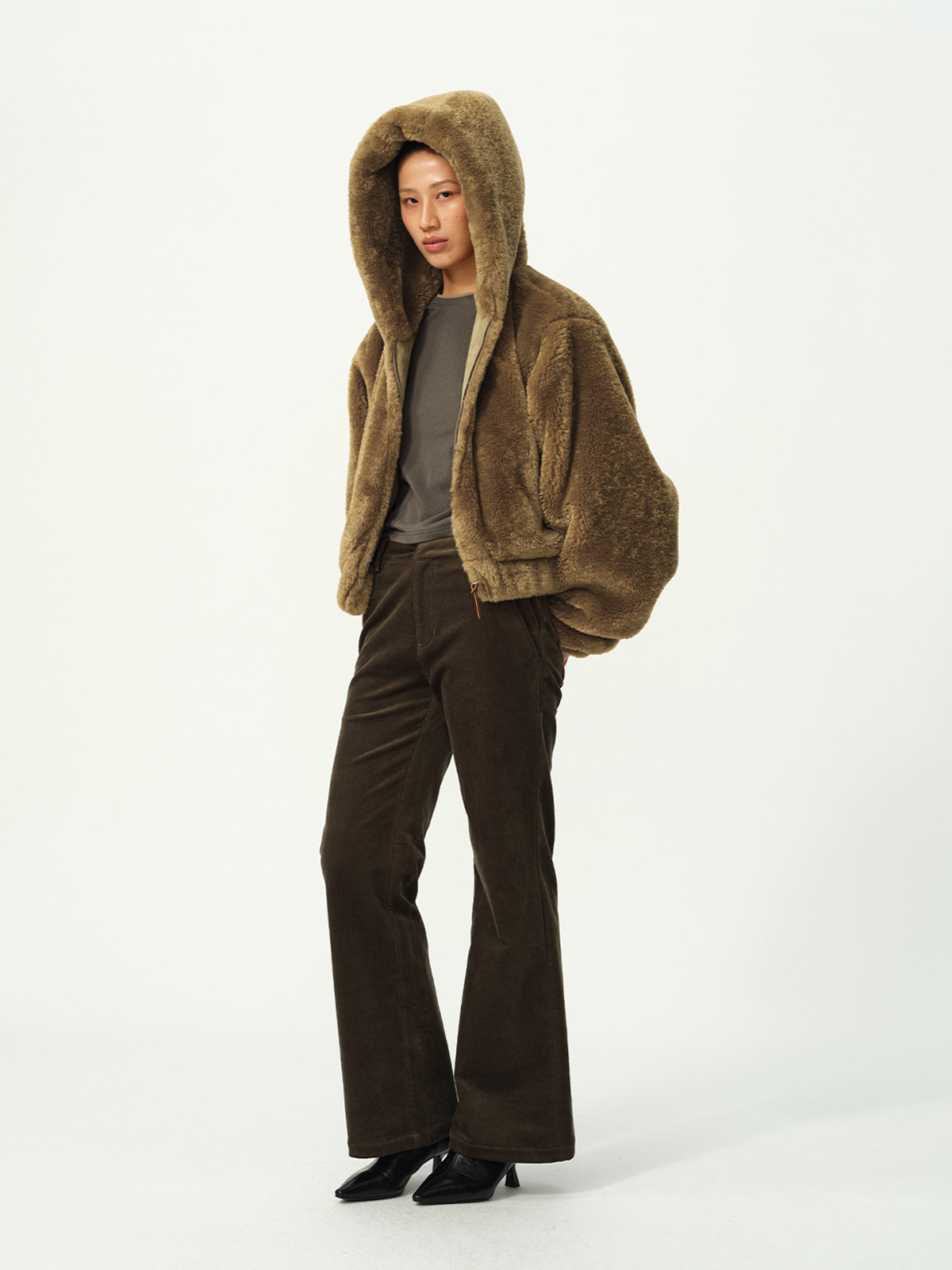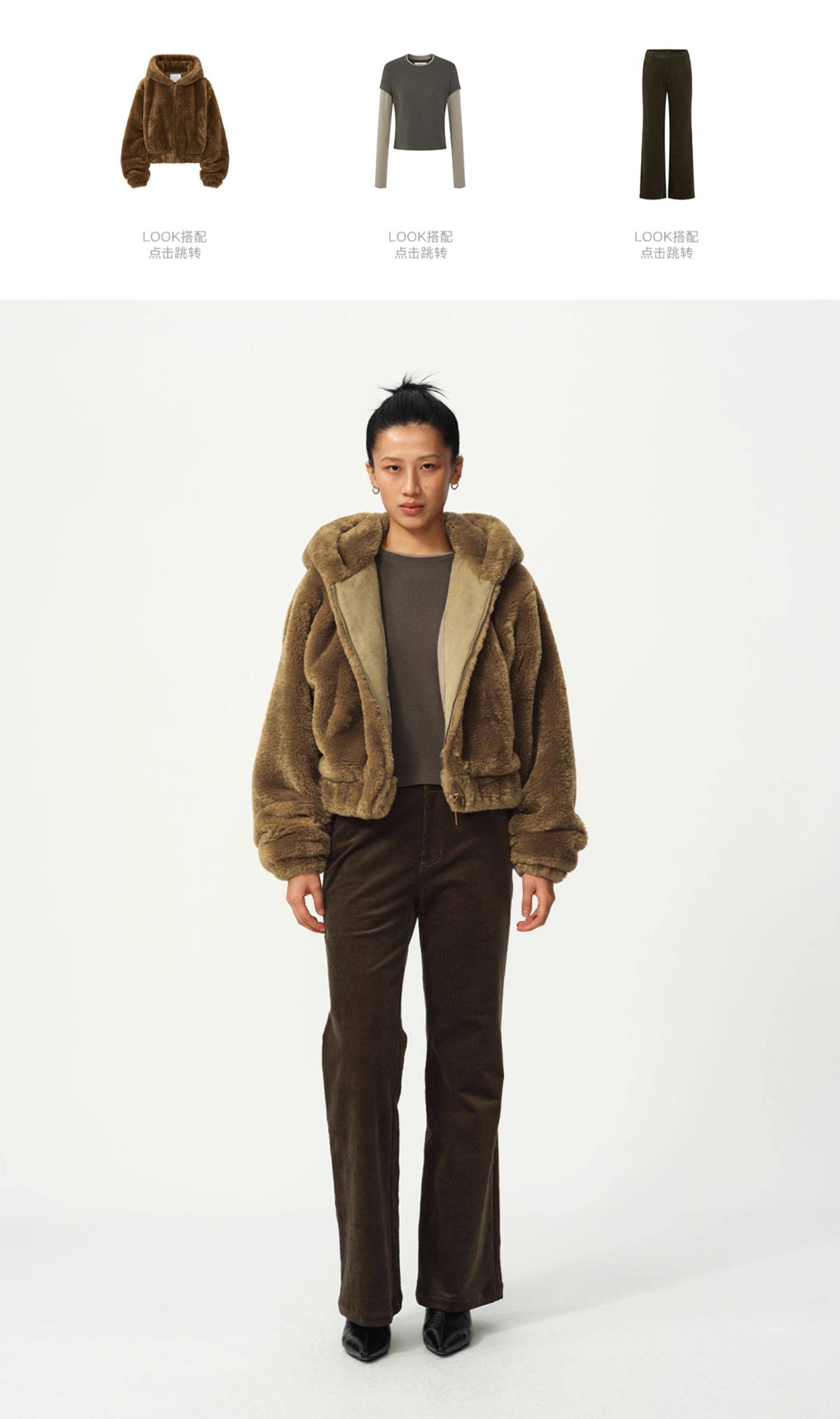Evistub girls/E-5DWT1439/美拉德棕咖毛绒麂皮外套
