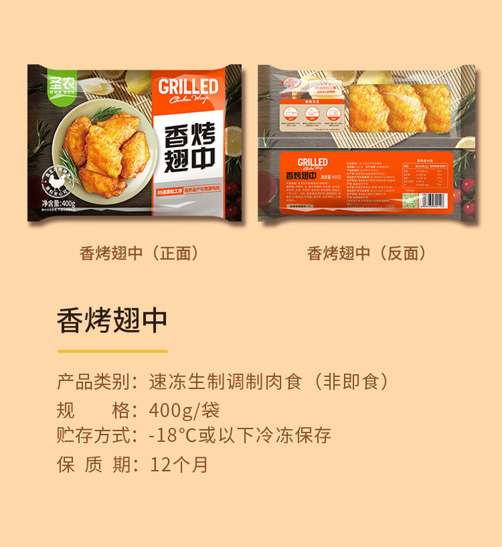 圣农香烤翅中/1包(400g)生产日期:26年2月