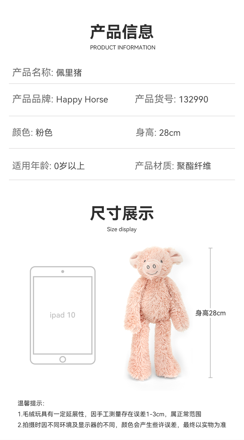 荷兰HappyHorse佩里猪毛绒玩具玩偶公仔布娃娃可爱女孩节日礼物132990