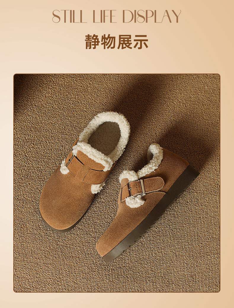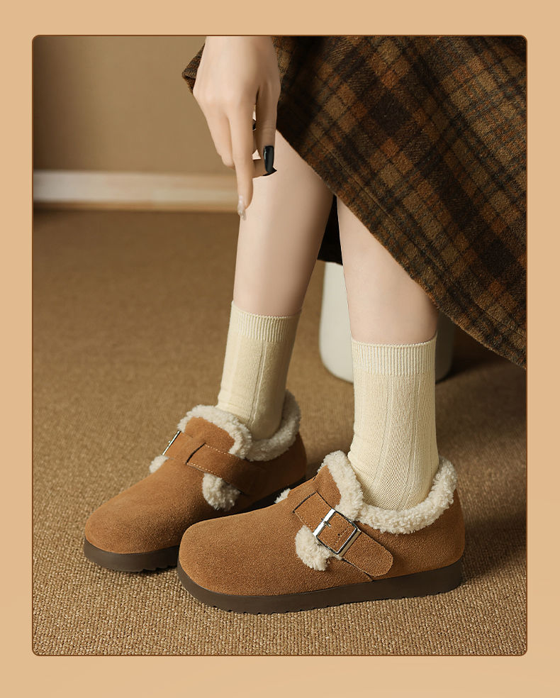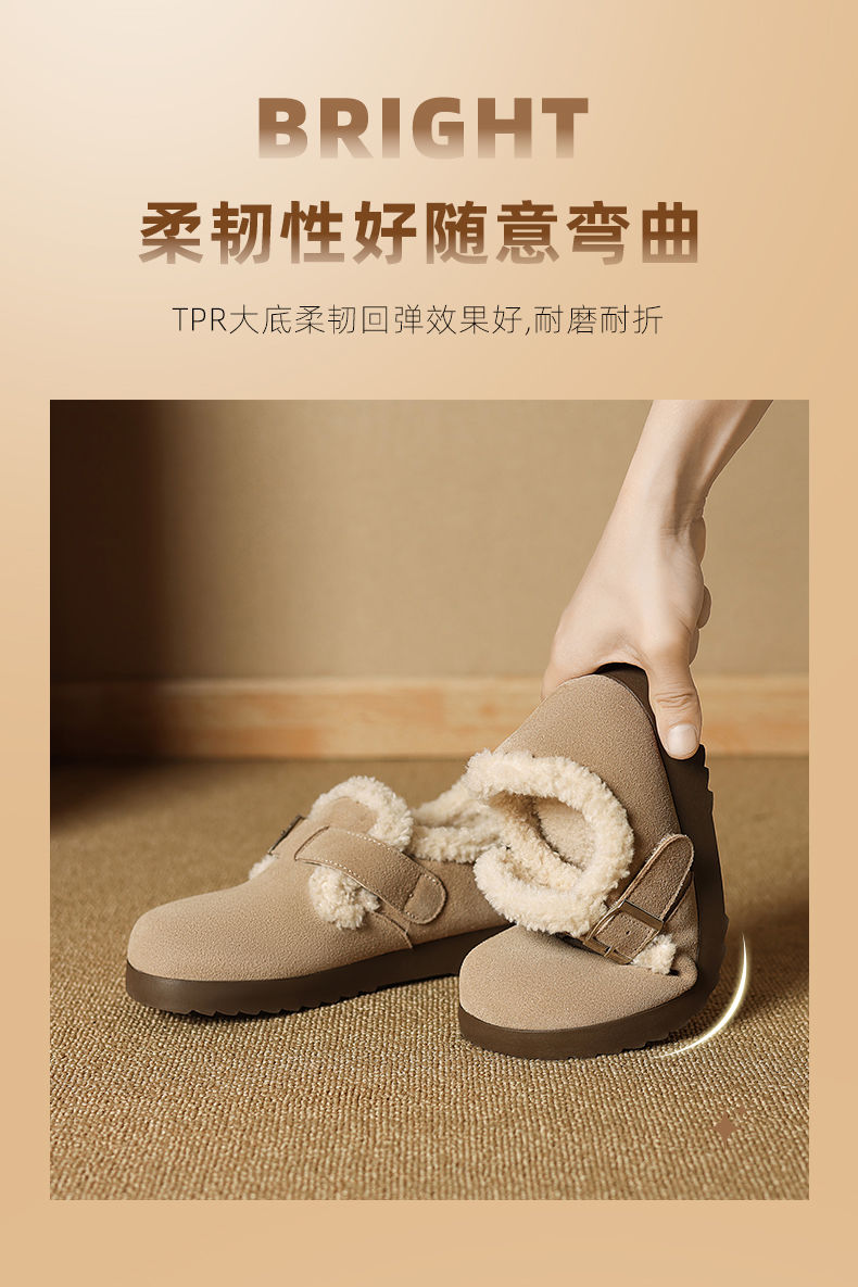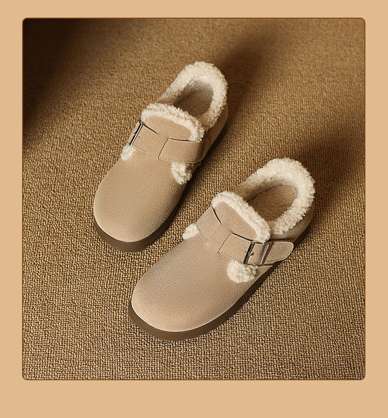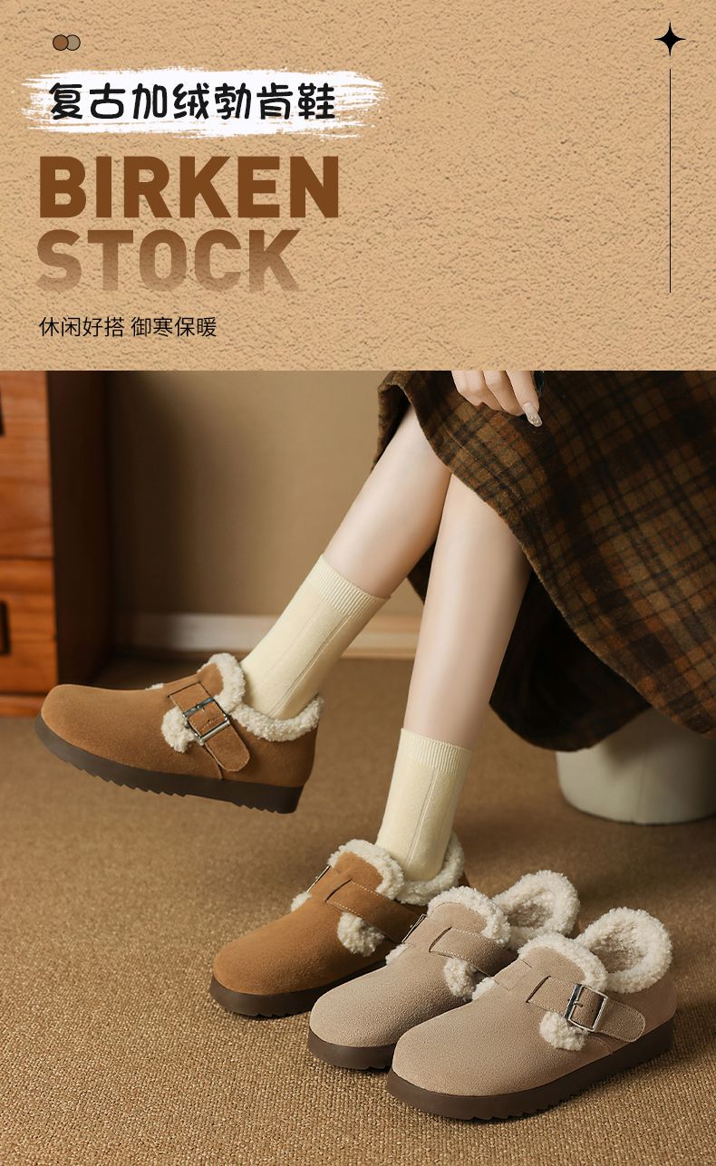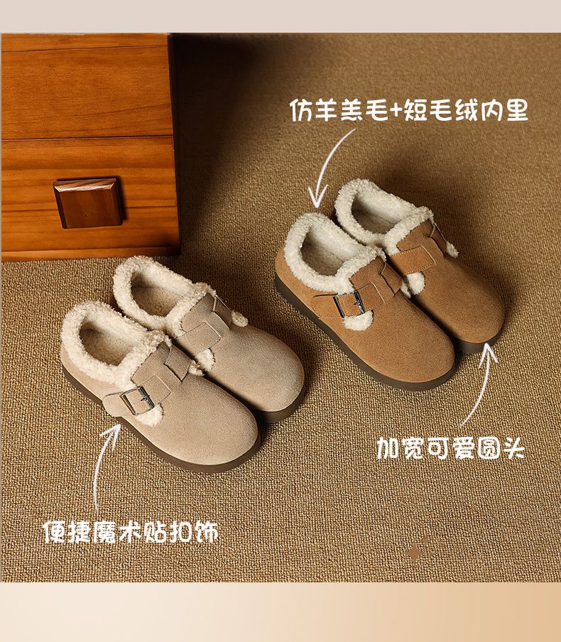 ZHR则则加绒真皮勃肯鞋女2024冬季新款毛毛鞋平底保暖加厚棉鞋女