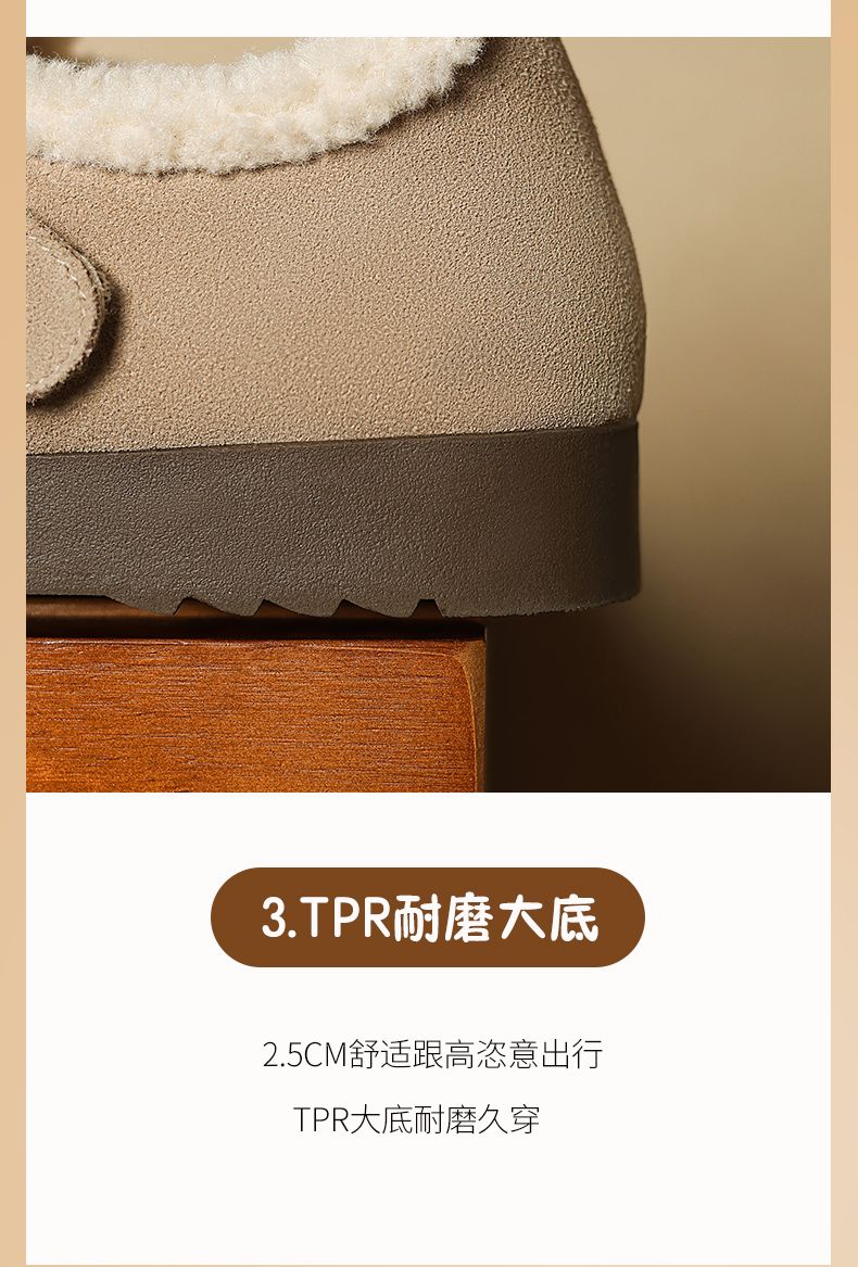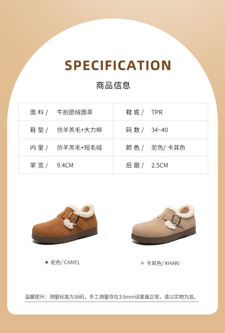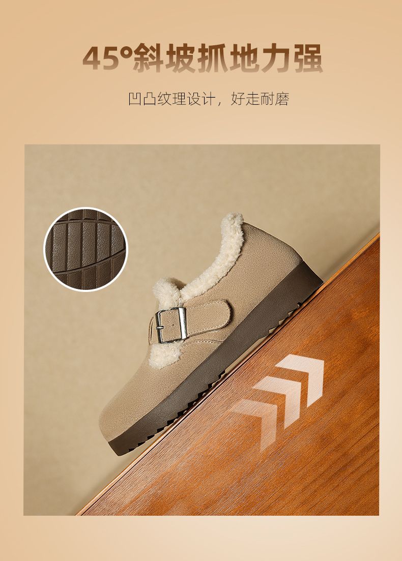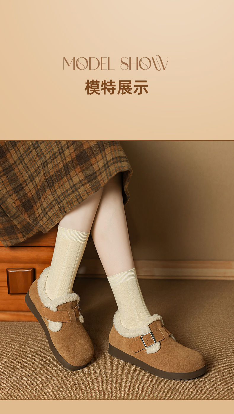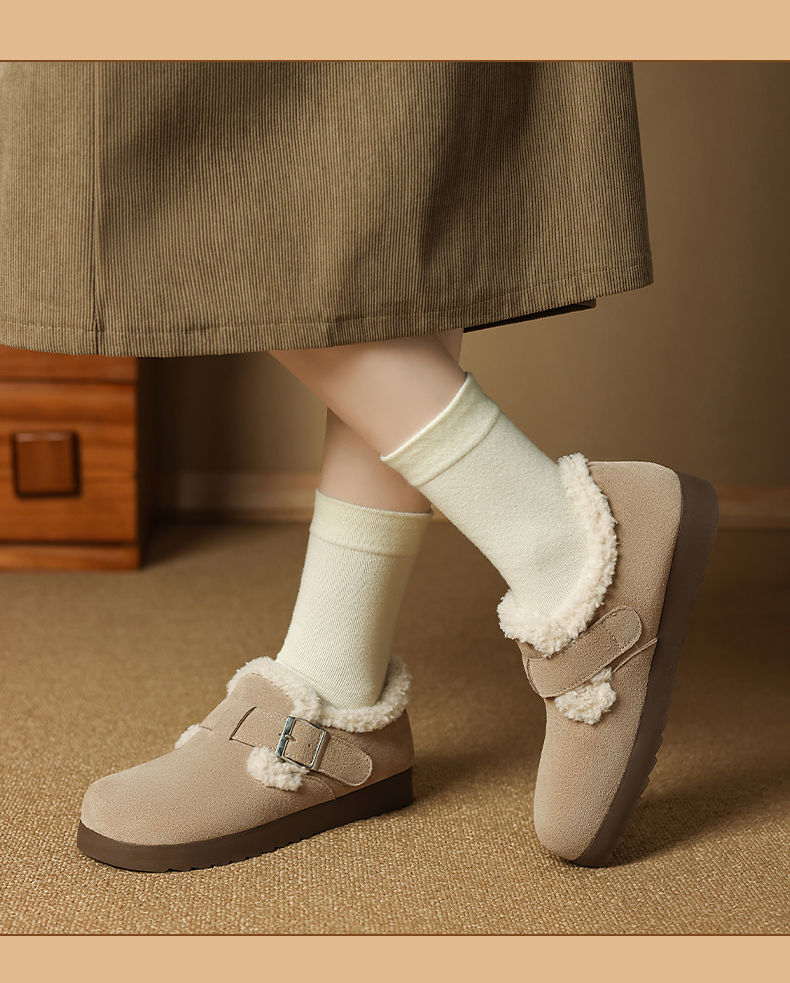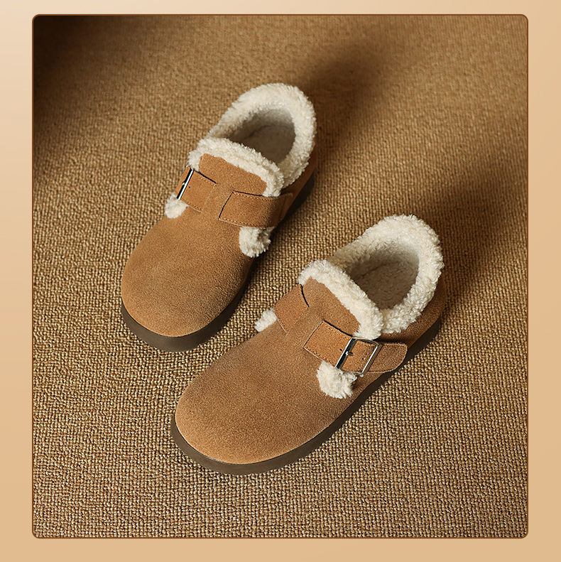 ZHR则则加绒真皮勃肯鞋女2024冬季新款毛毛鞋平底保暖加厚棉鞋女